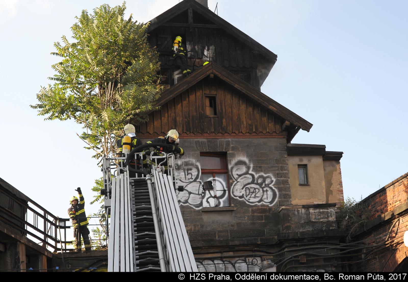 V 18:20 hodin dne 29.07.2017 zasahovaly tři jednotky pražských hasičů a jednotka HZS SŽDC u požáru drážního domku na železničním viaduktu poblíž ulice Pod výtopnou v Praze 8.