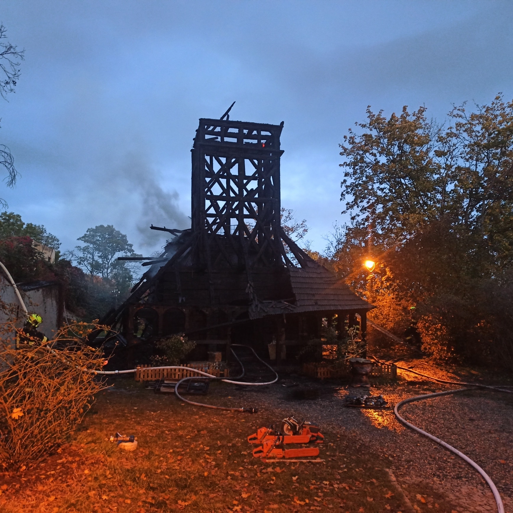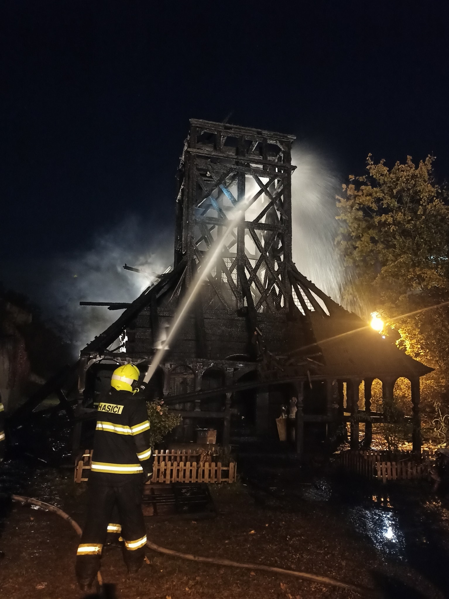 Oheň, který se šířil závratnou rychlostí, pohlcoval historické dřevo, jakoby šlo o suchý troud. Profesionální i dobrovolné jednotky – celkem šest – bojovaly s živlem ve ztížených podmínkách, v dýchací technice a s nasazením čtyř vodních proudů. Napětí na místě vrcholilo, když se kolem půl čtvrté zřítila věž kostela – jeden z jeho dominantních prvků. Byl to okamžik, který sevřel srdce nejen památkářům.