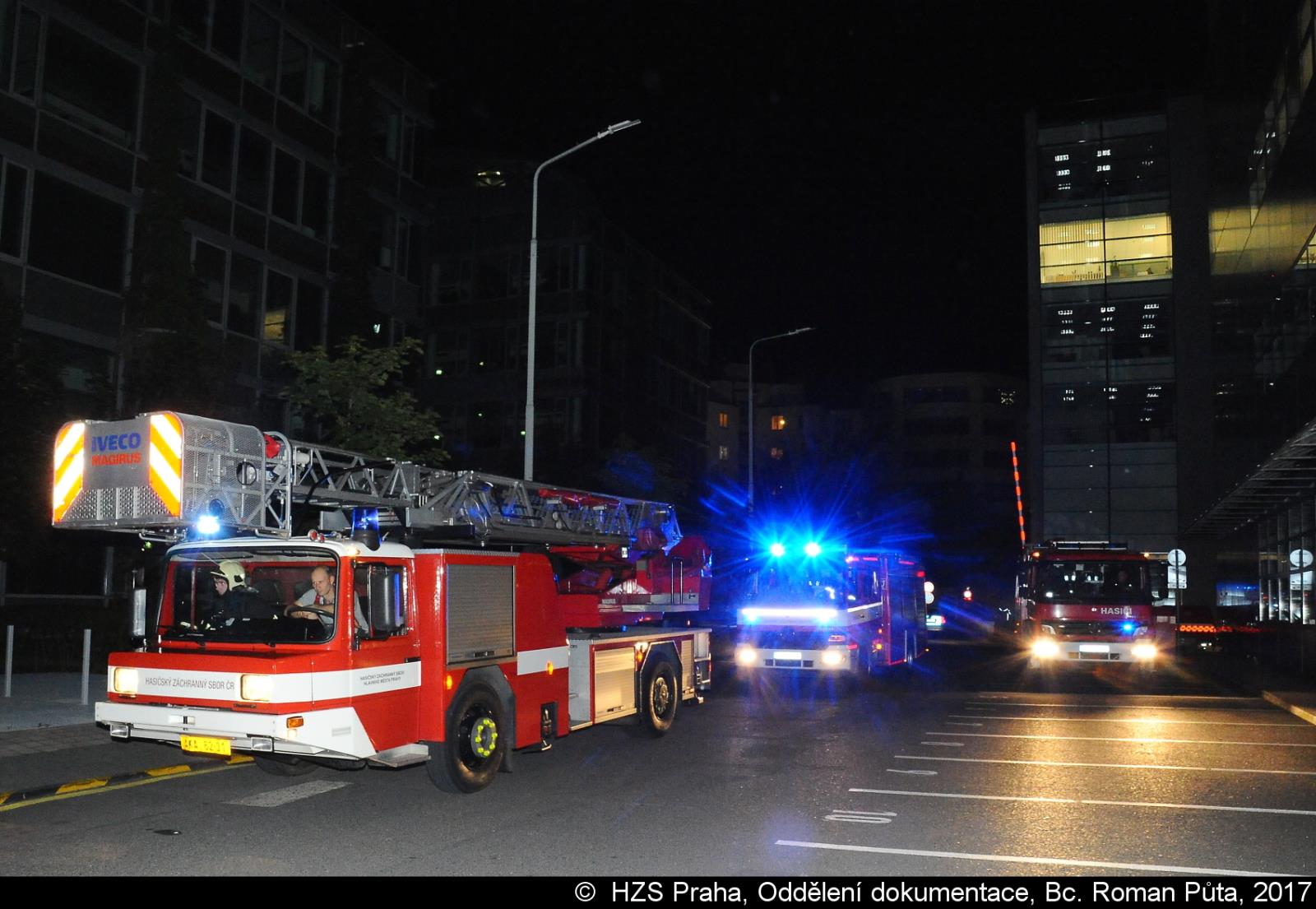Čtyři jednotky pražských hasičů byly vyslány k prověření kouře v podzemních prostorách administrativní budovy v ulici Na Pankráci v Praze 4 dne 18.09.2017 ve 20:25 hodin.