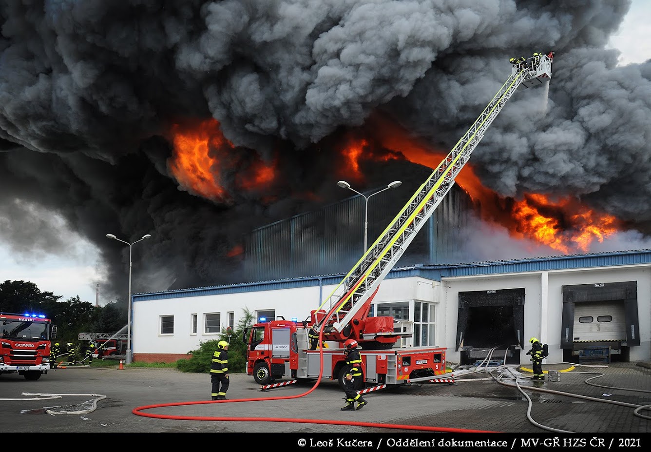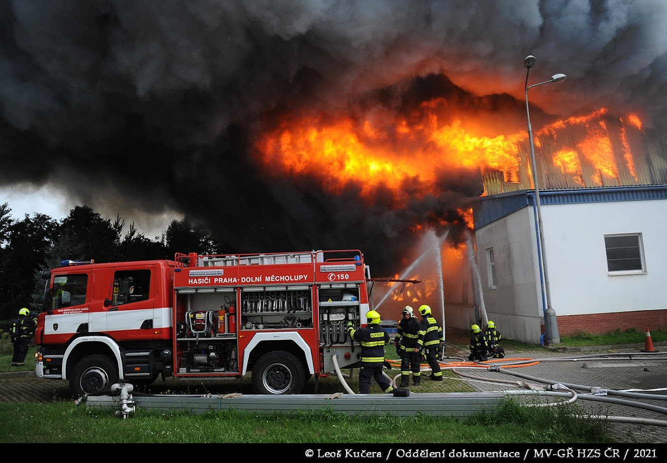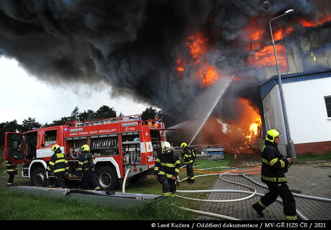 Uhříněves, 25. července 2021 – Nedělní odpoledne změnily mohutné plameny ve scénu jako z katastrofického filmu. Z temných mraků dýmu stoupajících z průmyslové zóny v Bečovské ulici byli svědky šokujícího dramatu nejen místní obyvatelé, ale také celé hasičské město. Na místě zasahovalo přes dvacet jednotek profesionálních i dobrovolných hasičů, aby čelily jednomu z největších požárů posledních let v hlavním městě.