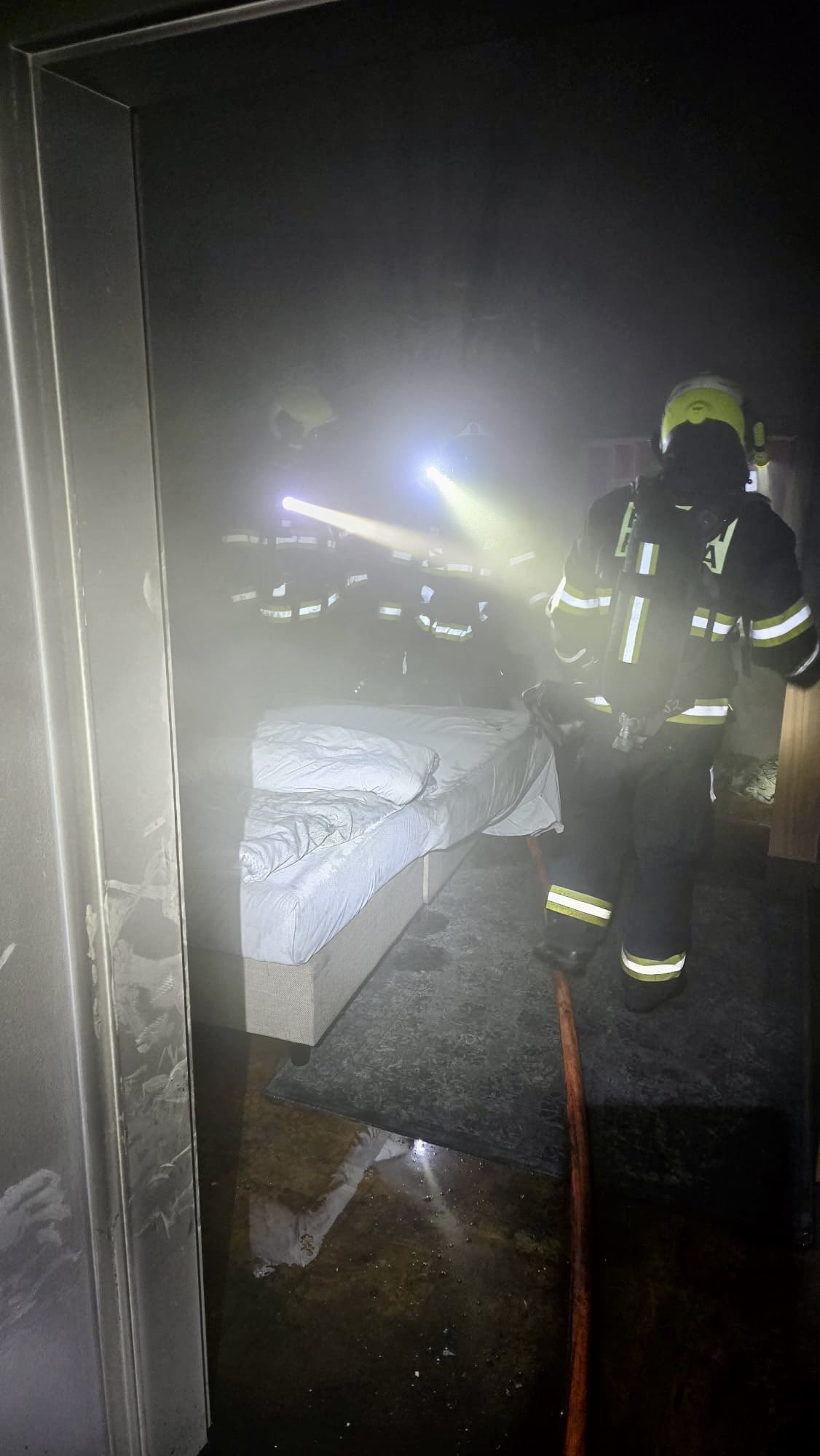 Hasiči po příjezdu provedli rychlý průzkum. V jednom z pokojů našli hořící postel. Oheň se naštěstí nerozšířil mimo místnost, přesto produkoval značné množství kouře. Zásah probíhal za použití jednoho proudu vody, který zajistil rychlé uhašení. Celkem třináct osob opustilo hotel ještě před příjezdem jednotek a nikdo nebyl zraněn.
