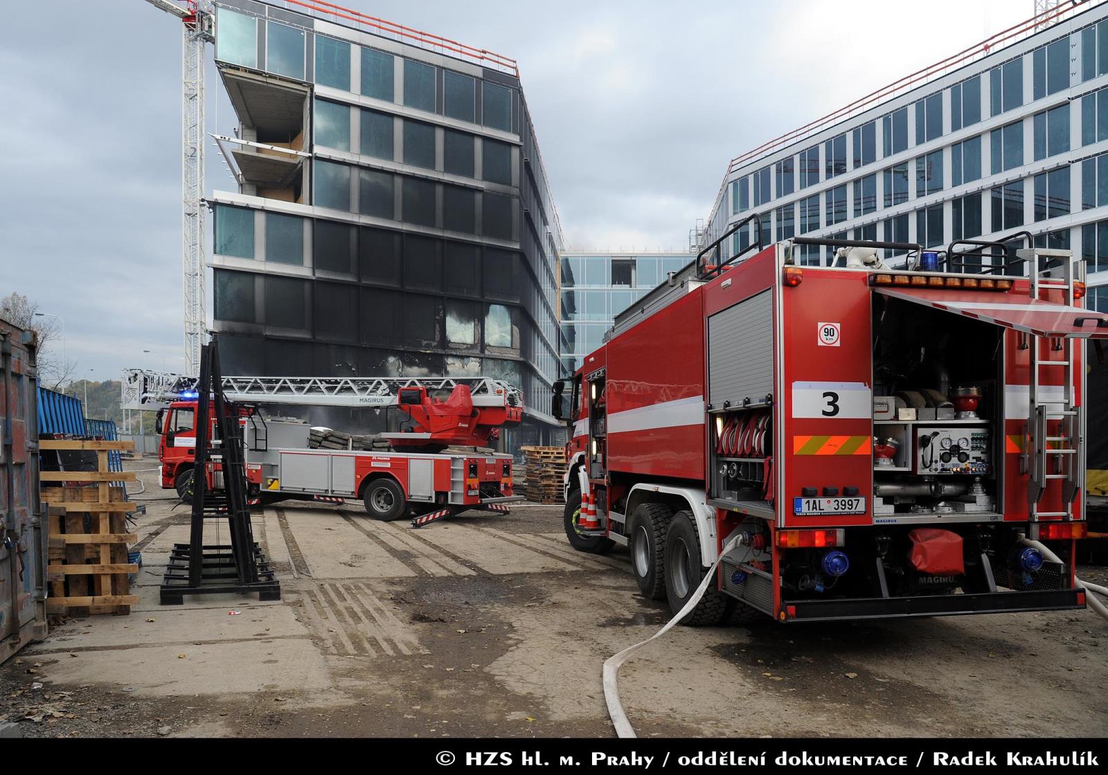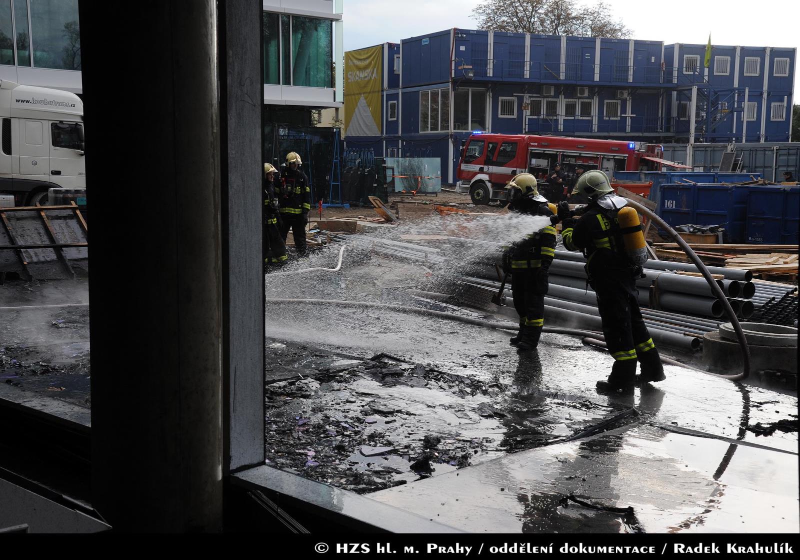 Tři jednotky pražských hasičů zasahovaly dne 12.10.2017 od 10:12 hodin u požáru na staveništi administrativní budovy v Argentinské ulici v Praze 7. První jednotka z holešovické stanice na místě byla dvě minuty od ohlášení události.