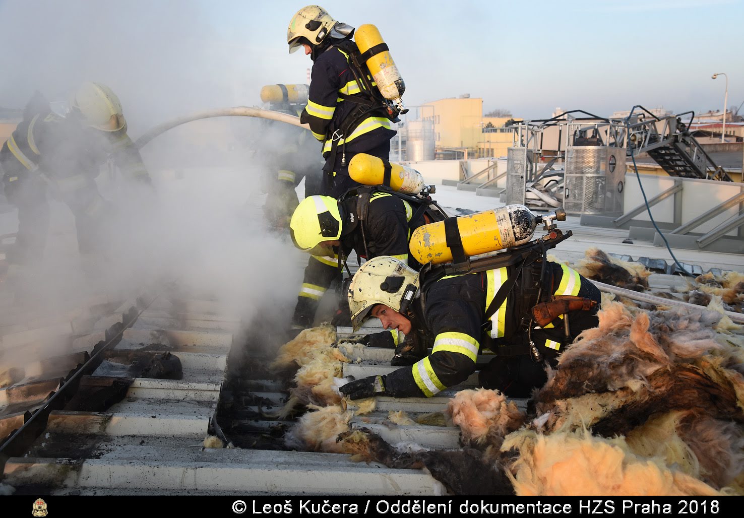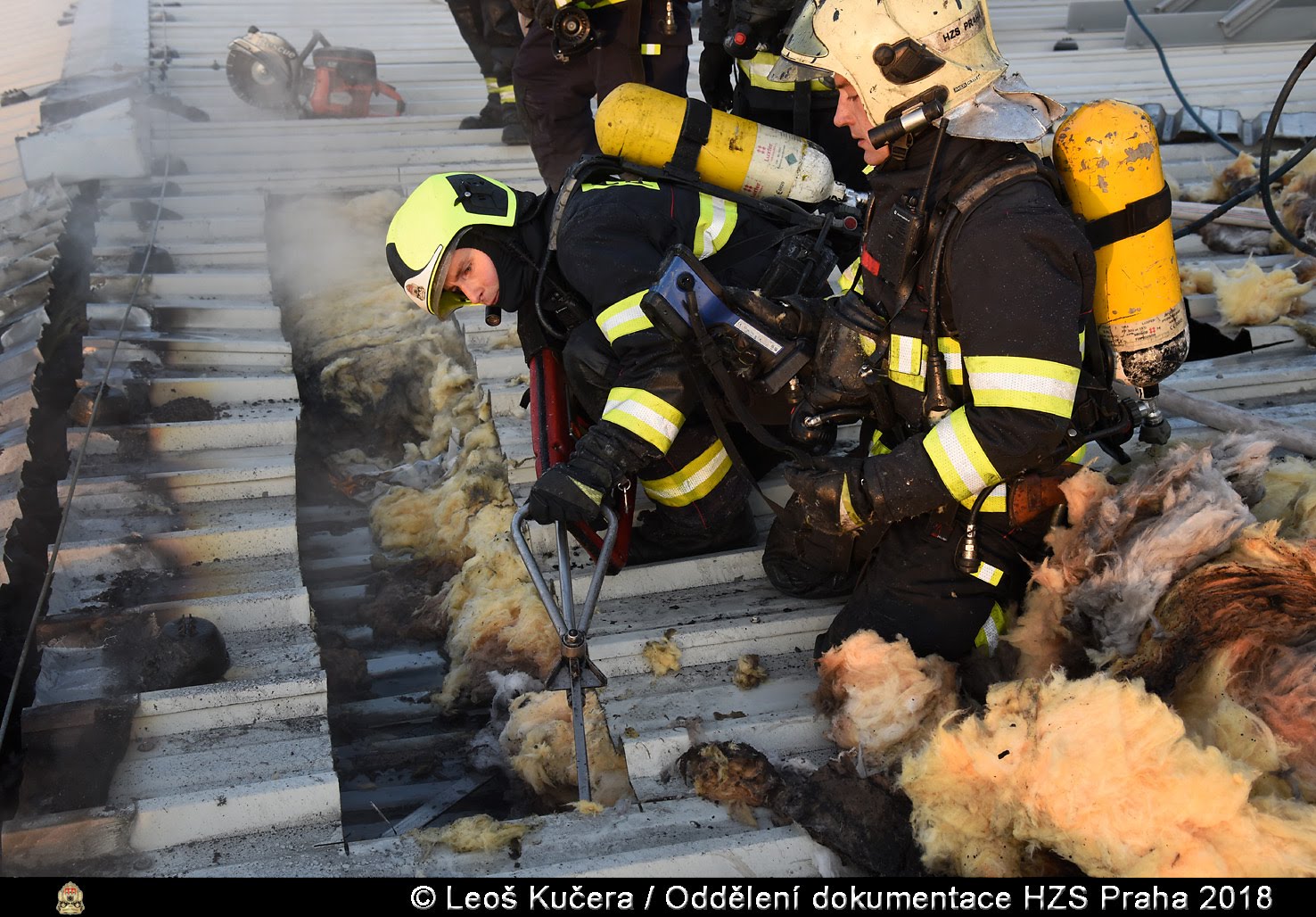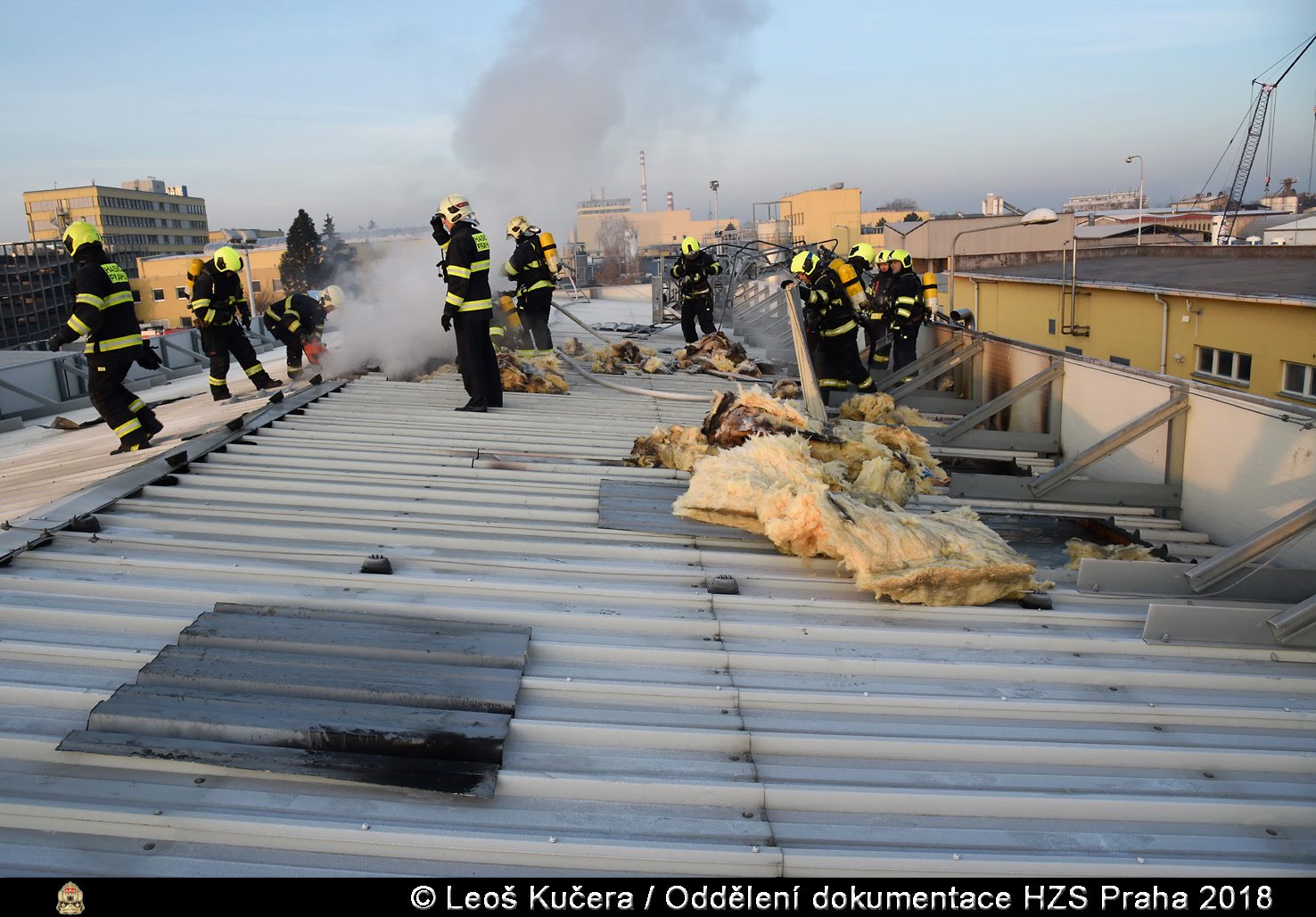 Požár izolace střechy haly v pražských Kyjích VIDEO/FOTOGALERIE
