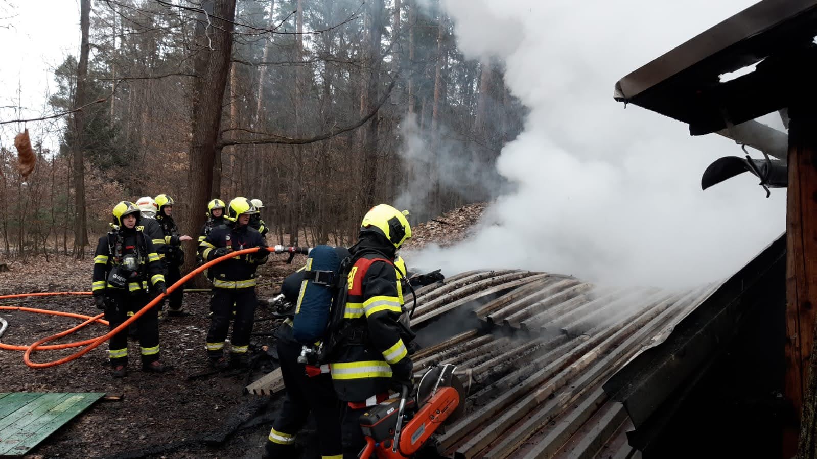 „Hořelo opravdu intenzivně. Vzduchem se valil dým a šlehaly plameny, které bylo vidět už z dálky,“ popsal situaci jeden z přivolaných hasičů. V ohni skončilo několik přístřešků u hájovny, přičemž celý komplex o rozměrech zhruba 10 x 10 metrů byl vážně poškozen.