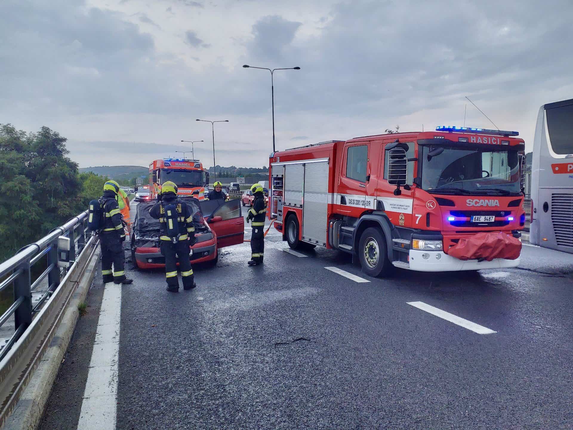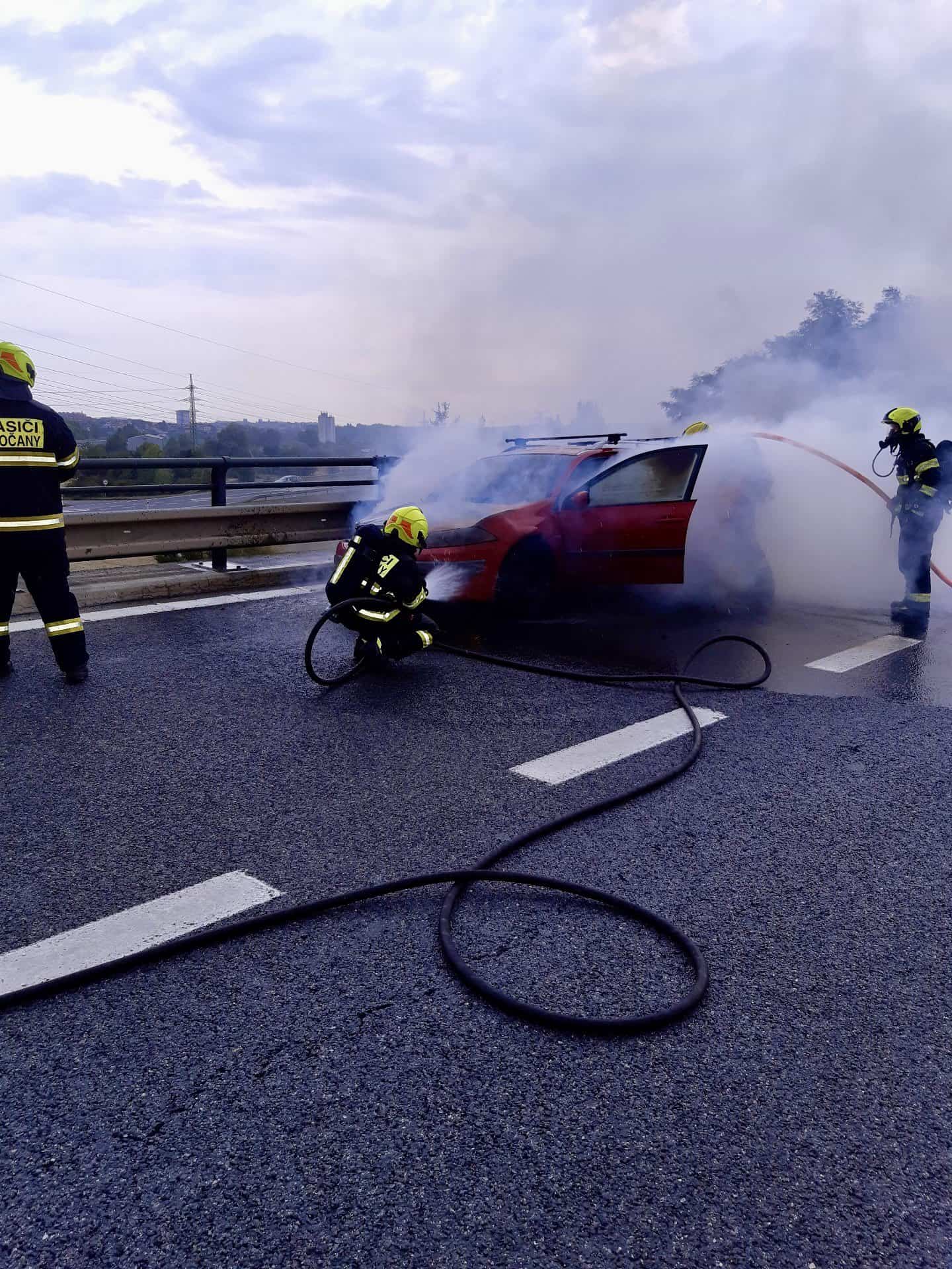 V sobotu 16. srpna 2025 večer zasahovali pražští hasiči společně s kolegy ze Středočeského kraje u požáru osobního automobilu na dálnici D0.