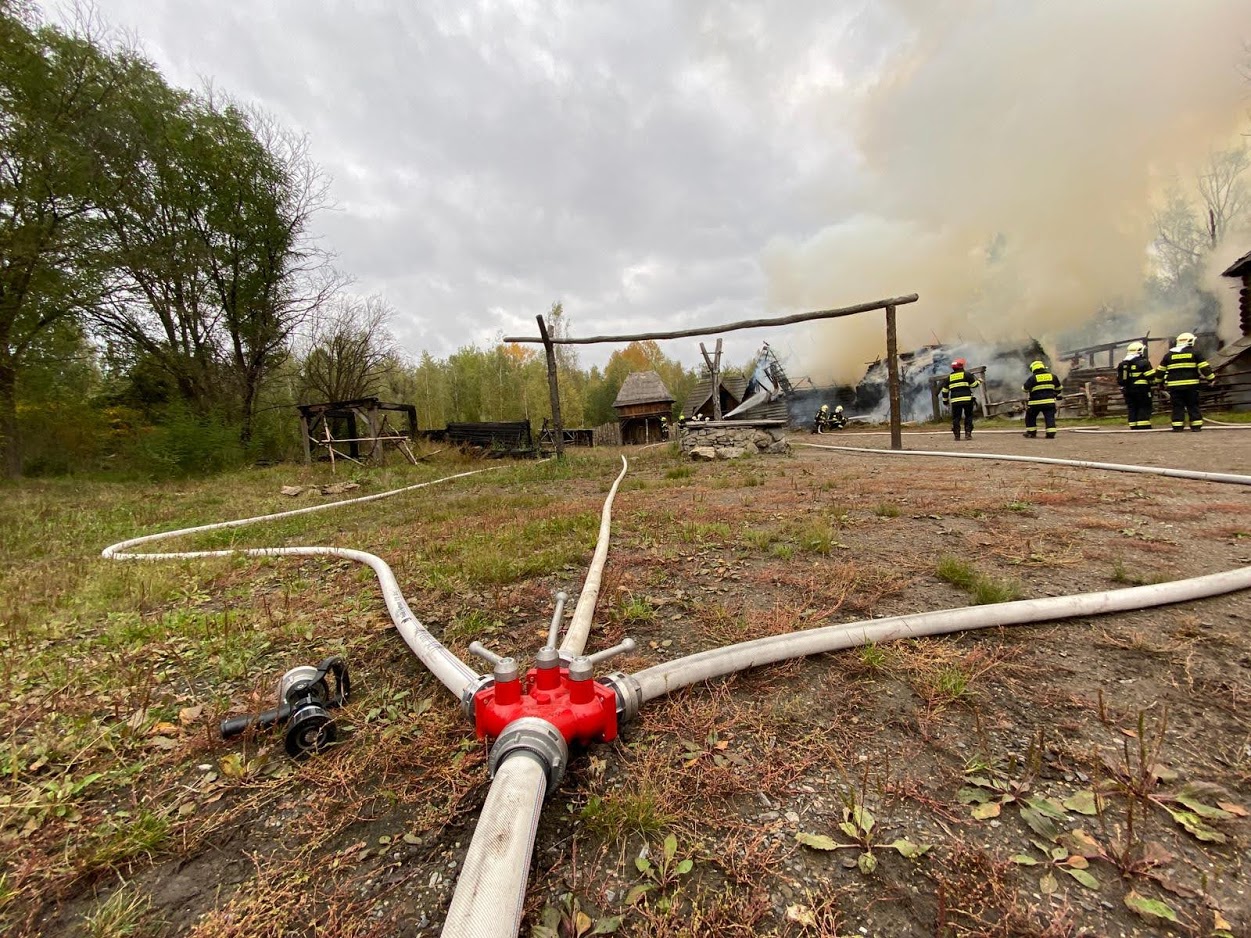 Video zde: Požár poškodil několik dřevěných objektů ve skanzenu Řepora