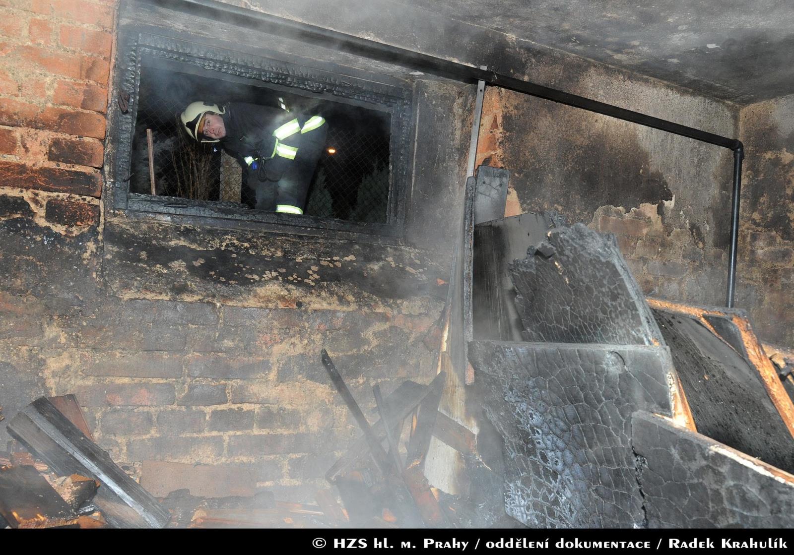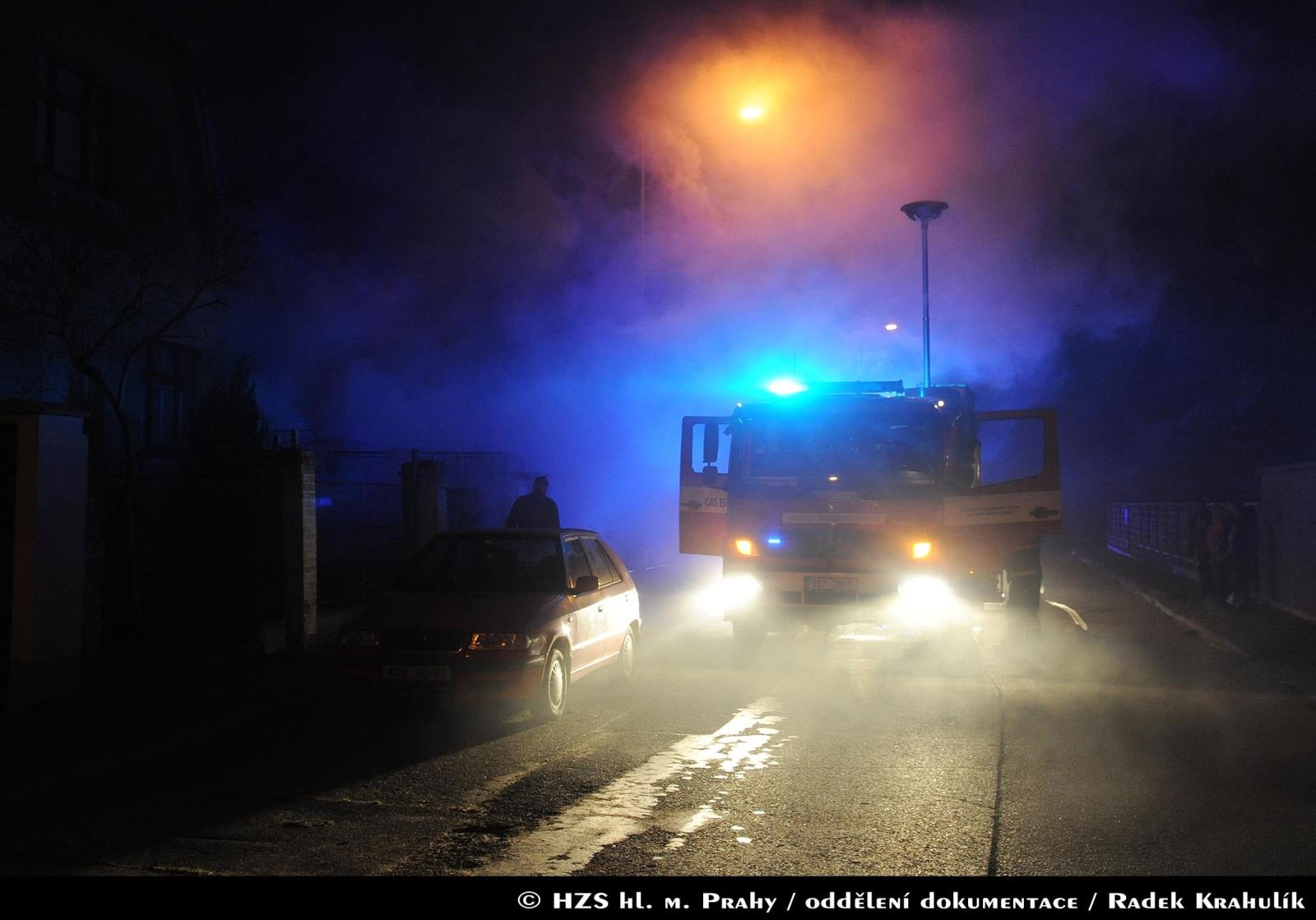 Požár sklepa, který vznikl nedbalostí v rodinném domě v Praze 5 likvidovali profesionální a dobrovolní hasiči