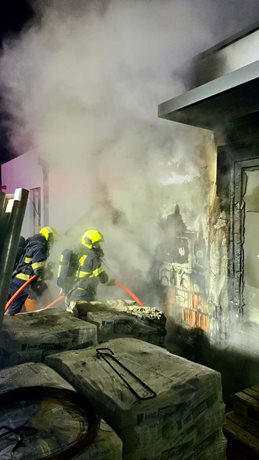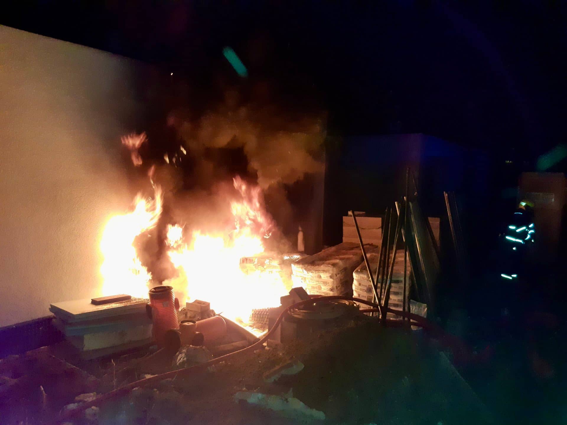 Požár stavebního materiálu zaměstnal hasiče