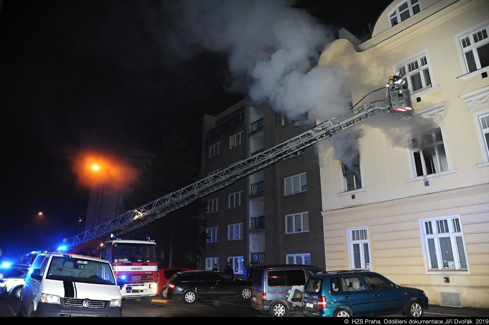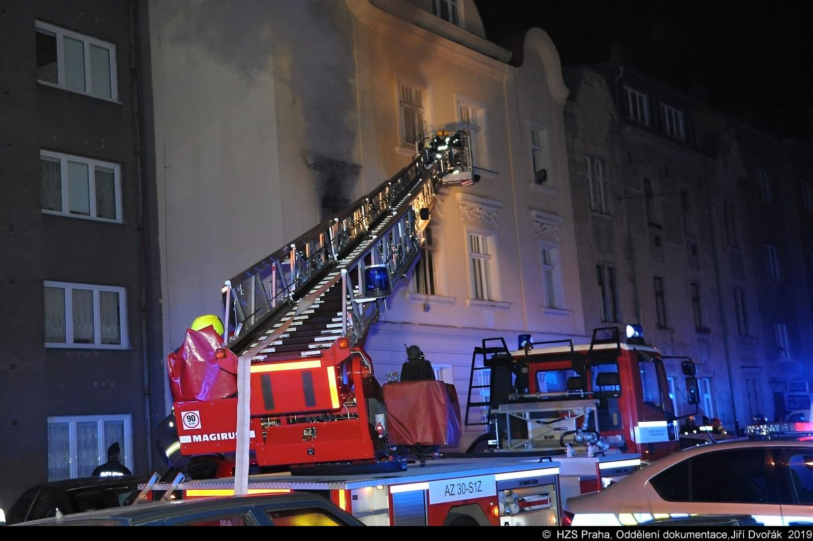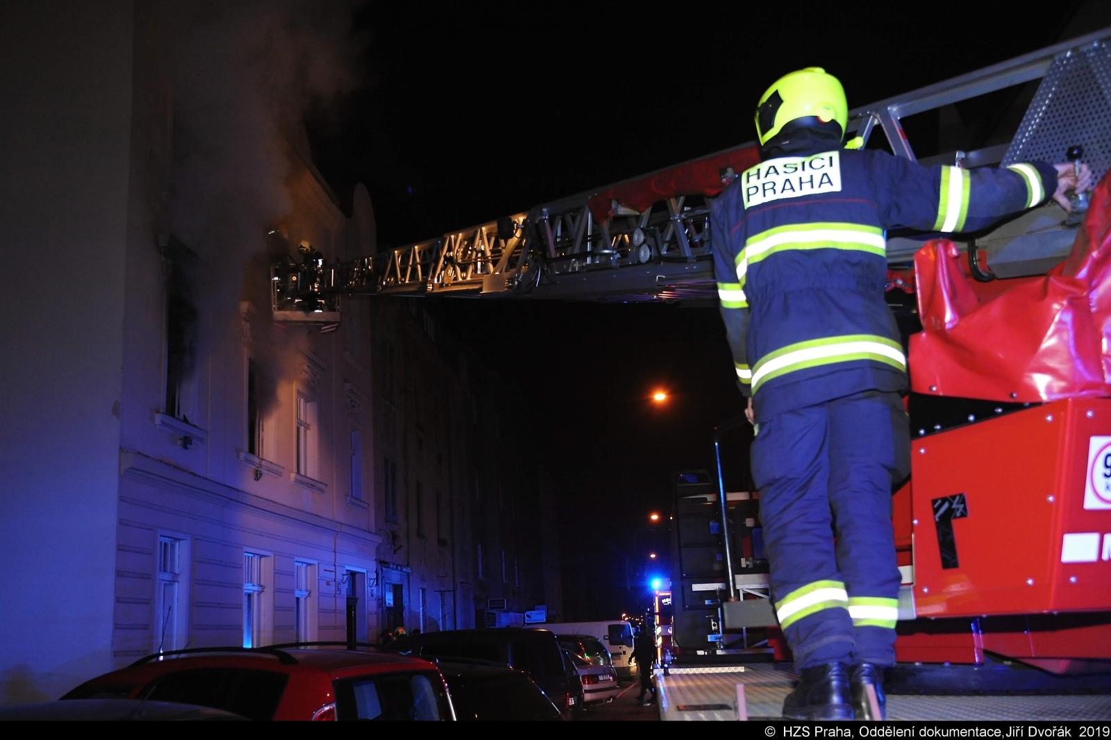 Požár v Praze 10 zničil v noci celý byt, hasiči zachránili 7 osob