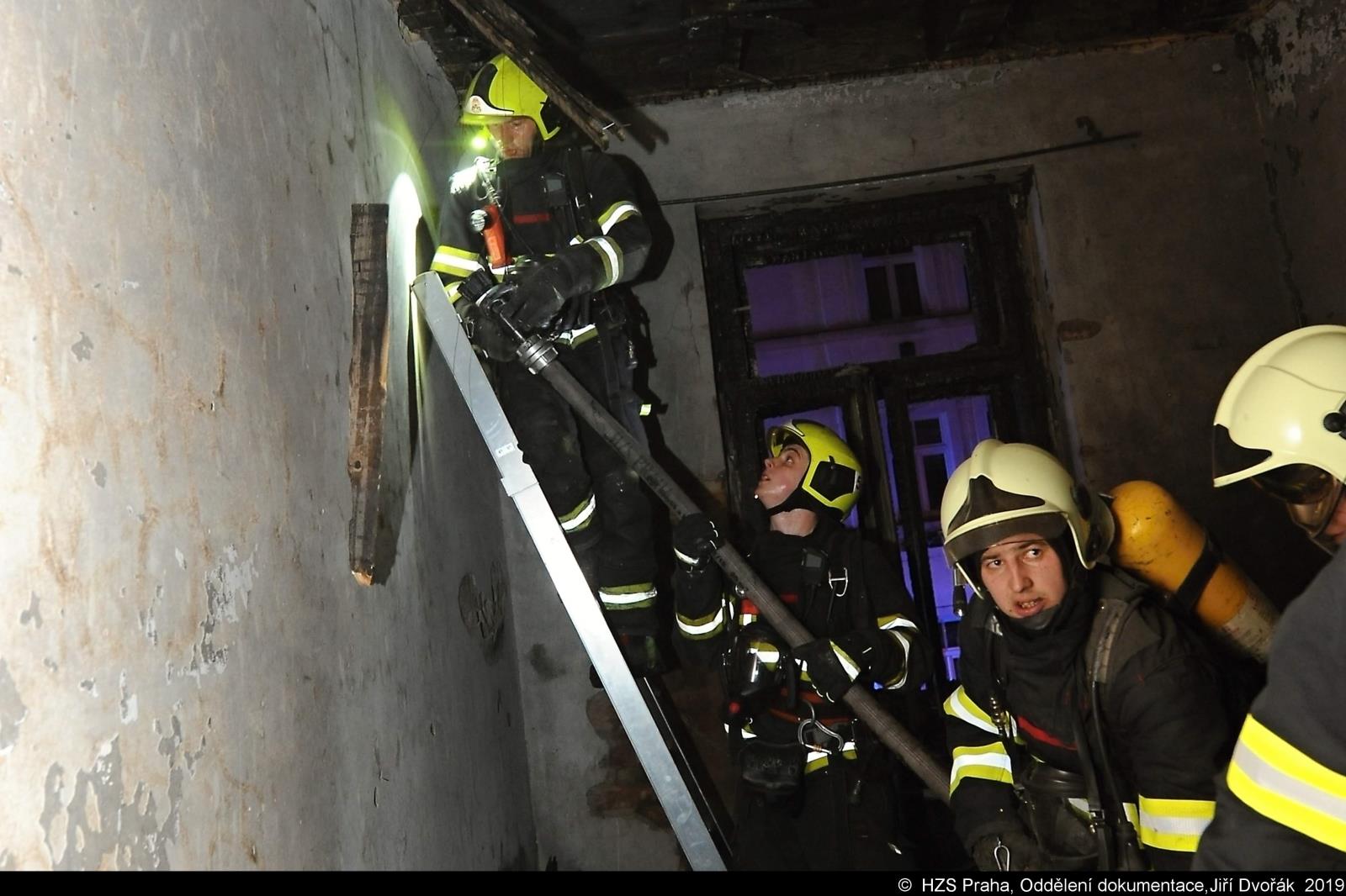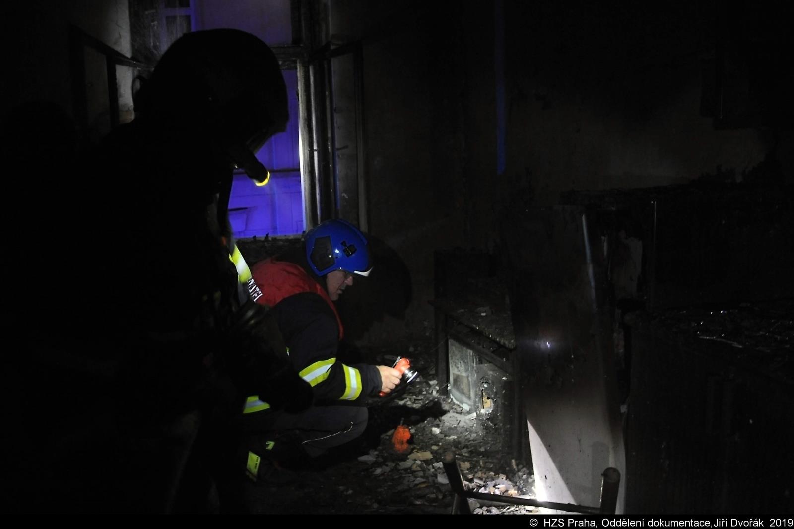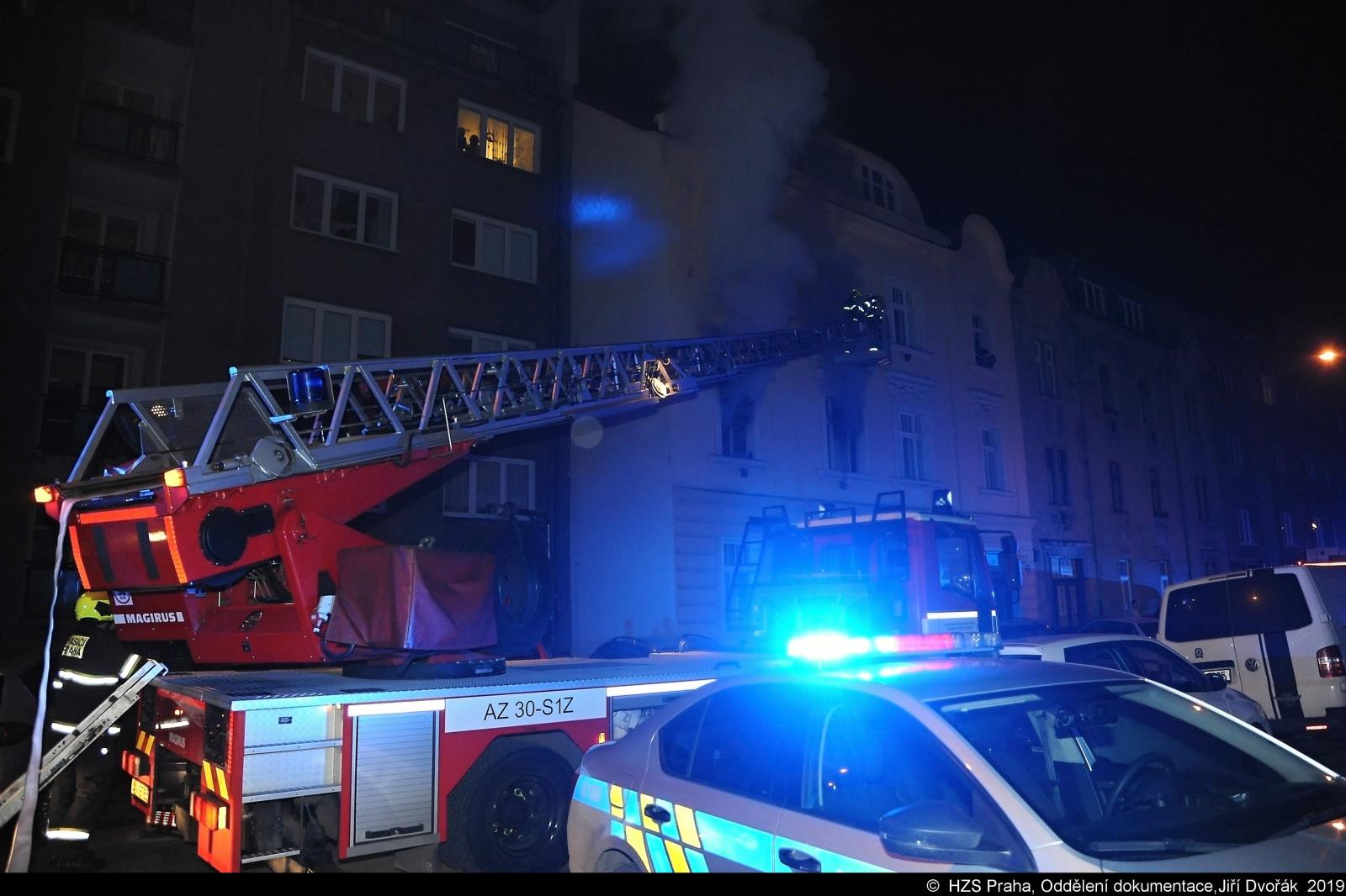 Požár v Praze 10 zničil v noci celý byt, hasiči zachránili 7 osob