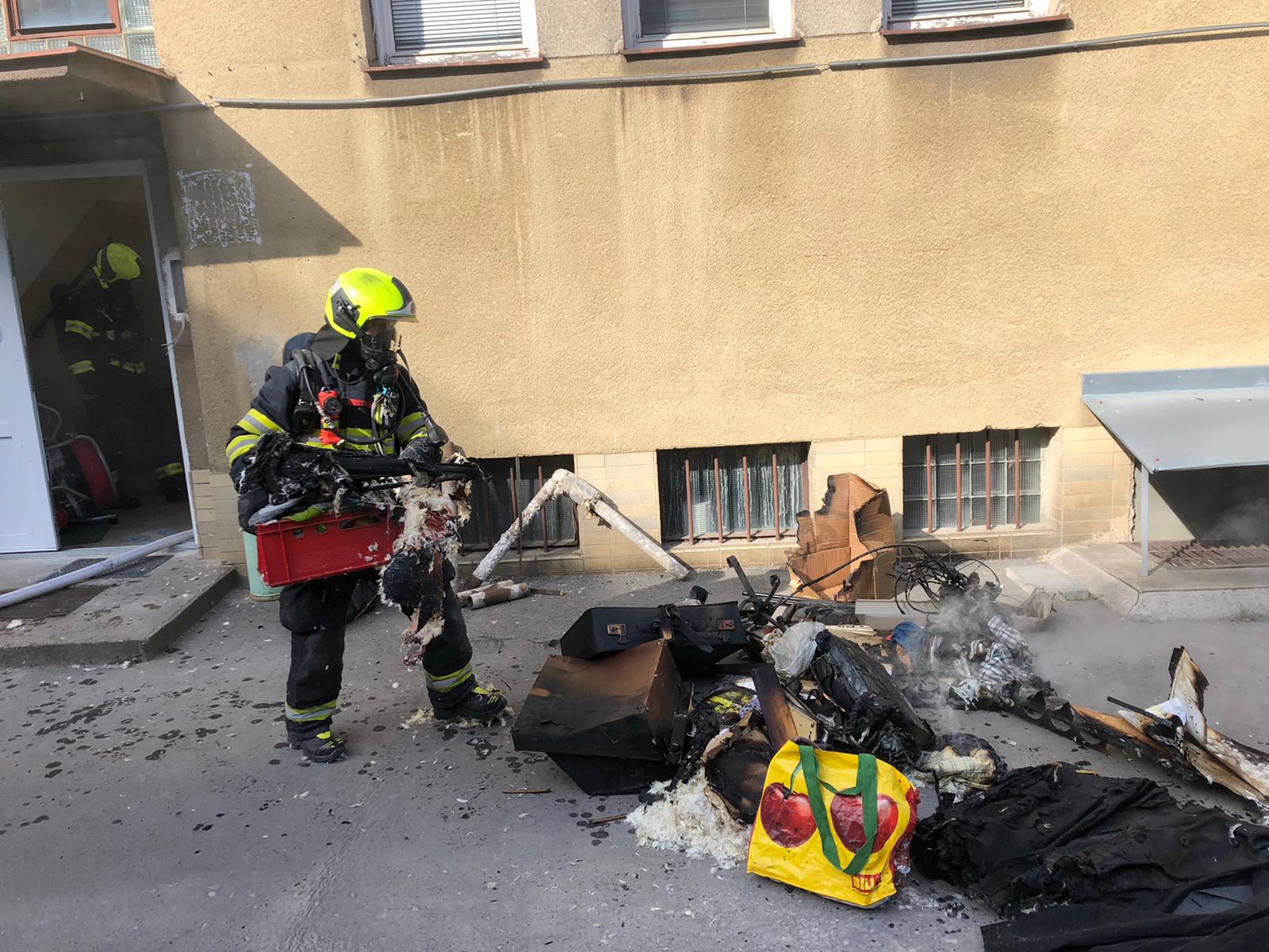 Požárem poškozené věci hasiči prolévali vodou, místnost zkontrolovali termokamerou. Před příjezdem hasičů opustilo objekt několik osob. Rozsah škod a přesnou příčinu požáru zjišťuje hasičský vyšetřovatel.