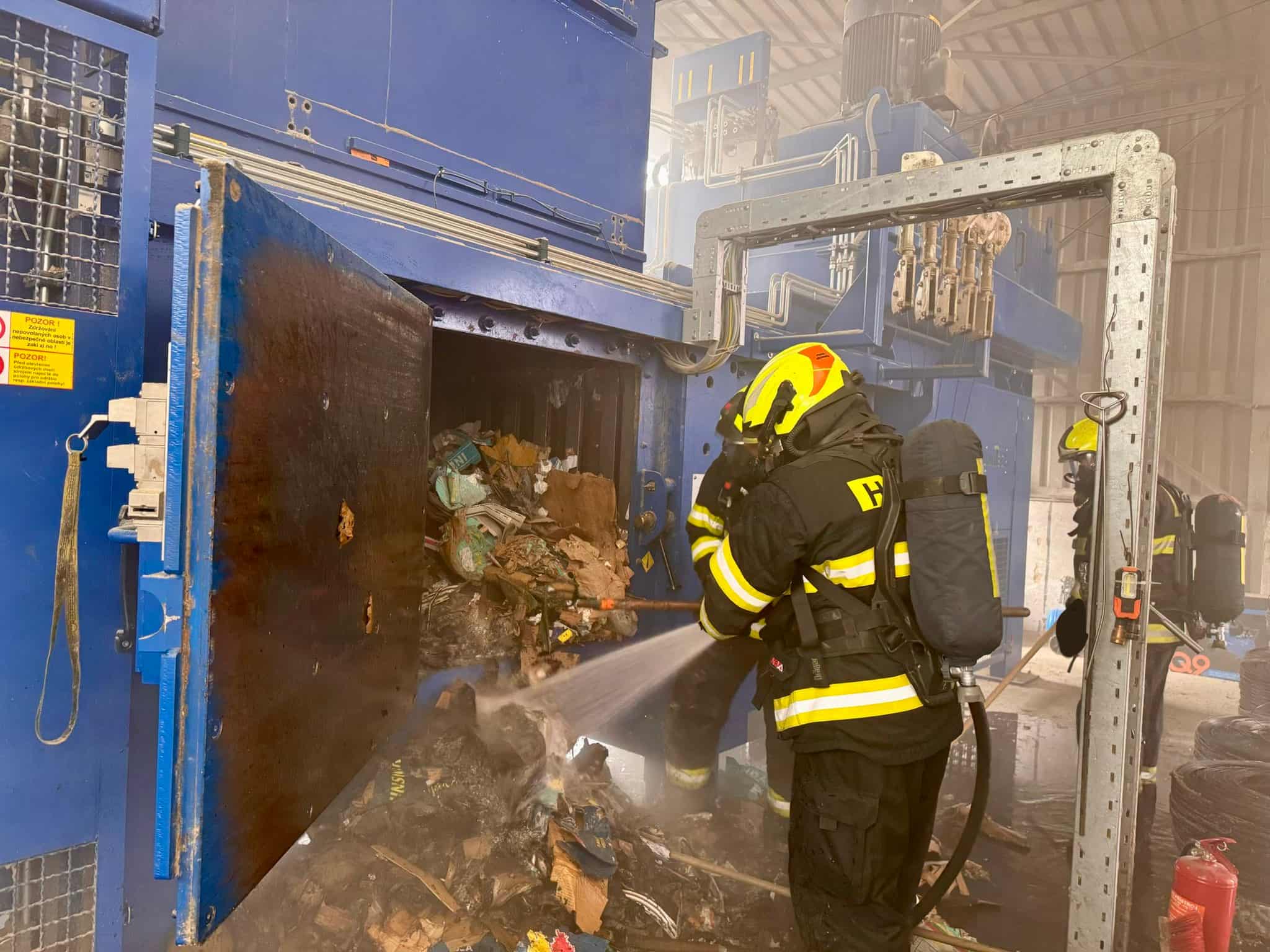 Požár vznikl přímo v lisovací komoře stroje. Takové místo je obtížně přístupné a hrozí zde skrytá ohniska. Situace vyžadovala rychlé a přesné nasazení sil a prostředků, aby nedošlo k poškození celé technologie ani konstrukce haly.