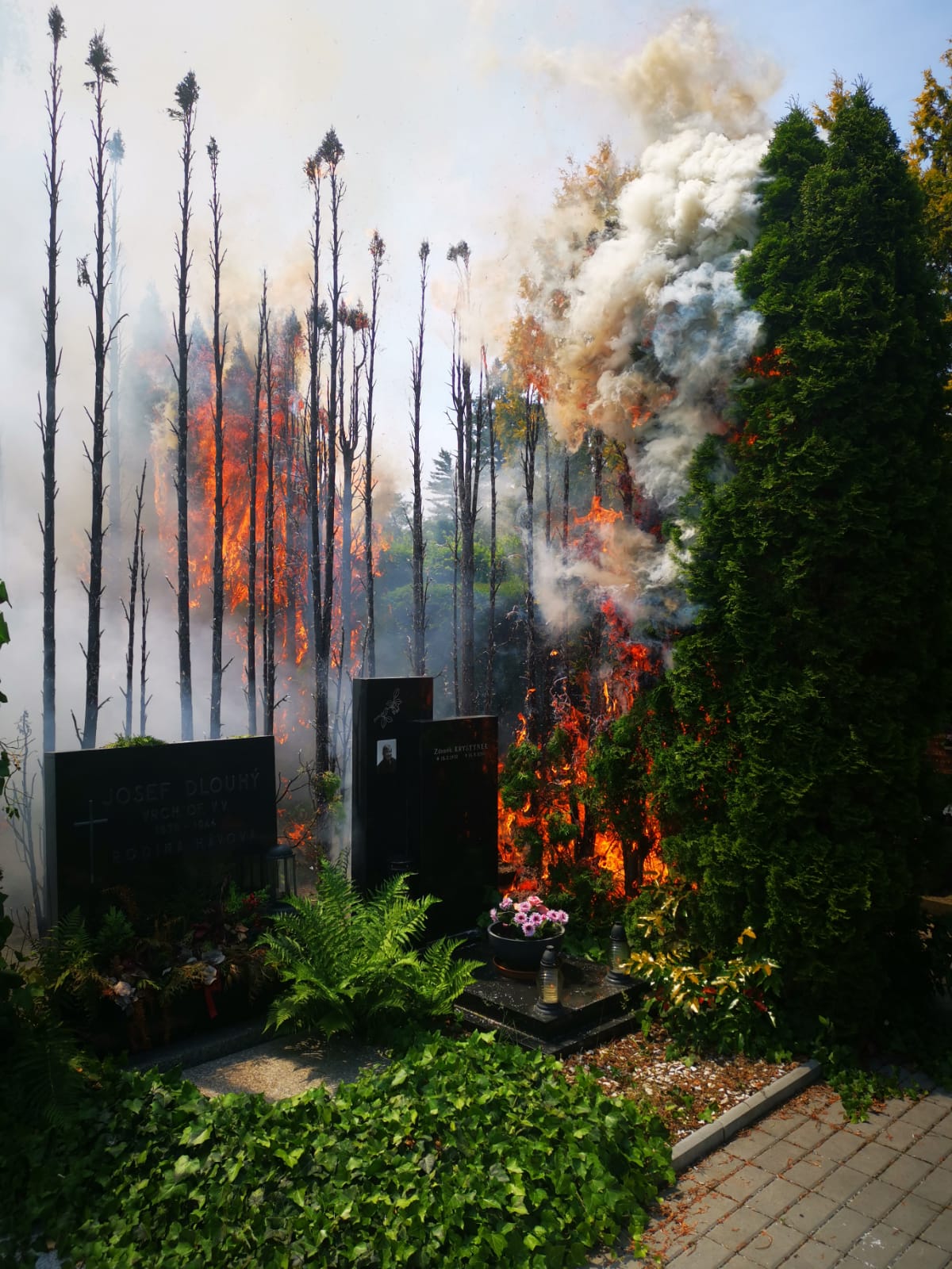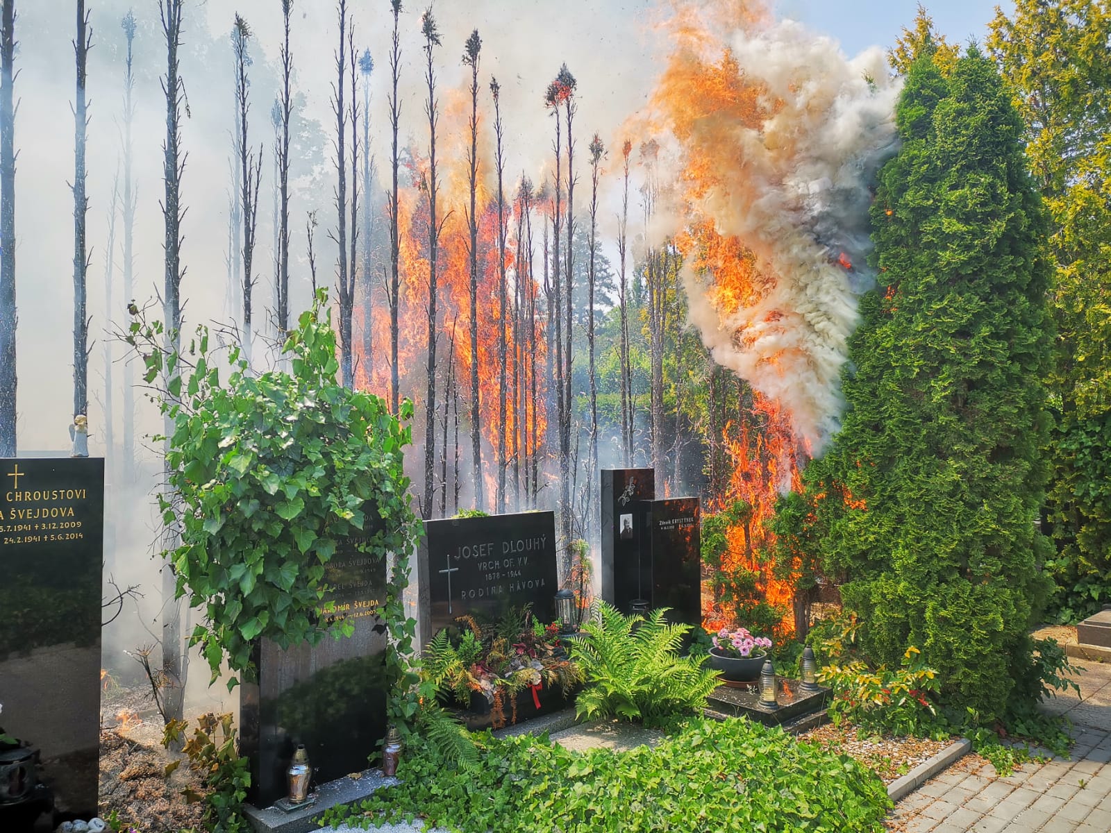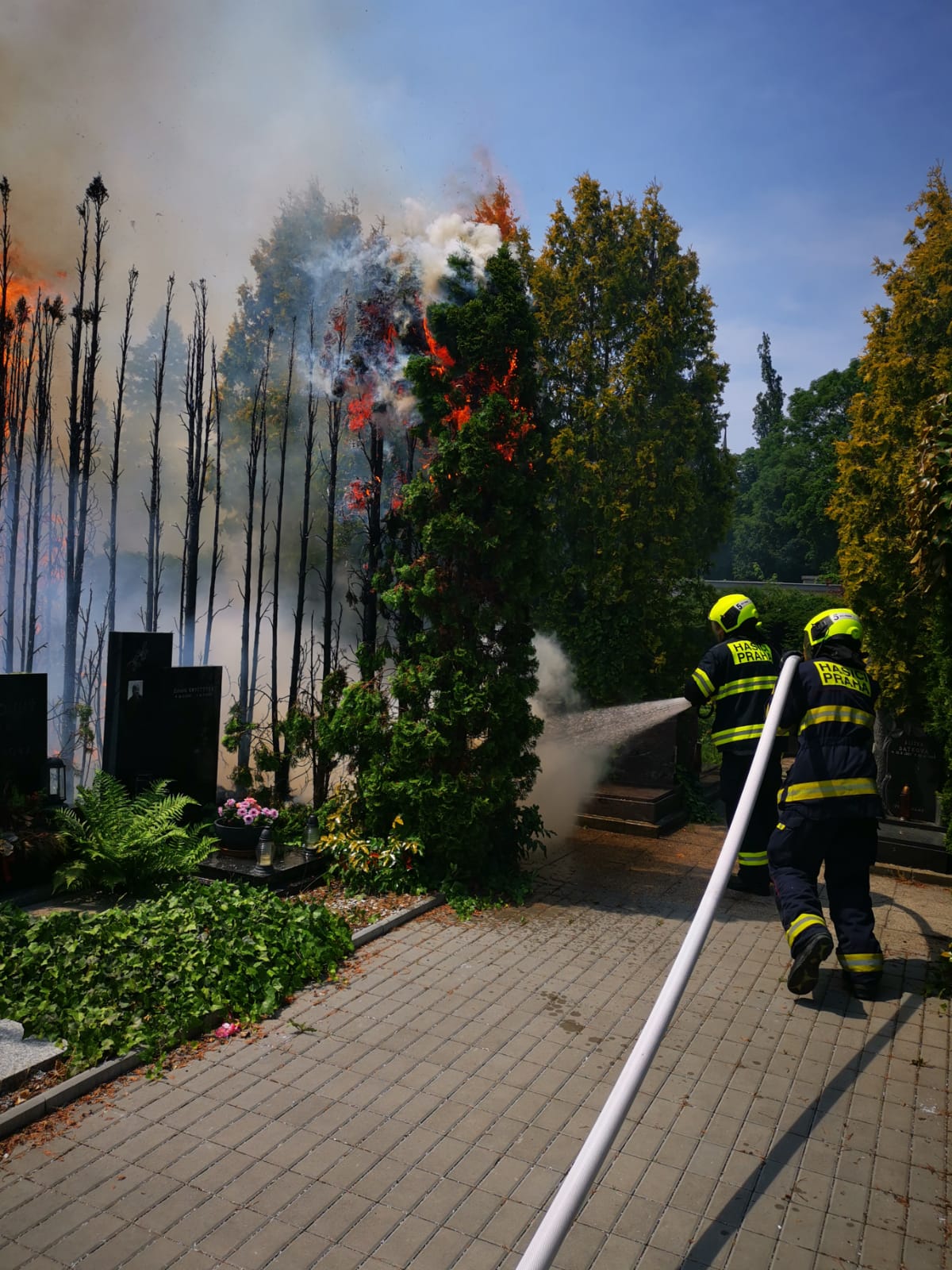Video zde: Požár více než osmdesáti tújí na Vinohradském hřbitově způsobil...