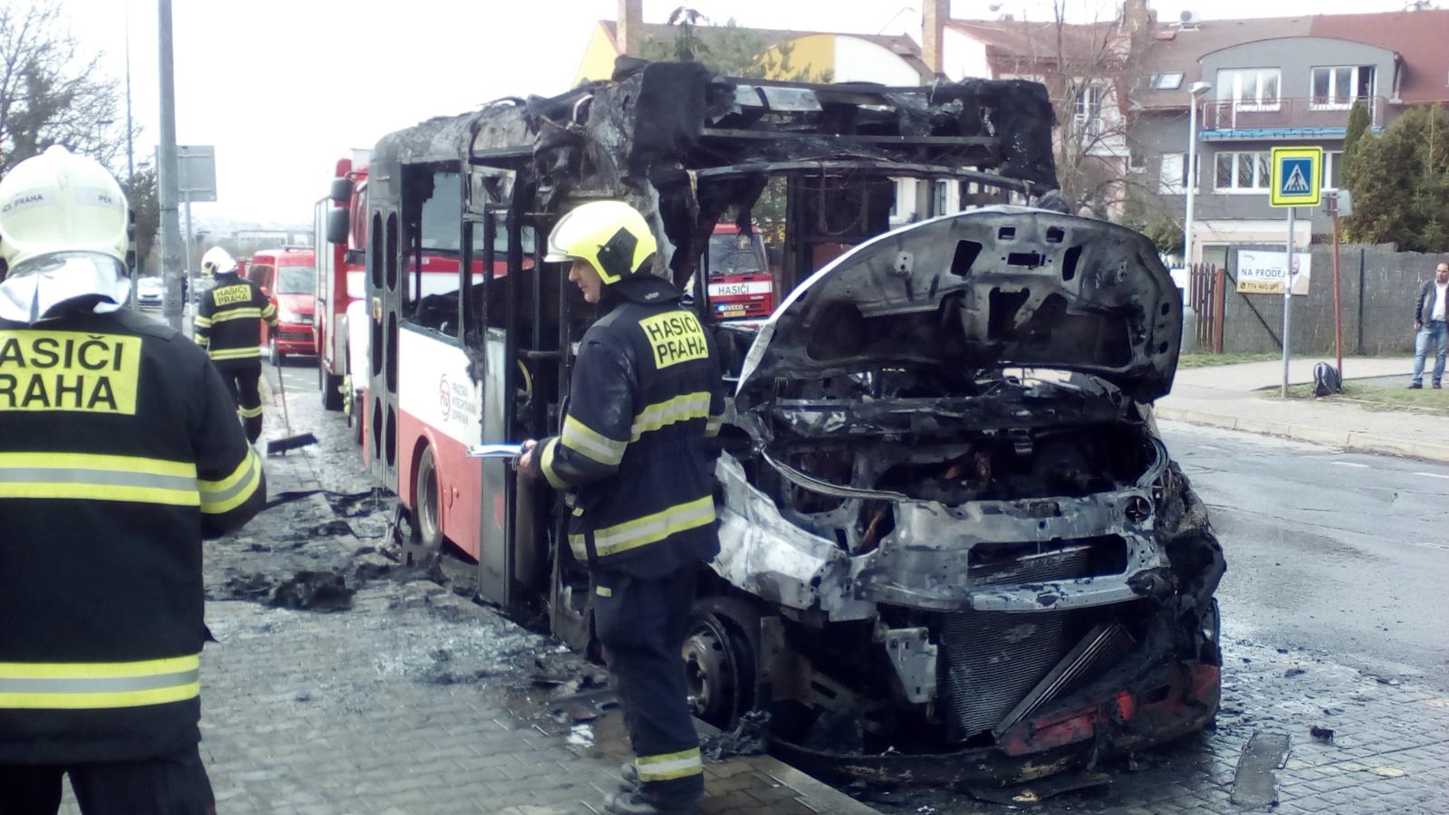 Požárem byl autobus v pražských Kyjích prakticky zničen, příčinou byla technická závada