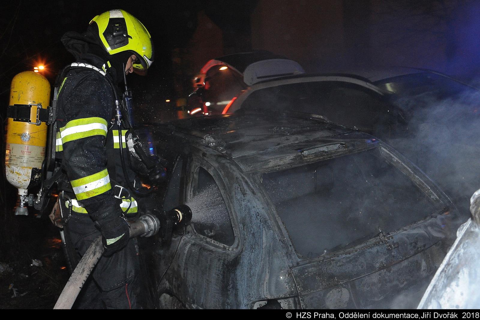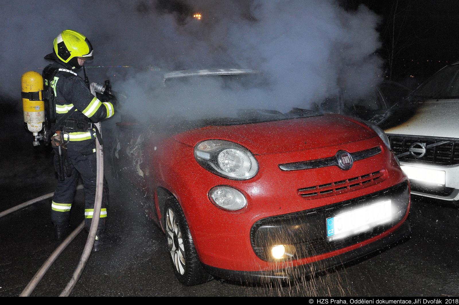 Požárem bylo poškozeno 7 aut, vznikla škoda přes 800 tis. Kč