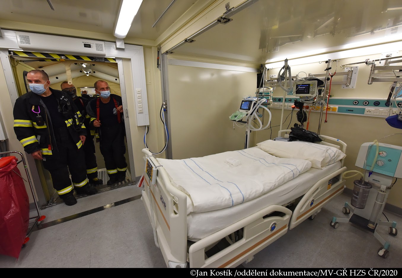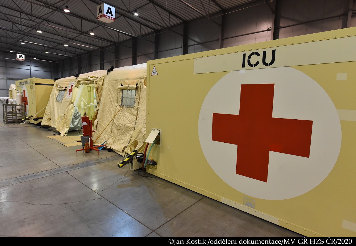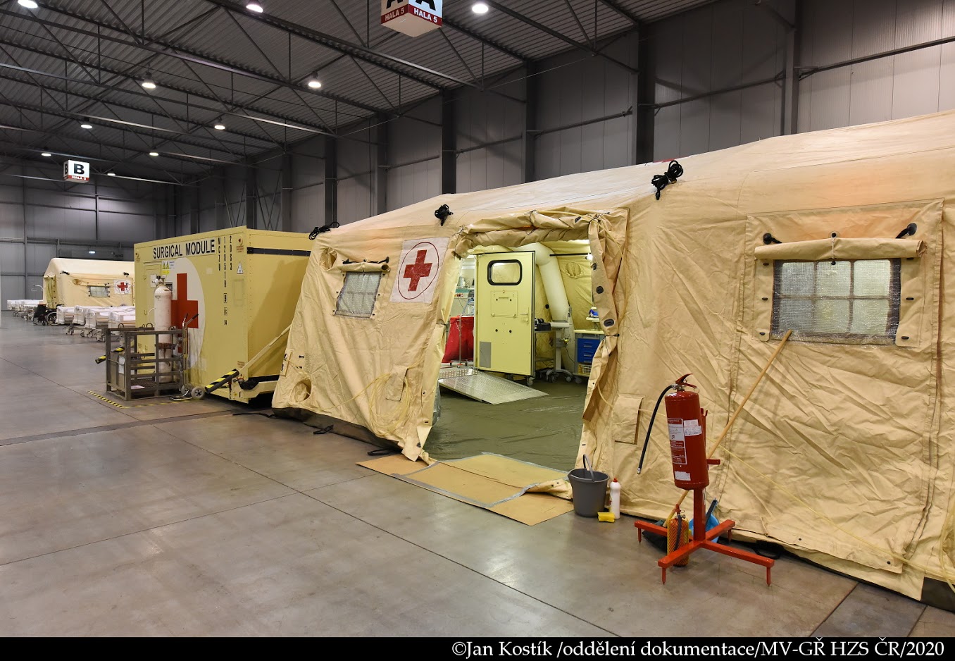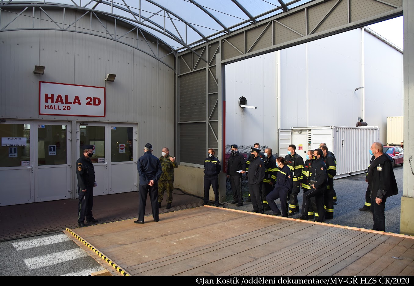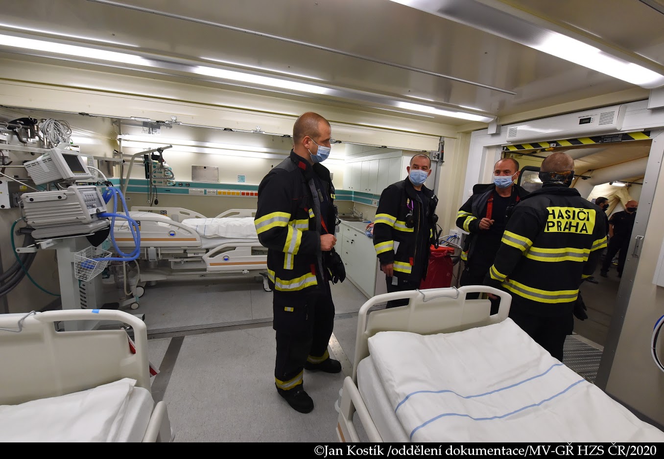 Během víkendu také proběhlo seznámení jednotek pražských hasičů s polní nemocnicí. Hasiči si vyzkoušeli příjezdové cesty a nástupní plochy, provedl se také test protipožárního vybavení objektu.