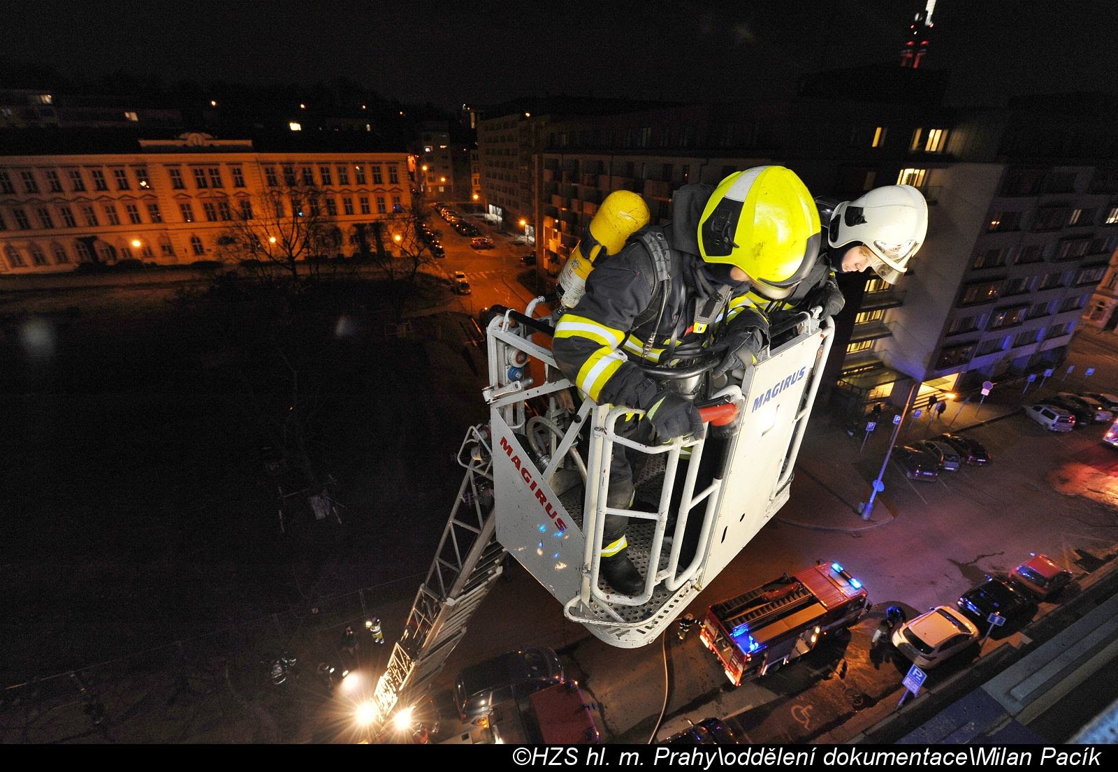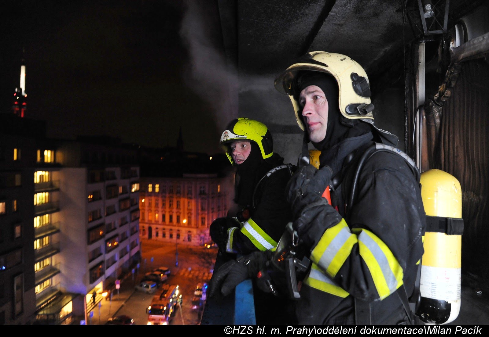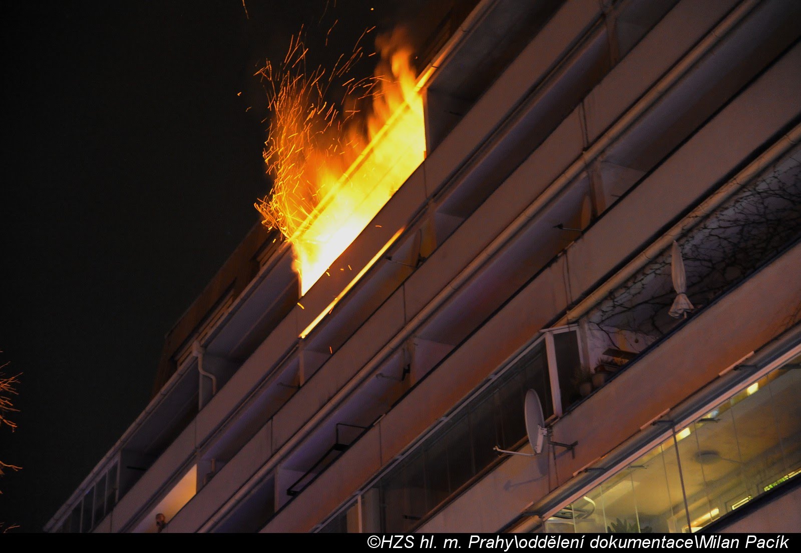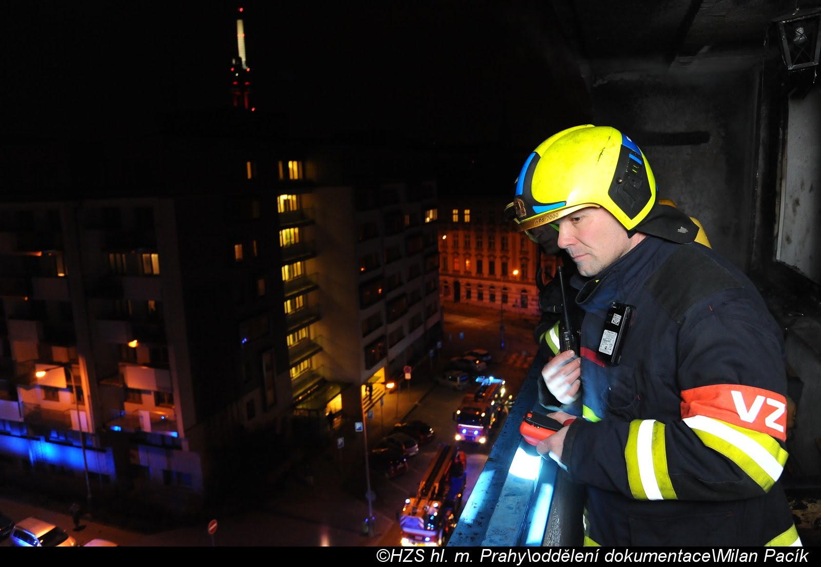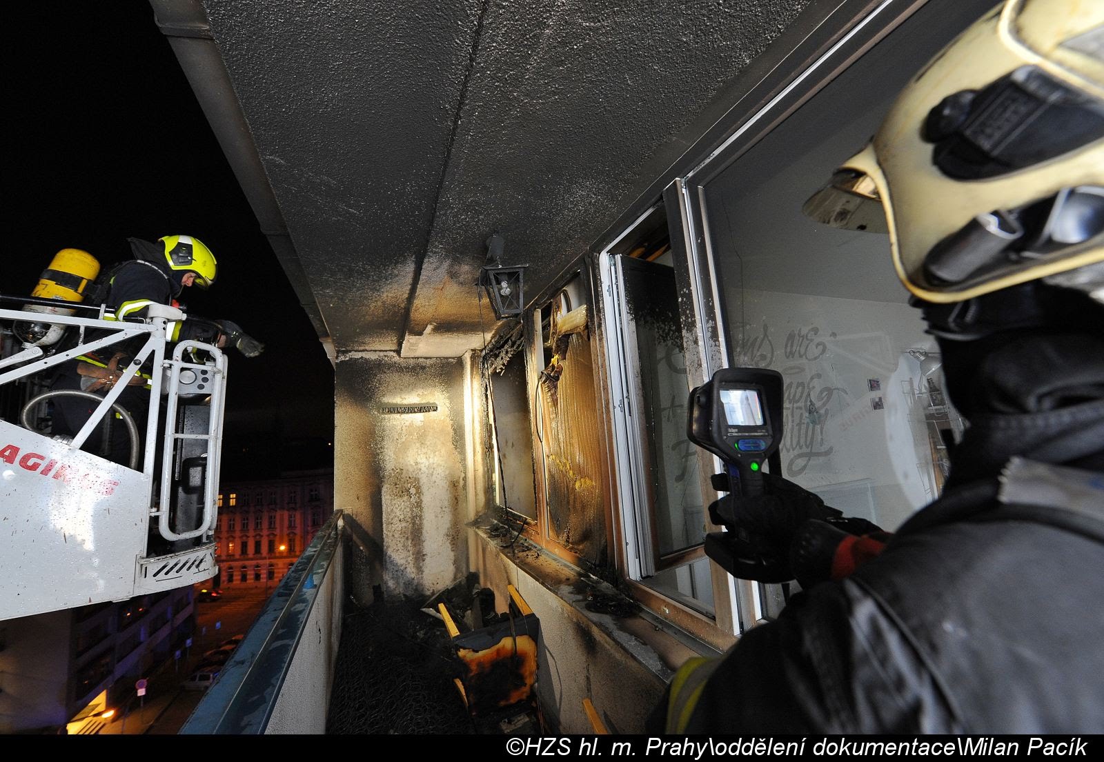 Před půlnocí u požáru balkónu v obytném domě v Praze na Žižkově zasahovaly tři jednotky hasičů