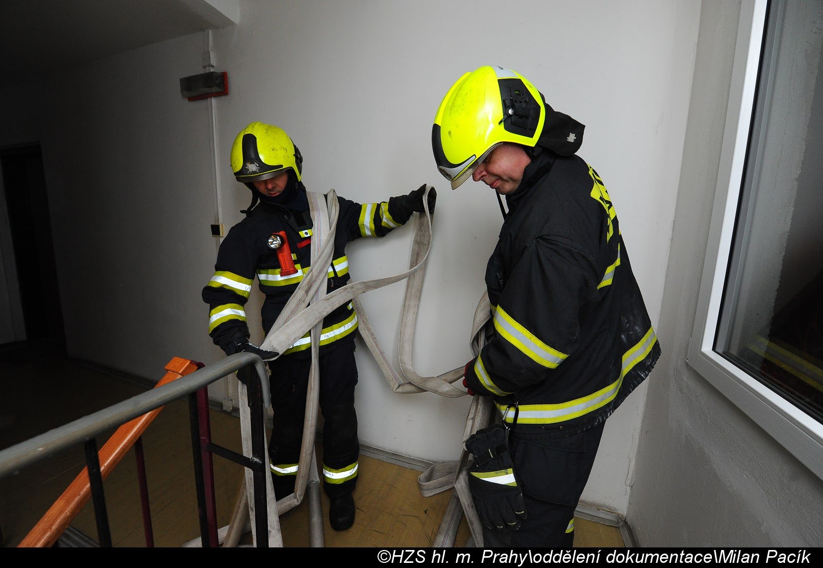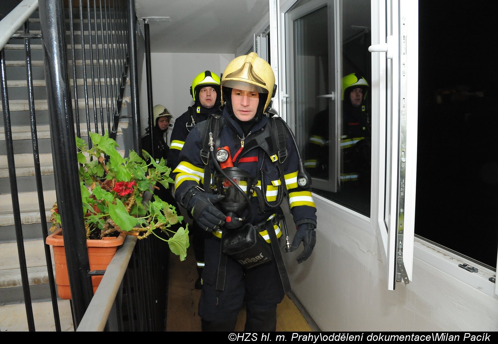 Hasiči zasahovali v dýchací technice a pomocí 1 C proudu vnitřkem budovy, na kontrolu patra nad místem požáru použili výškovou techniku. Hořel odpad na balkóně jednoho z bytů ve vyšším patře domu, sálavé teplo částečně proniklo do kuchyně.