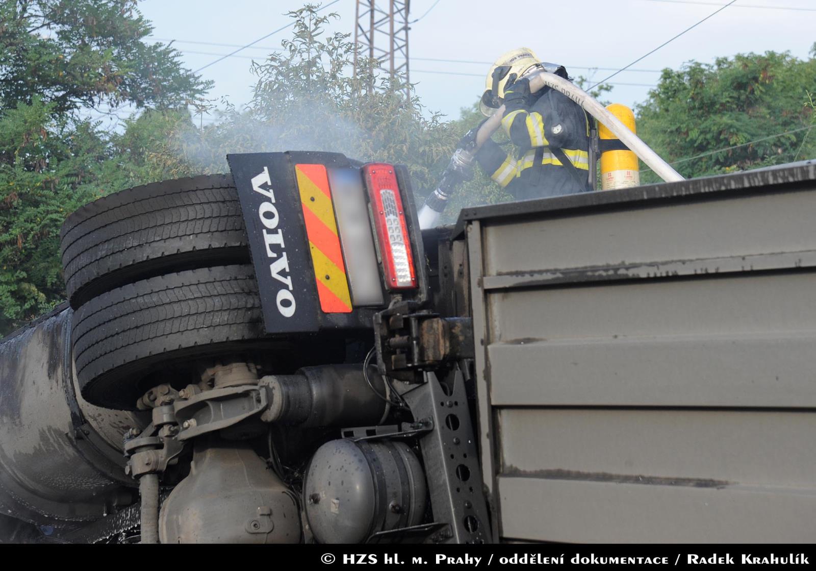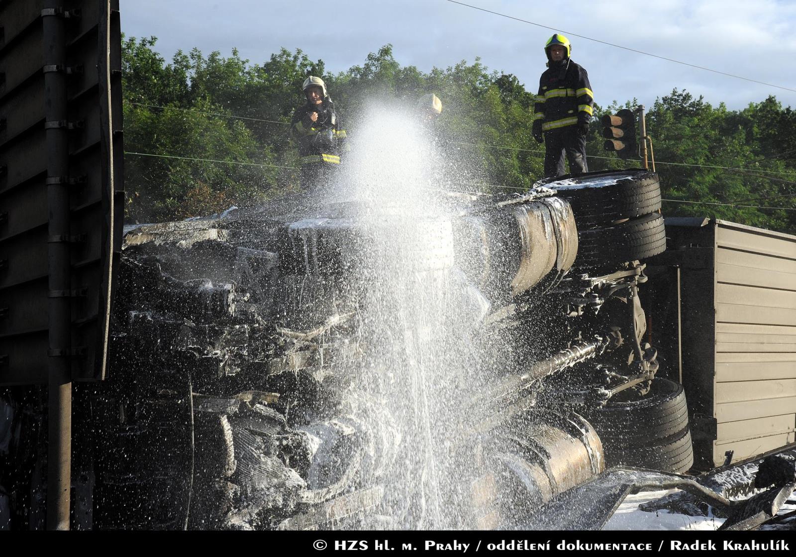 Ve středu 26.07.2017 v 06:25 hodin zasahovaly dvě jednotky pražských hasičů na Jižní spojce v oblasti Záběhlic, ve směru na Barrandovský most. Po nehodě se převrátil kamion a začal mu hořet motor. Požár hasiči dostali pod kontrolu za 5 minut po příjezdu na místo.