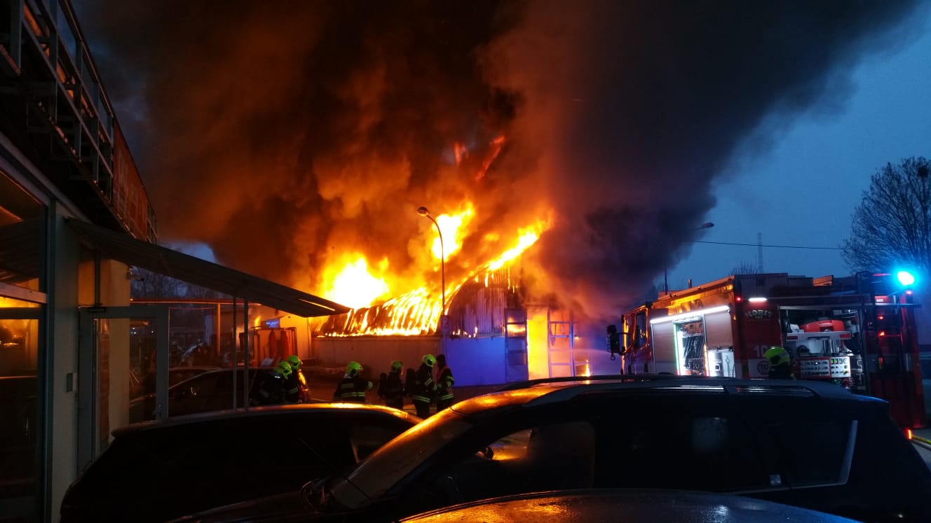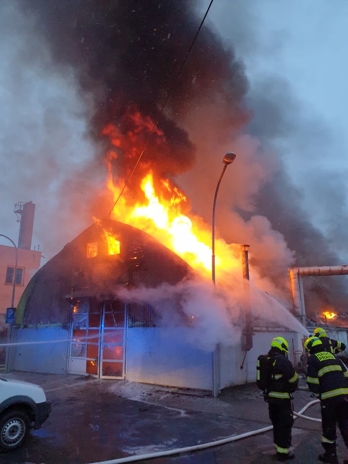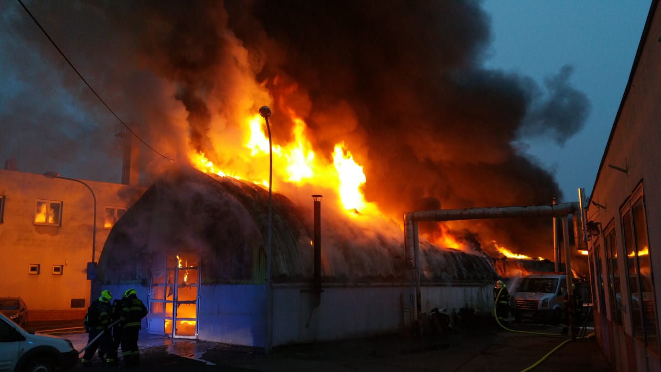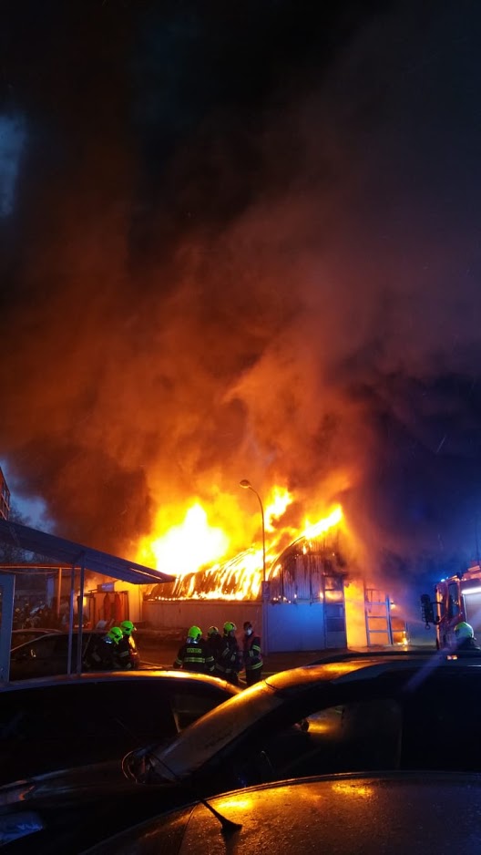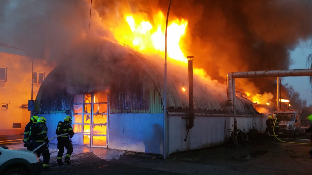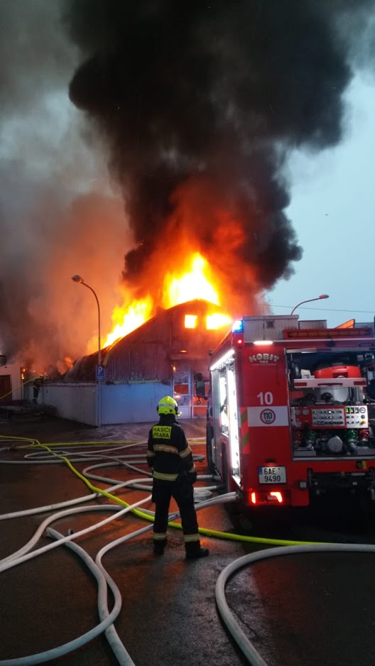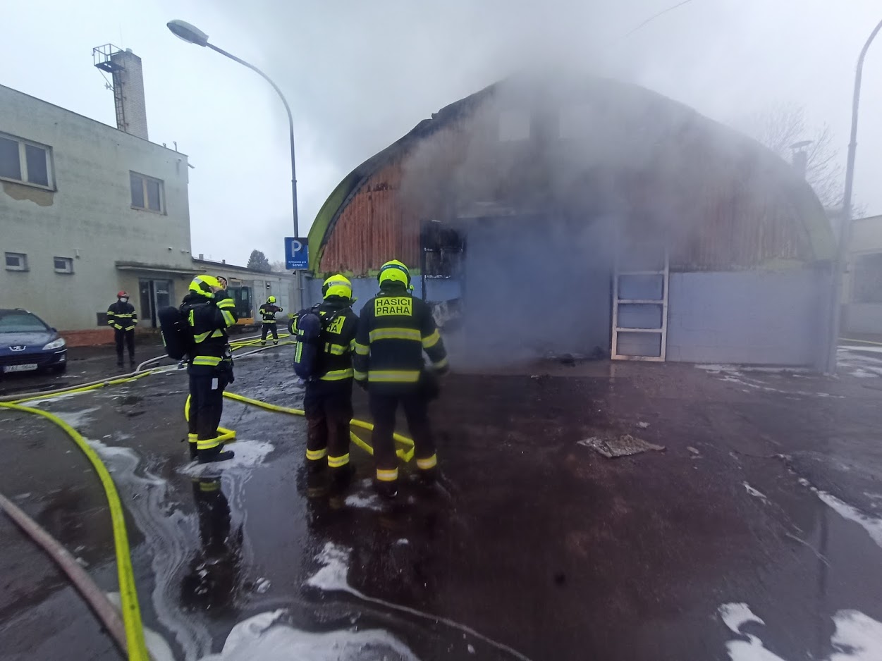 Video zde: Požár autoservisu v Čakovicích způsobil několikamilionovou škodu
