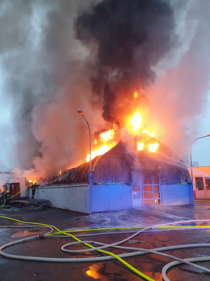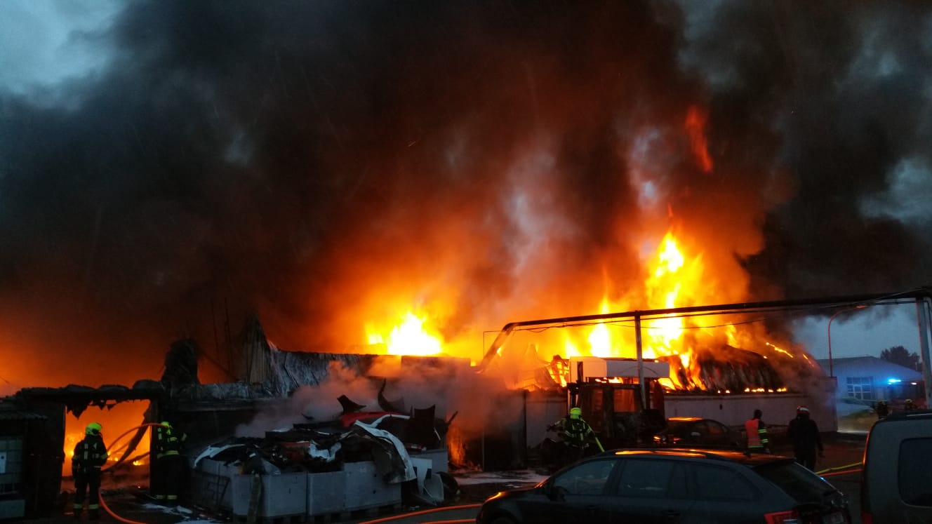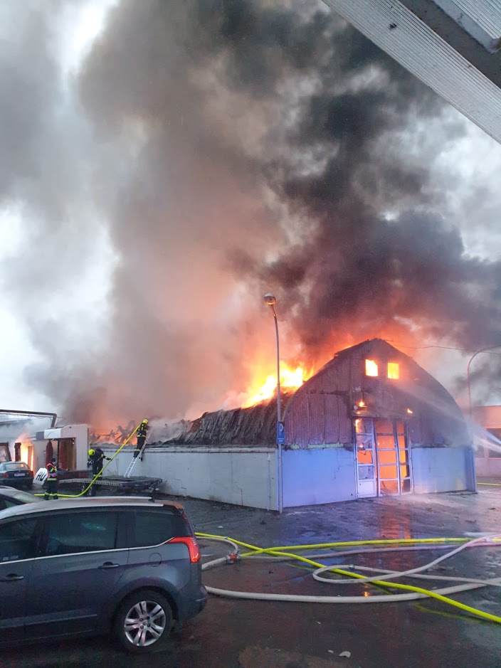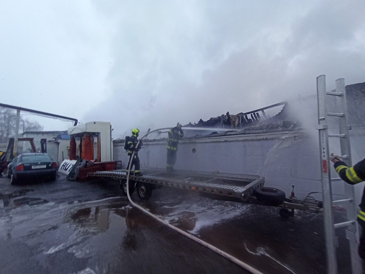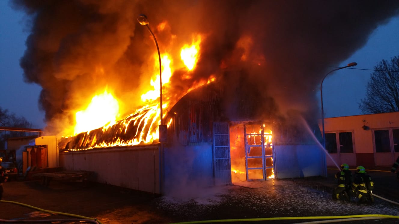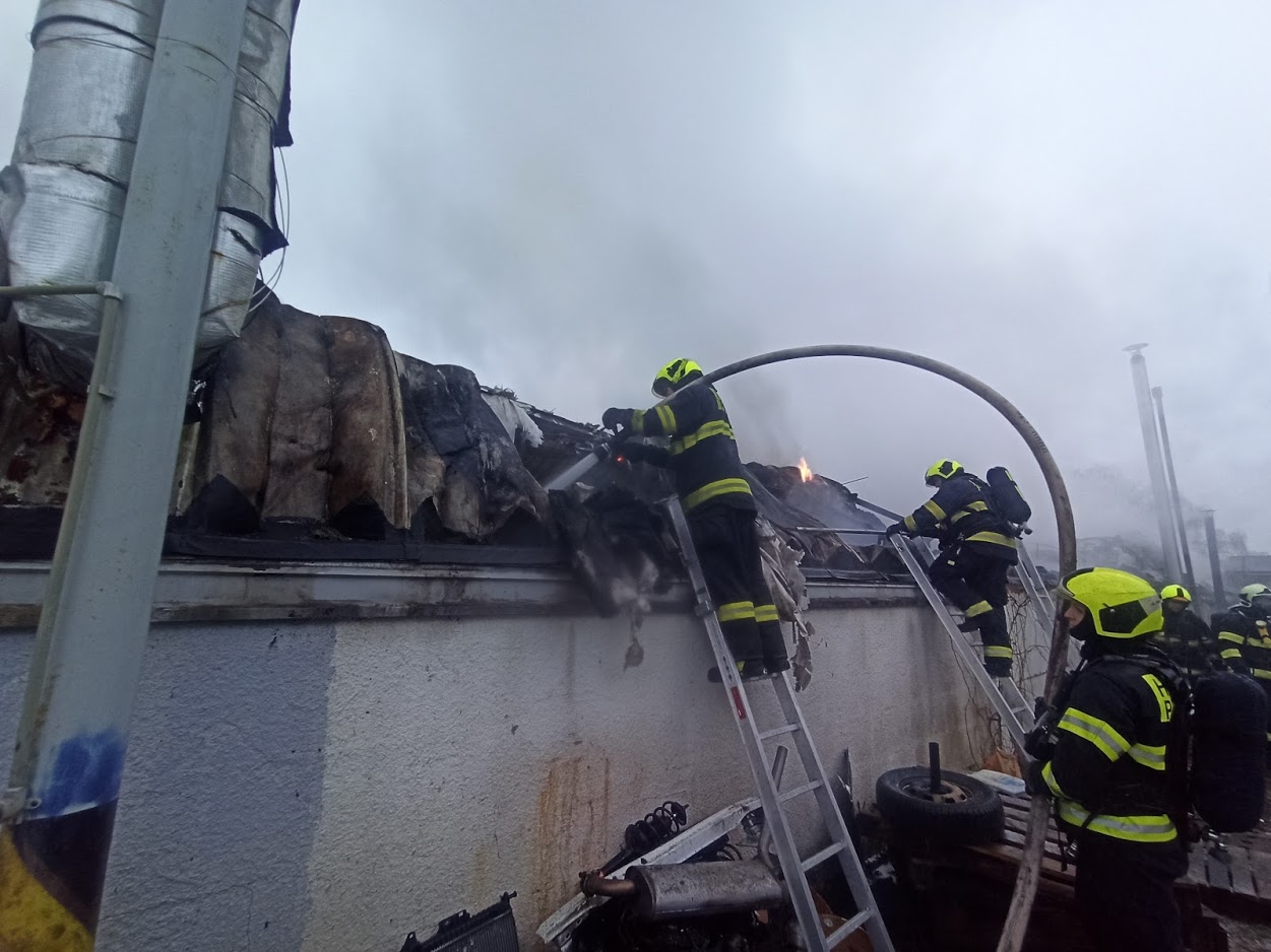 Video zde: Požár autoservisu v Čakovicích způsobil několikamilionovou škodu