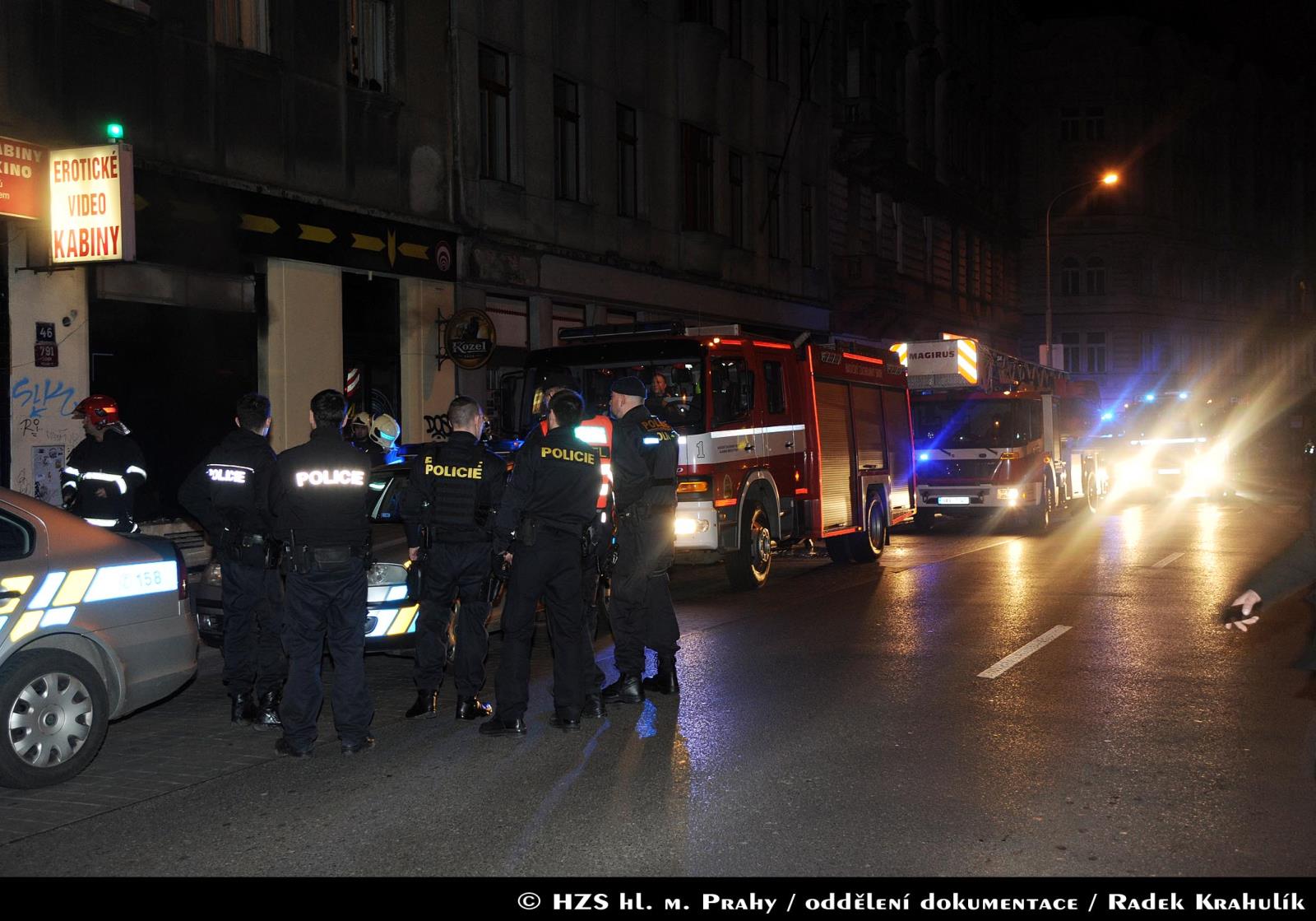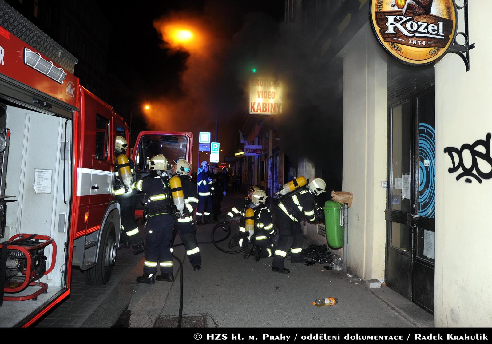 Krátce po 00:40 hodině byli hasiči přivoláni k hořícímu podniku v hustě obydlené části Prahy. Policie již před jejich příjezdem provedla evakuaci čtyřiceti osob z budovy, což zásadně přispělo k minimalizaci rizika zranění či horších následků. Současně se zásahovými jednotkami Pražských hasičů z centrální i holešovické stanice přijela i jednotka dobrovolných hasičů z Ďáblic, která pomohla s likvidací požáru.