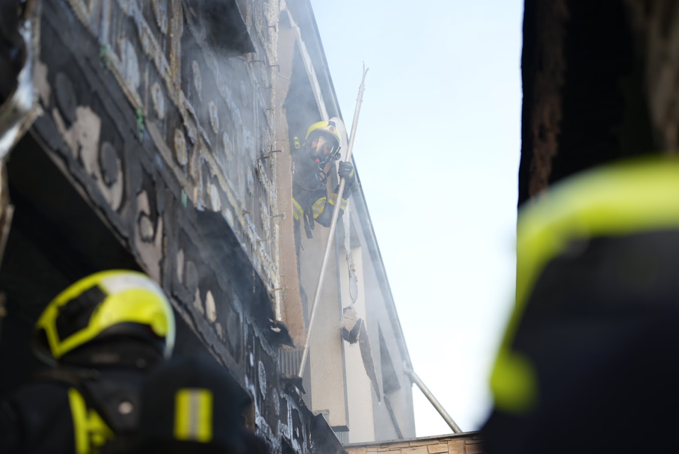Hasiči ze tří stanic okamžitě zahájili nebezpečný zásah. K likvidaci požáru nasadili výškovou techniku a vodní proudy zevnitř budovy. Celkem bylo z domu evakuováno patnáct osob, přičemž dvě z nich zachránil policista přímo z hořícího bytu ještě před příchodem hasičů, čímž jim doslova zachránil život.