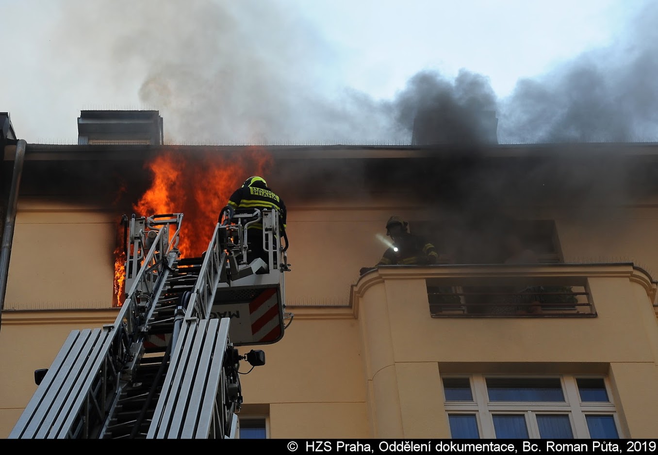 Dne 4.6.2019 v 19:16 hod operační středisko hasičů přijalo informaci o požáru bytu s ozývajícími se výbuchy v ul. U smaltovny v pražských Holešovicích. Operační důstojník na místo postupně vyslal jednotky z centrální, petřinské, holešovické a strašnické stanice a chemickou službu z Petřin. Po příjezdu na místo hasiči zjistili, že se jedná o rozvinutý požár bytu a začali se záchranou osob z objektu. Hašení probíhalo pomocí 2 C proudů a 1 tlakové vody po výškové technice. V 19:50 hod byl požár pod kontrolou.