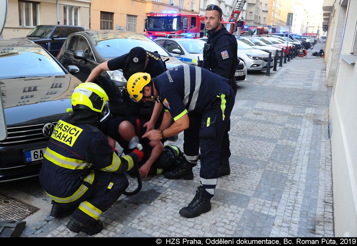 Při požáru bytu v pražských Holešovicích došlo k výbuchu, hasiči zachránili 45 osob