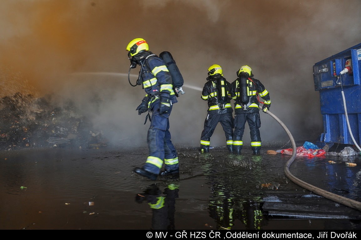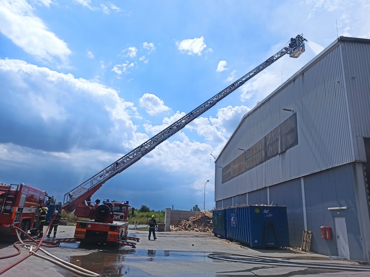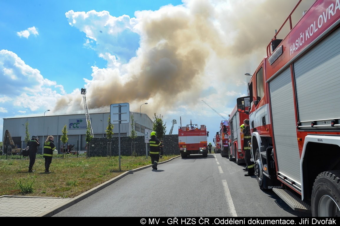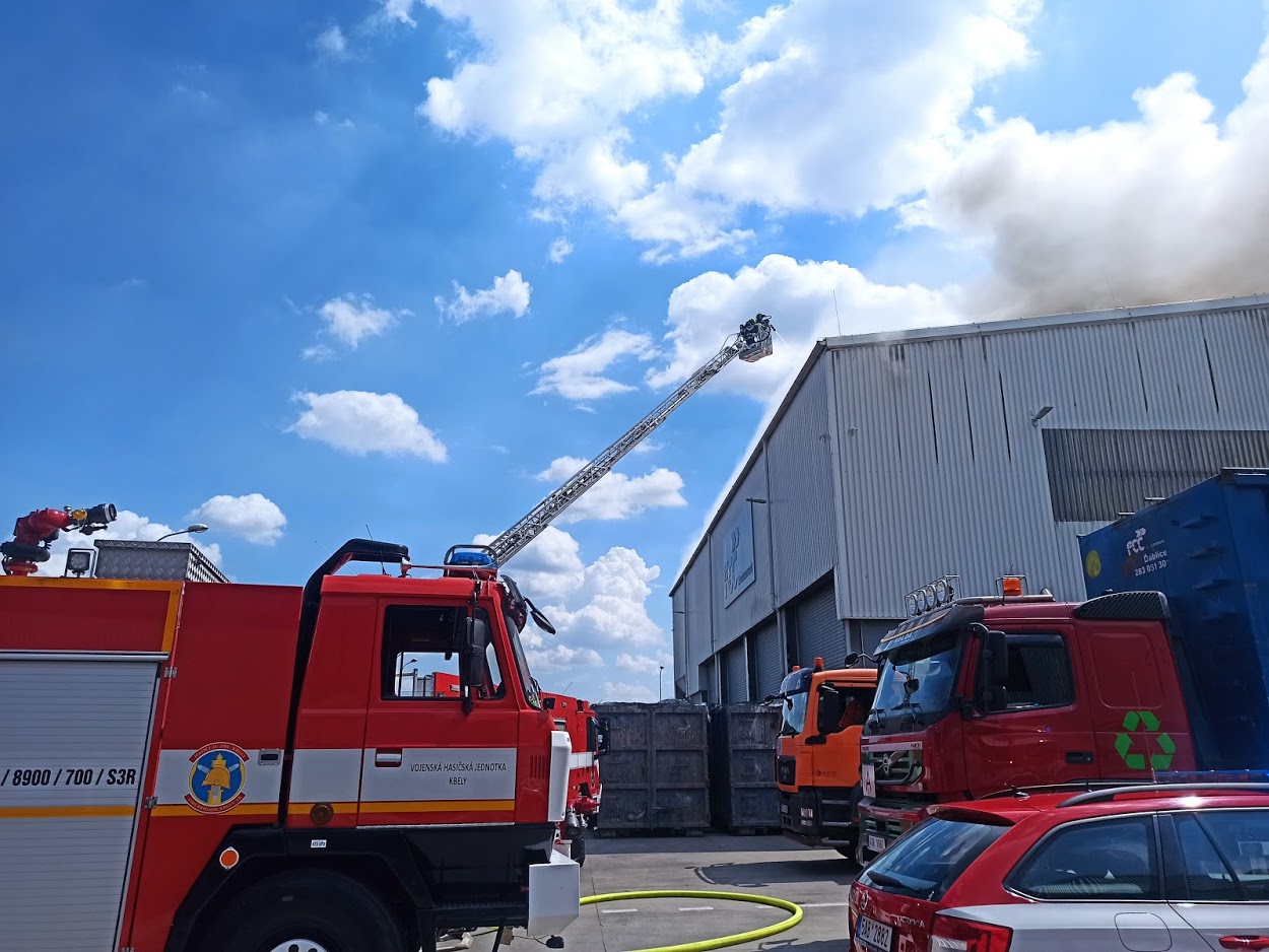 Osm profesionálních, patnáct dobrovolných a tři podnikové jednotky se postupně vystřídaly u požáru haly v ul. U Technoplynu v...
