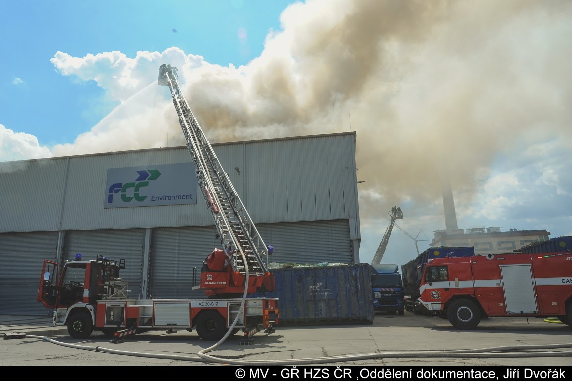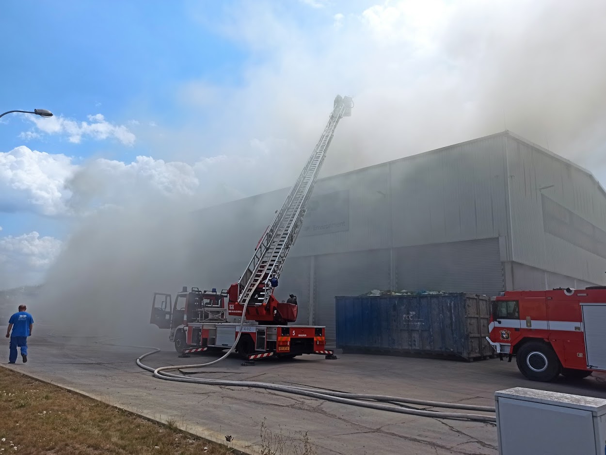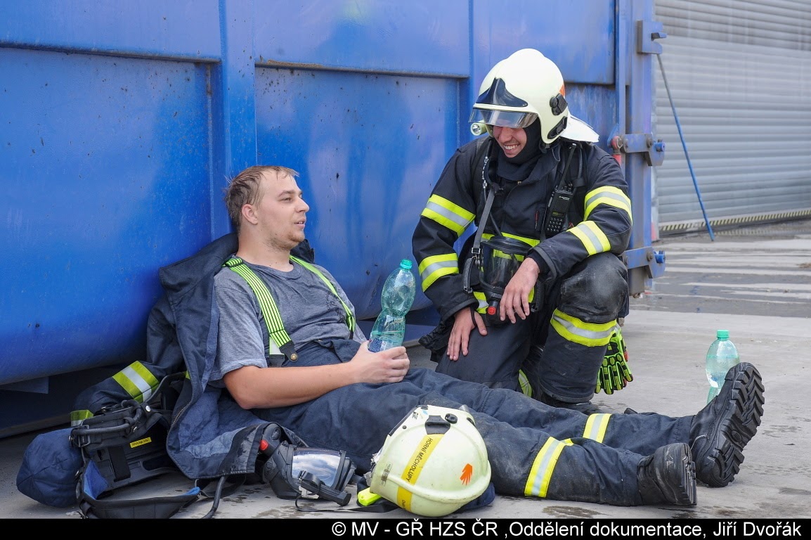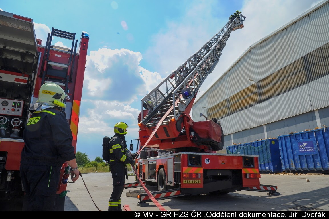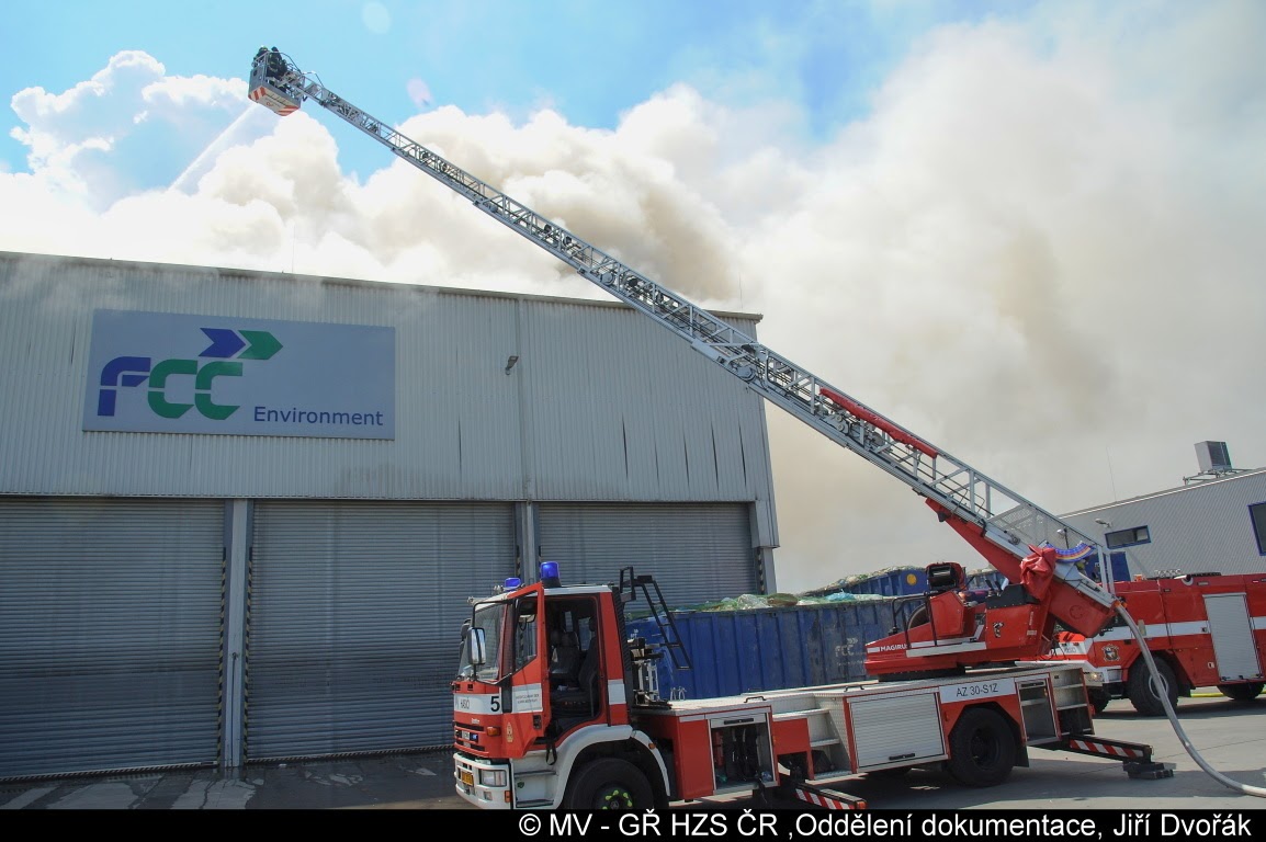 Osm profesionálních, patnáct dobrovolných a tři podnikové jednotky se postupně vystřídaly u požáru haly v ul. U Technoplynu v...