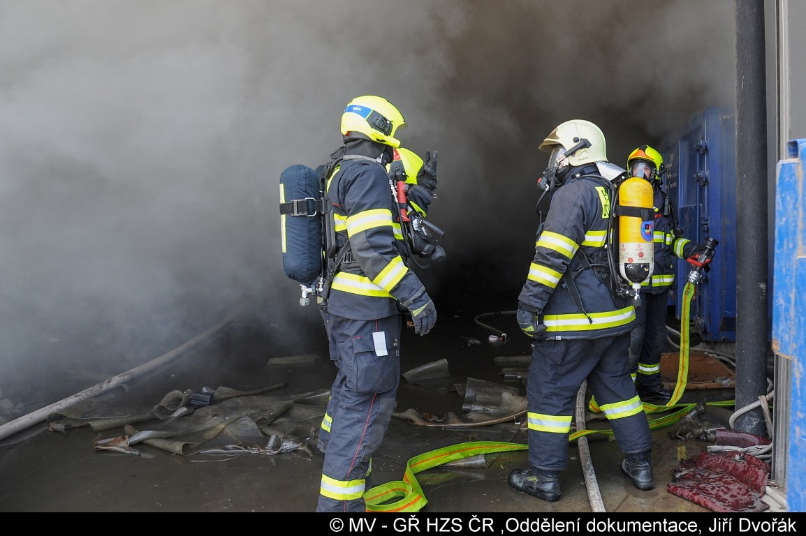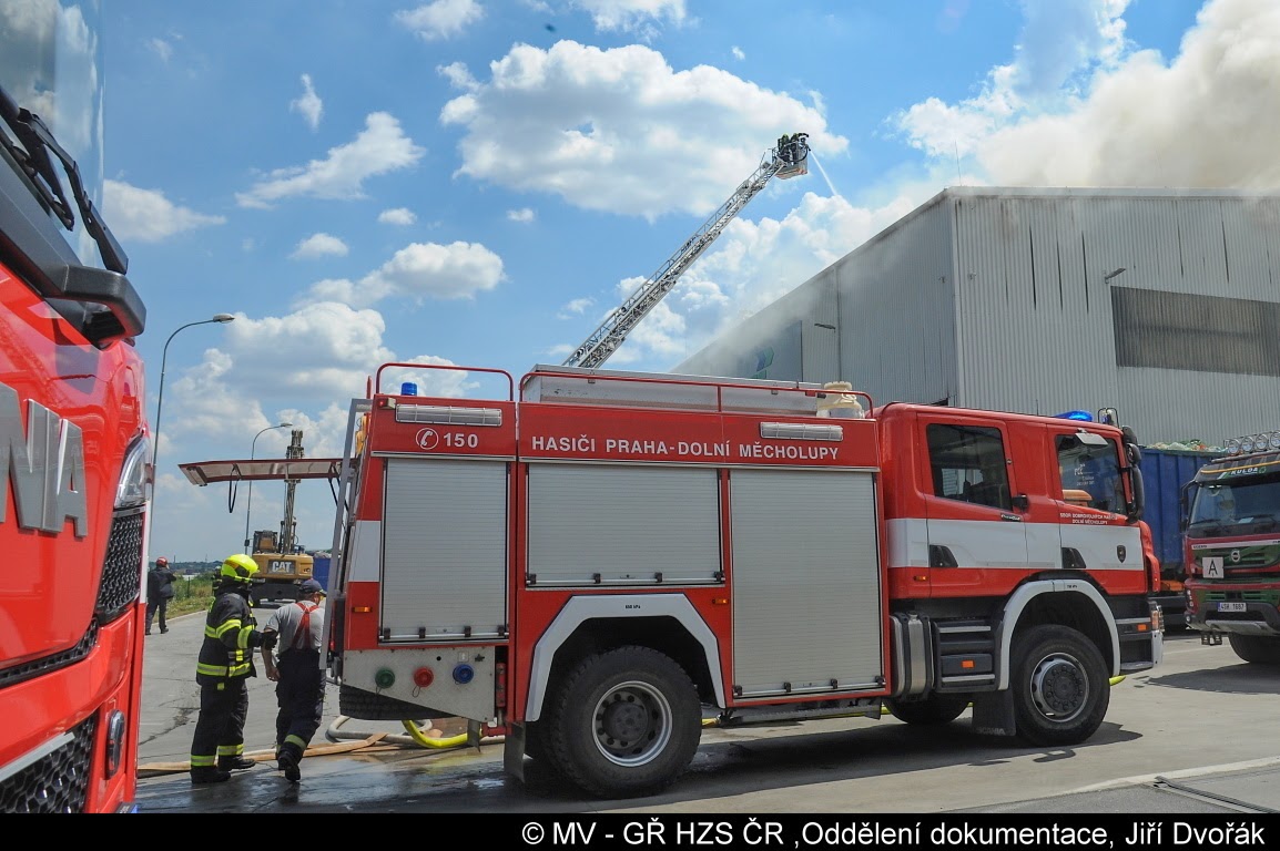 Při požáru haly v pražských Kyjích byl vyhlášen III. stupeň poplachu