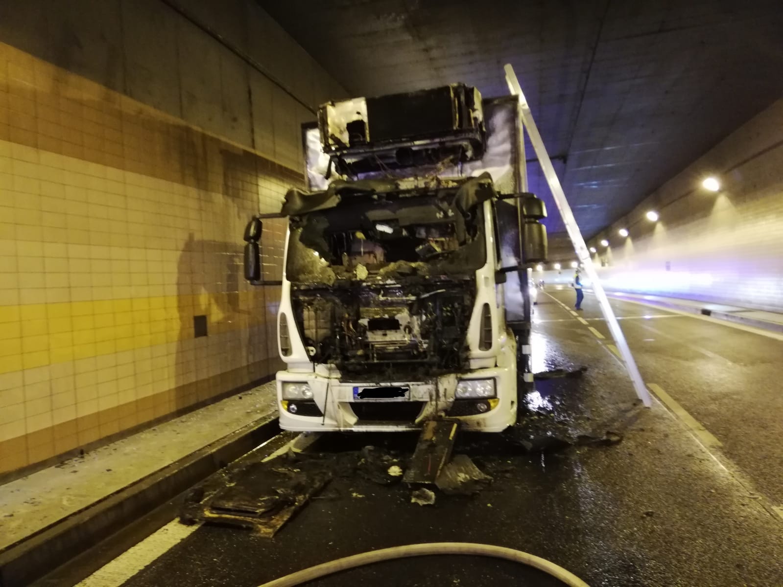 Požár byl lokalizován v 08:53 hodin, následovalo dohašování kabiny nákladního automobilu. Zplodiny hoření odvětral systém tunelu, který byl po dobu zásahu uzavřen v obou směrech. Řidič vozidla se nadýchal kouře a byl předán do péče přivolané ZZS. Hasičský vyšetřovatel odhadl škodu na 500.000 korun, příčinou byla technická závada. Hasiči z místa odjeli v 9:40 hodin.