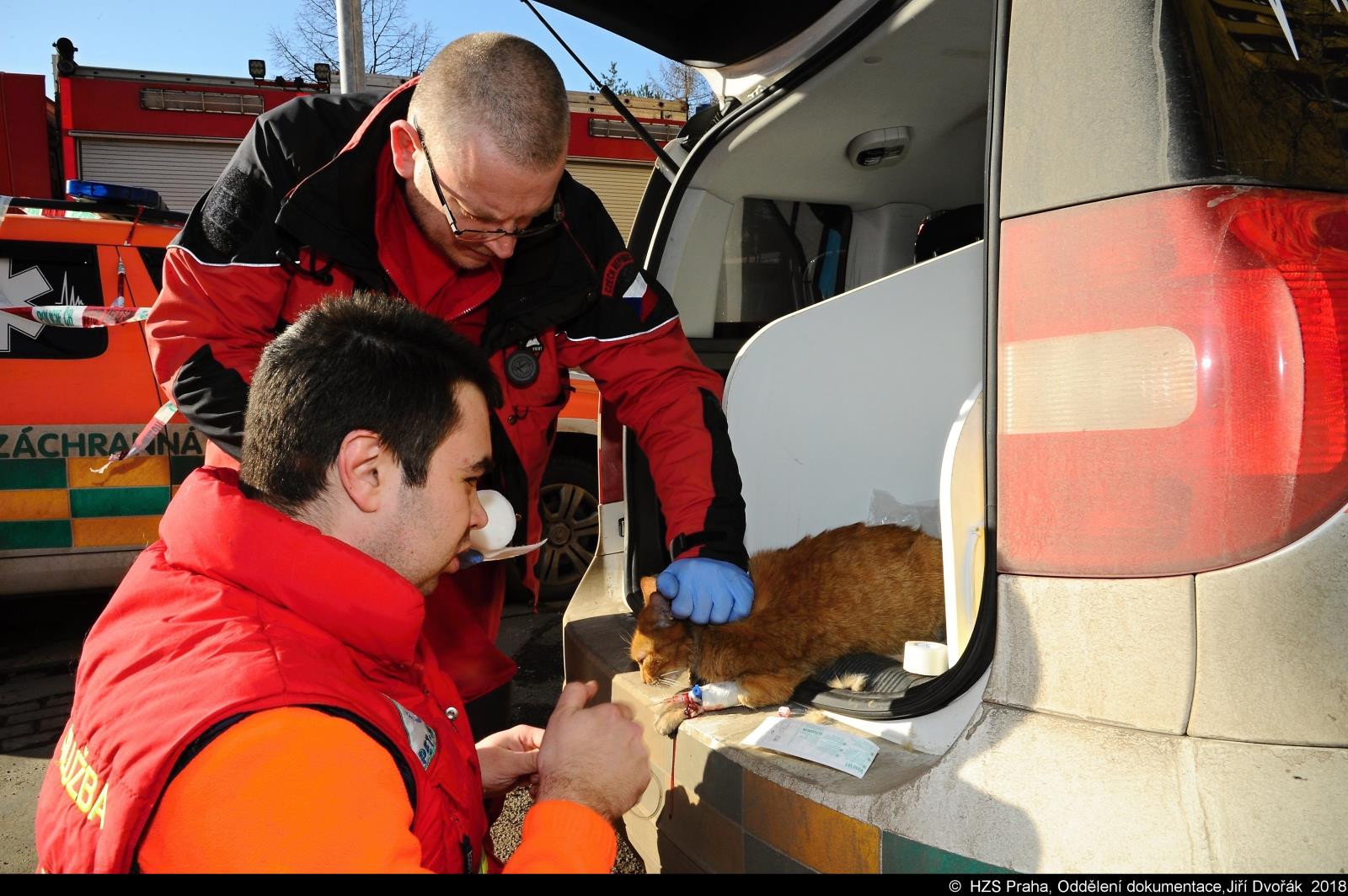 Při požáru v bytě v Praze 8 hasiči zachránili dvě dospělé osoby, dítě, dvě kočky a psa