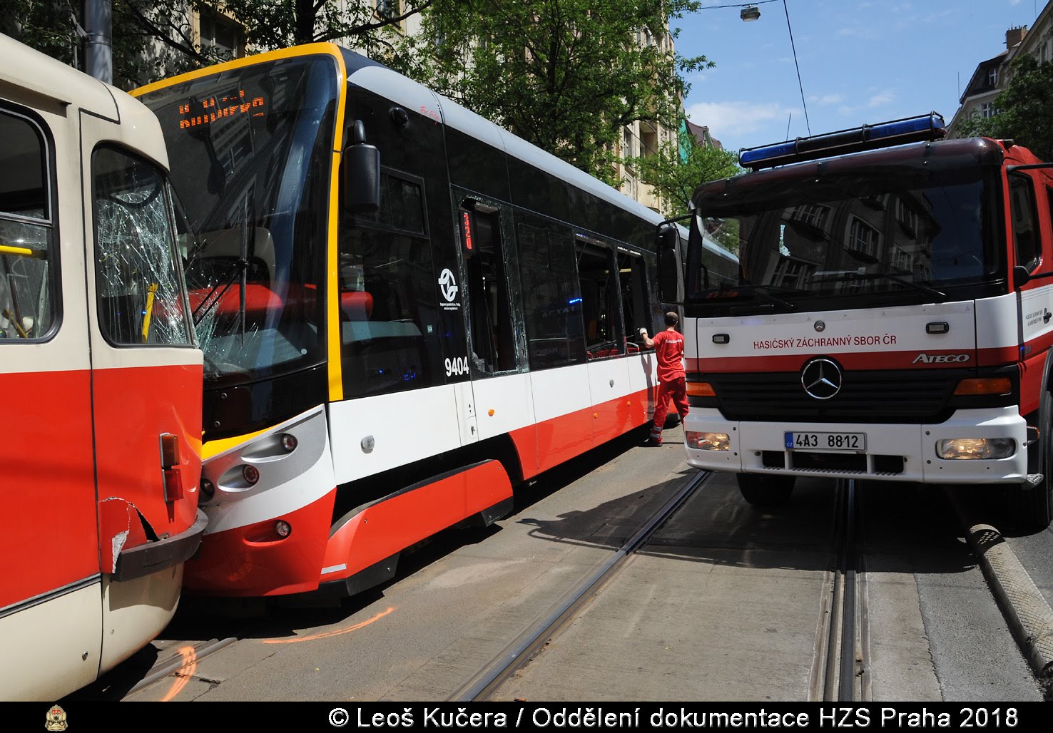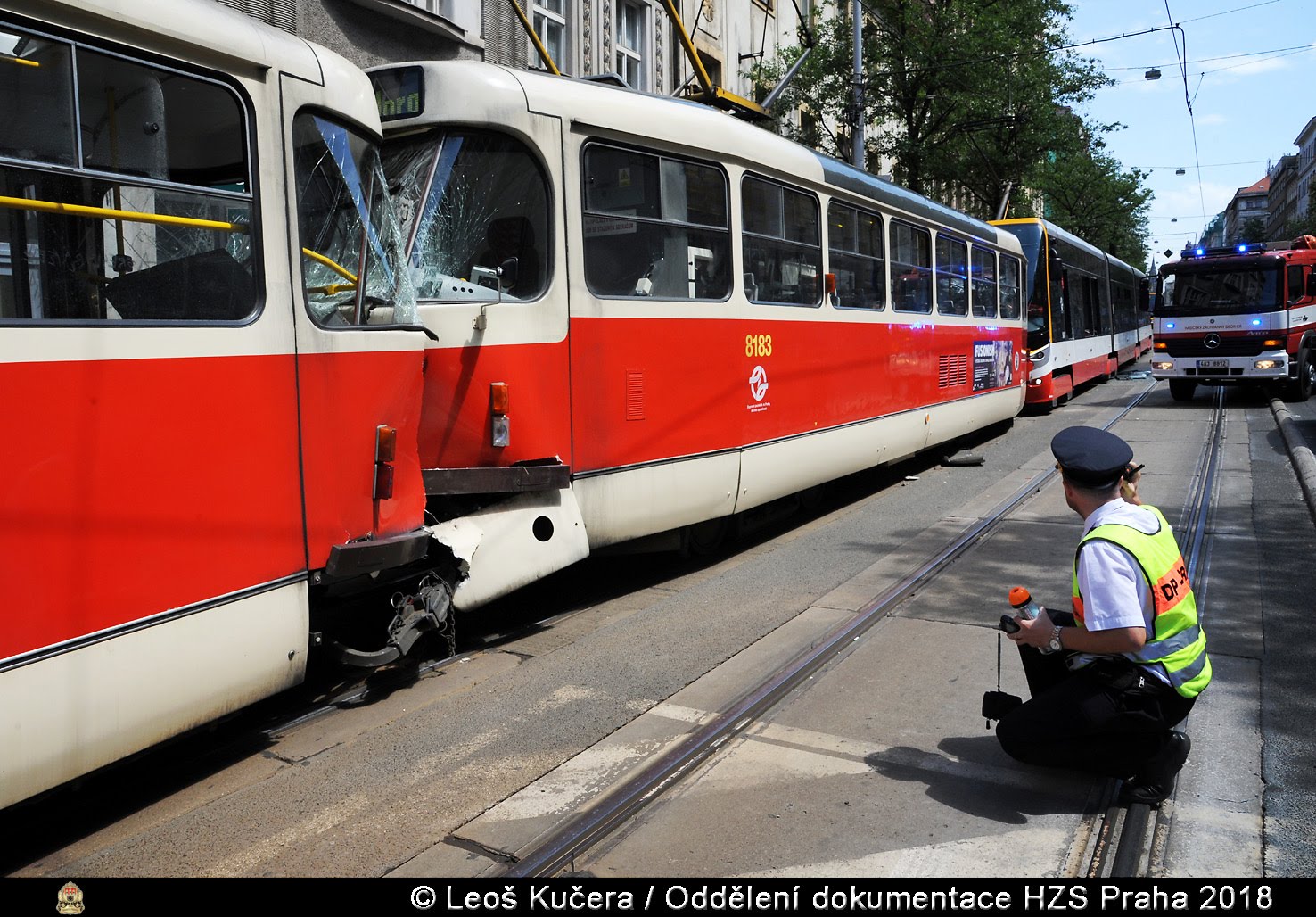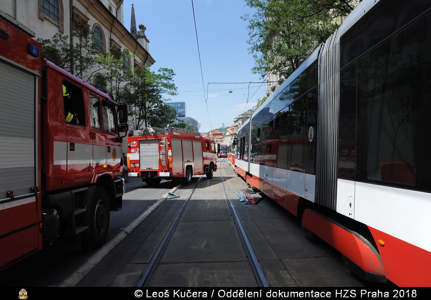 V pátek 29. června 2018 od 12:48 hodin zasahovala jednotka pražských hasičů z centrální stanice u srážky dvou tramvajových souprav v ulici Ječná v Praze 2.