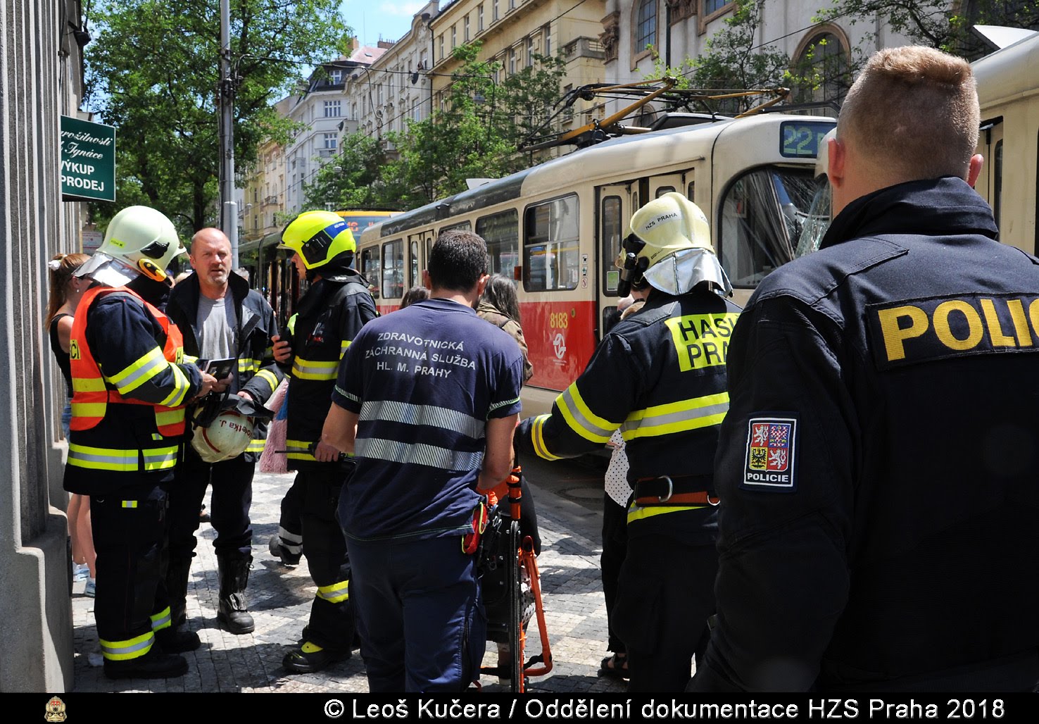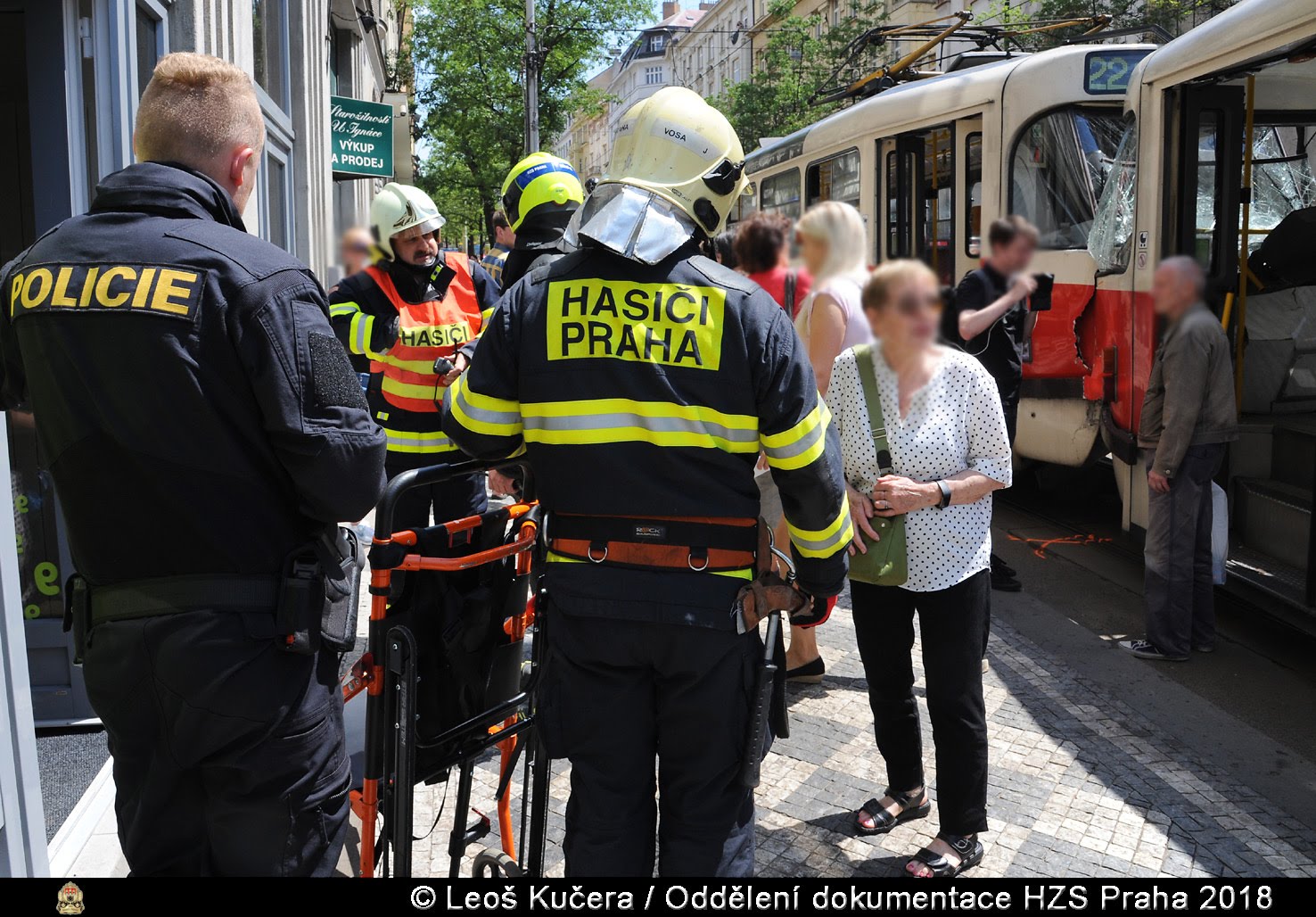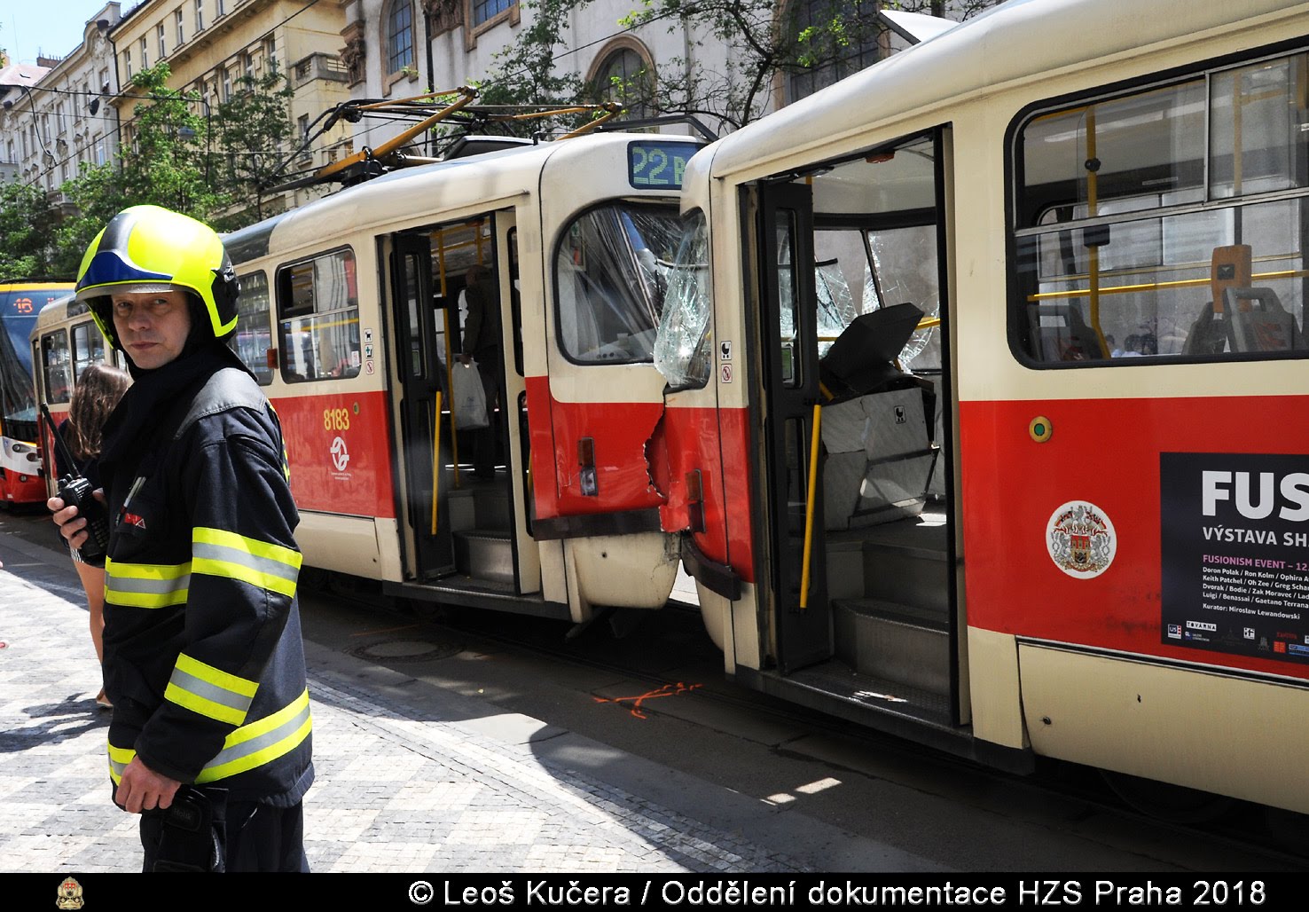 V pátek 29. června 2018 od 12:48 hodin zasahovala jednotka pražských hasičů z centrální stanice u srážky dvou tramvajových souprav v ulici Ječná v Praze 2.