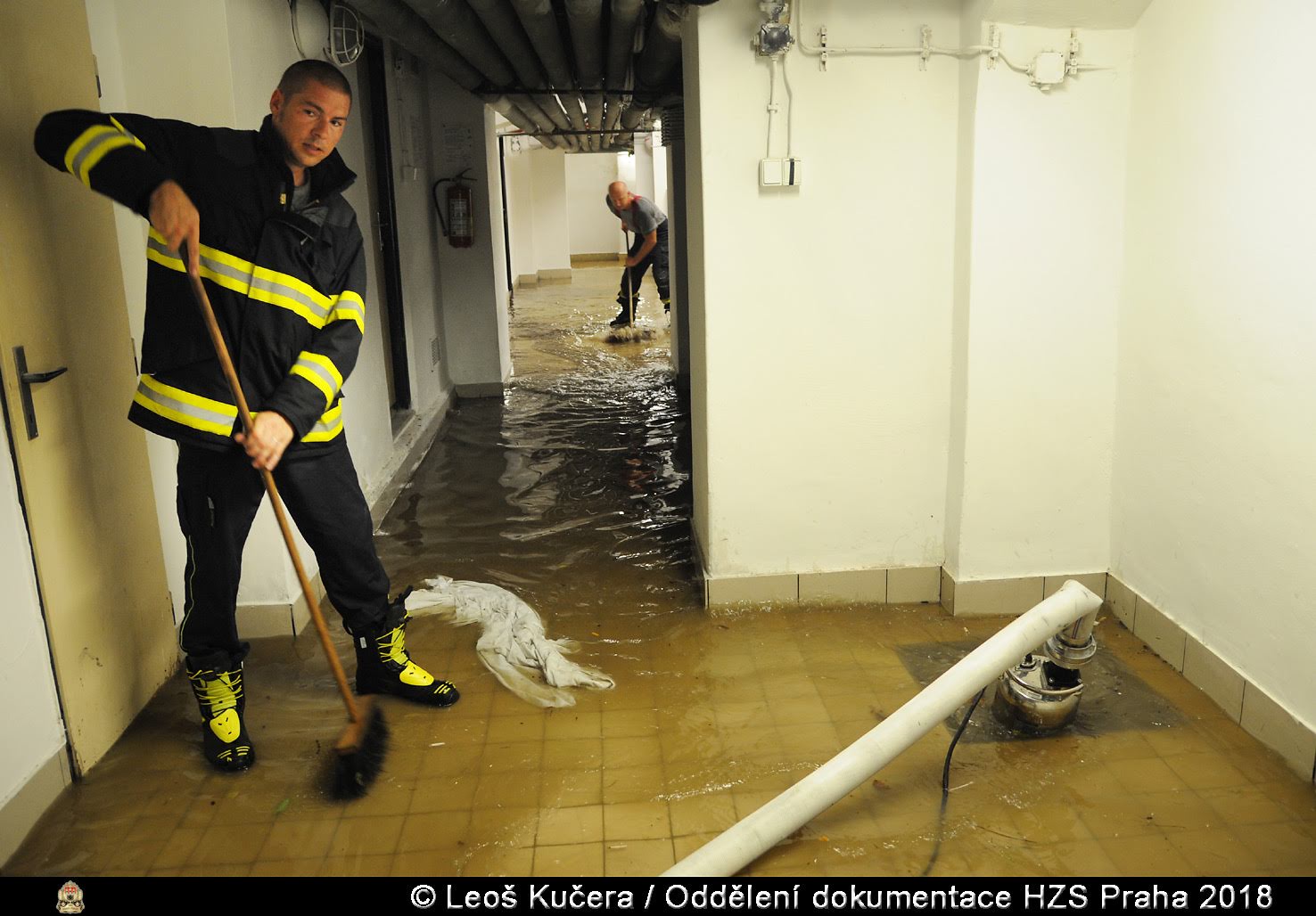 Někde voda dosáhla asi 10 centimetrů, někde však vystoupala až do výšky půl metru. Ještě v 21:20 hodin na místě zůstala jedna profesionálních a jedna dobrovolná jednotka. Byl nasazen i speciální kontejner z holešovické stanice, který je určen k čerpání vody.
