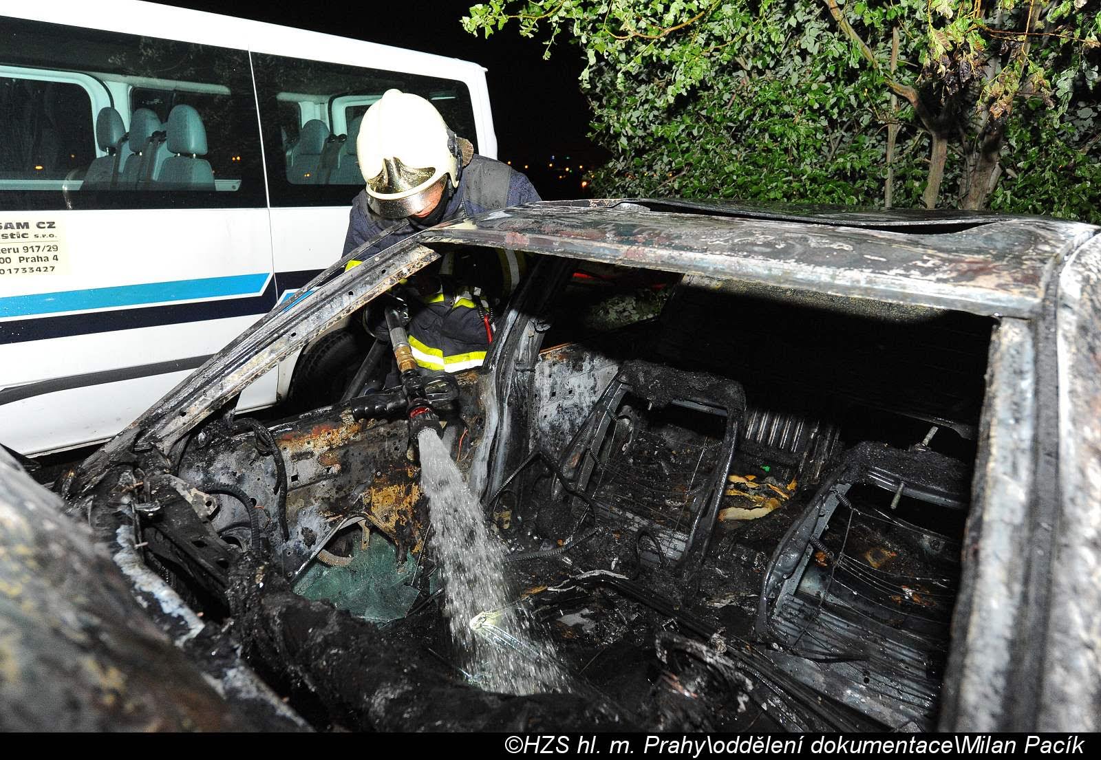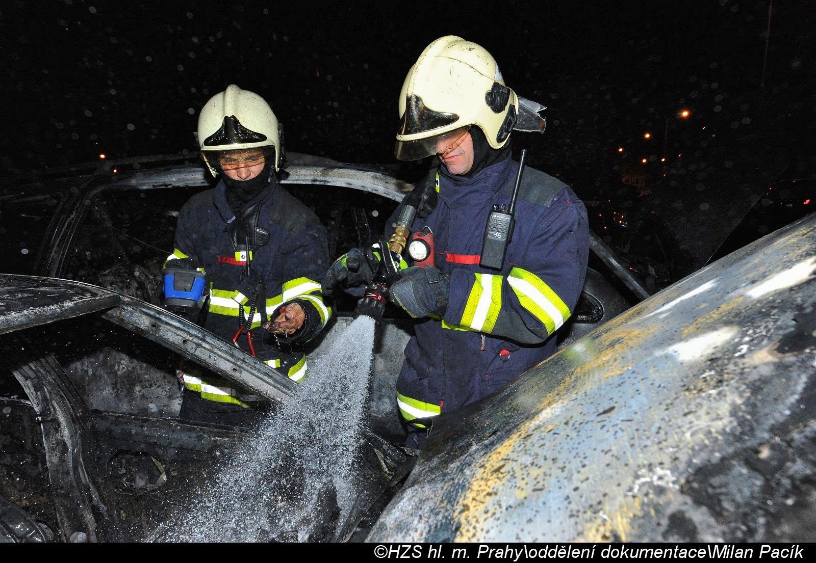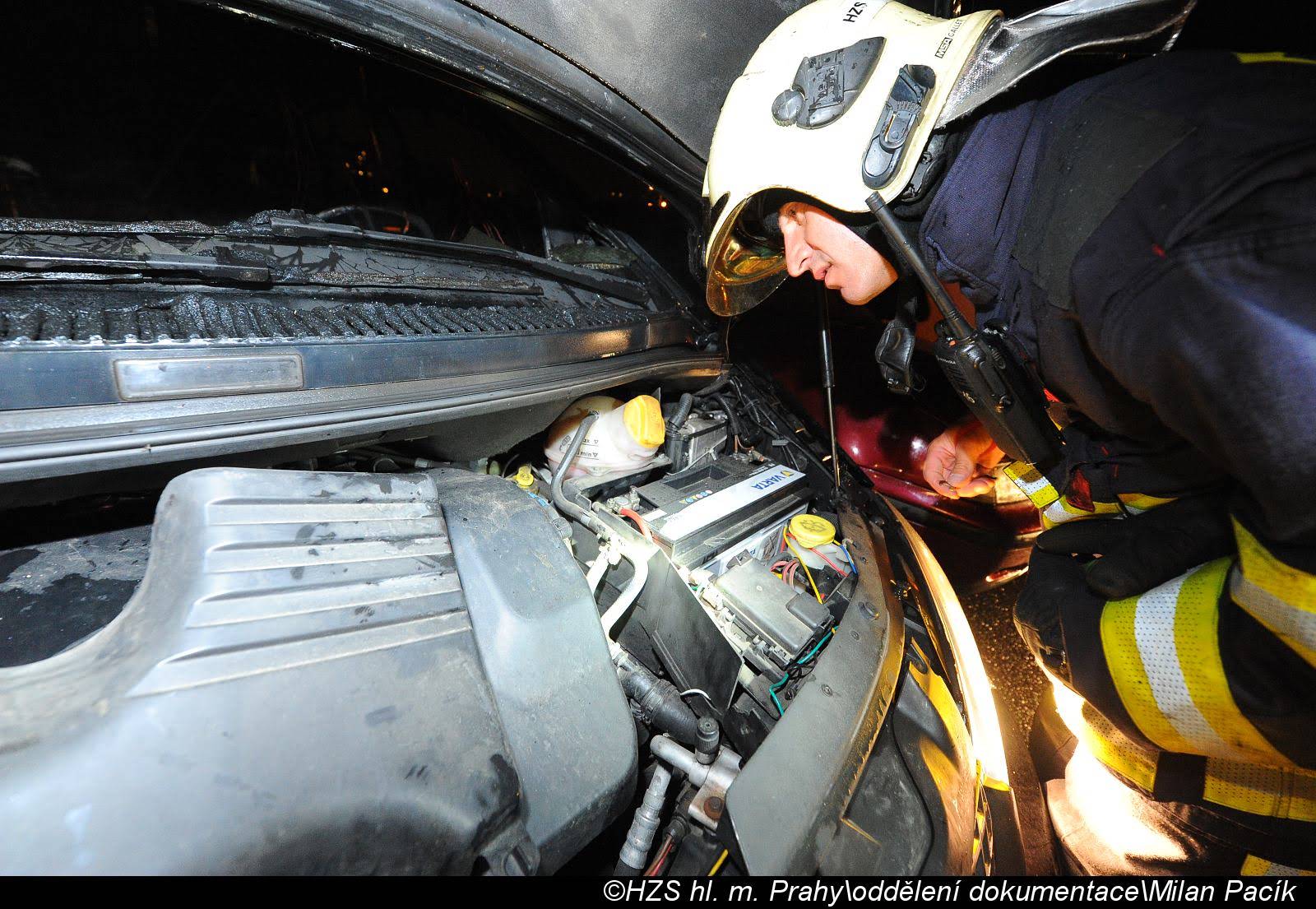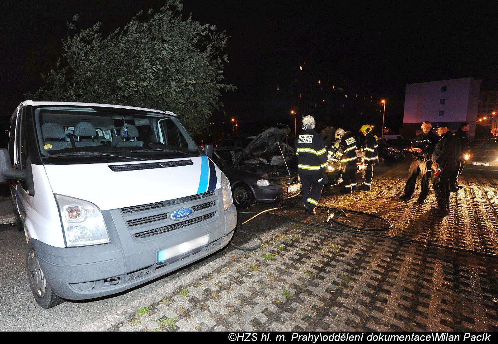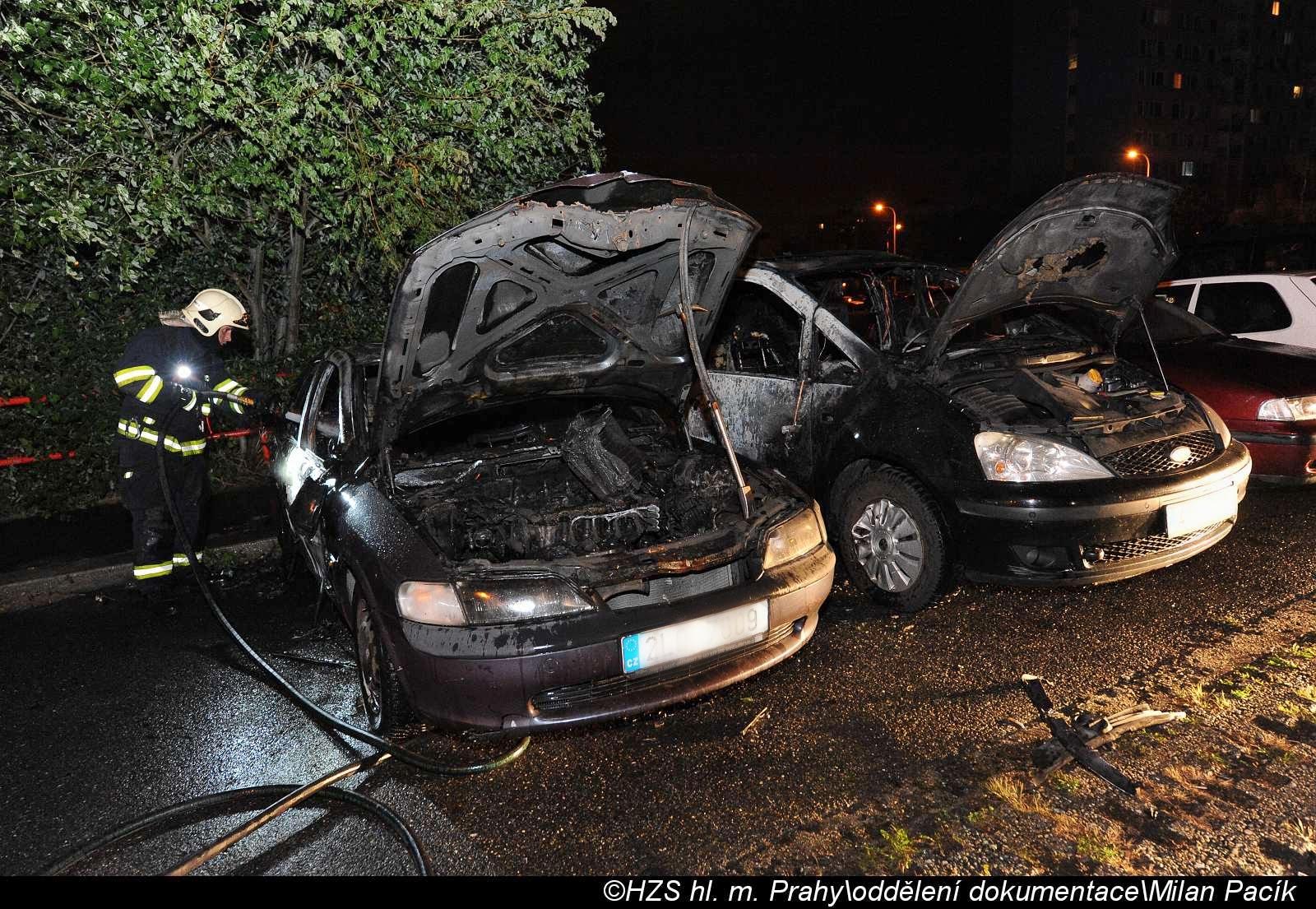 Půlnoční požár v Praze 11 poškodil čtyři vozidla.
