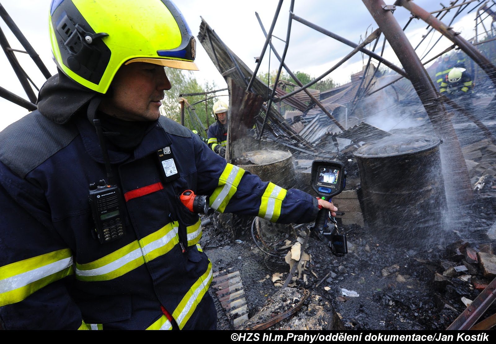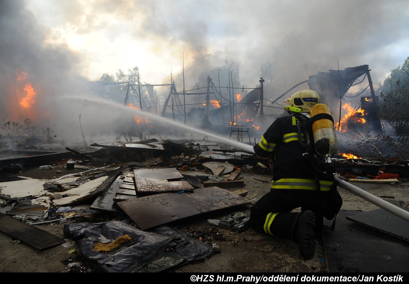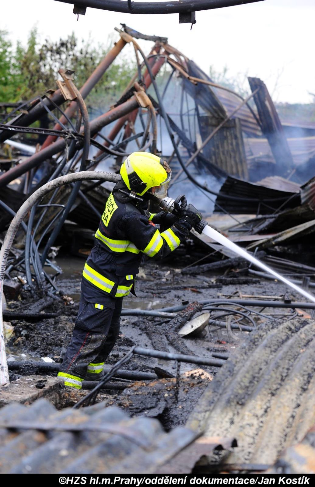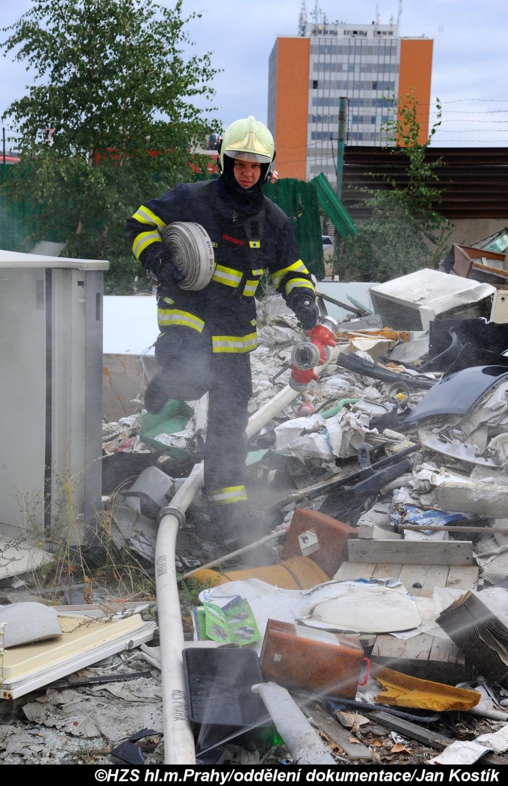 Chemici pražských hasičů prováděli měření nebezpečných látek v ovzduší s negativním výsledkem. Kontrolu nad požárem hasiči dostali 30 minut po 19. hodině.