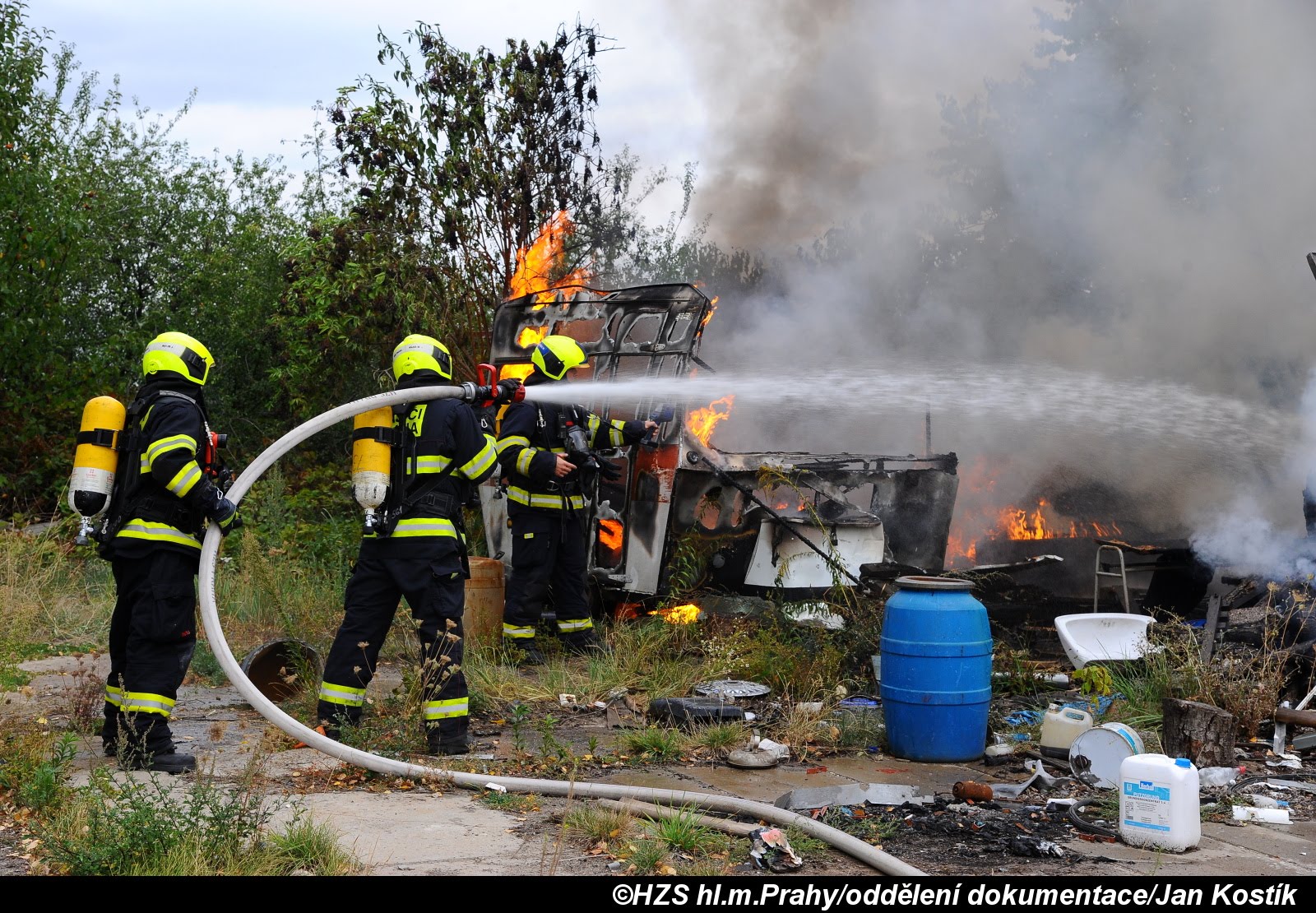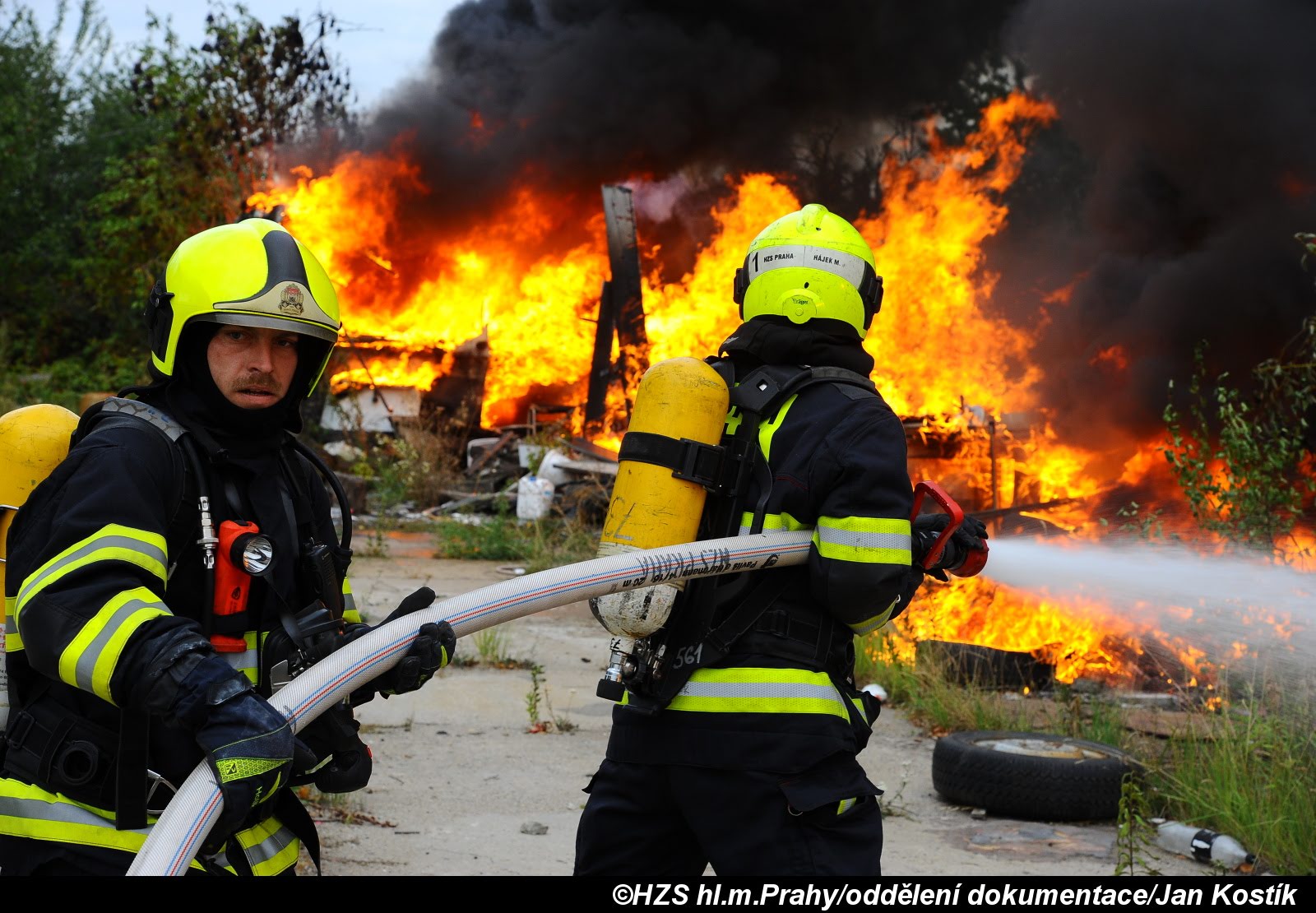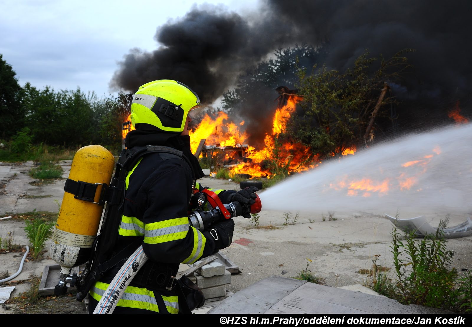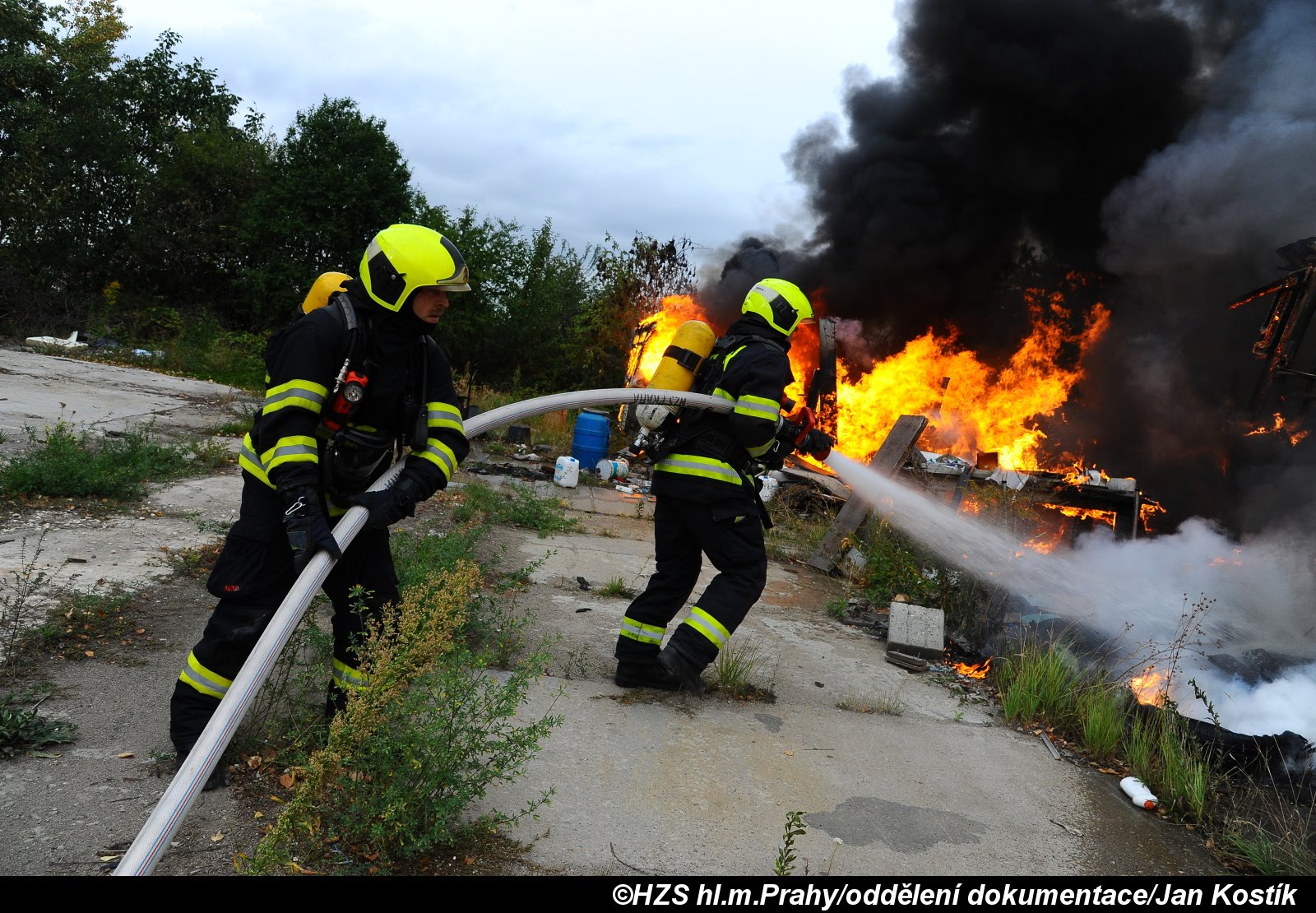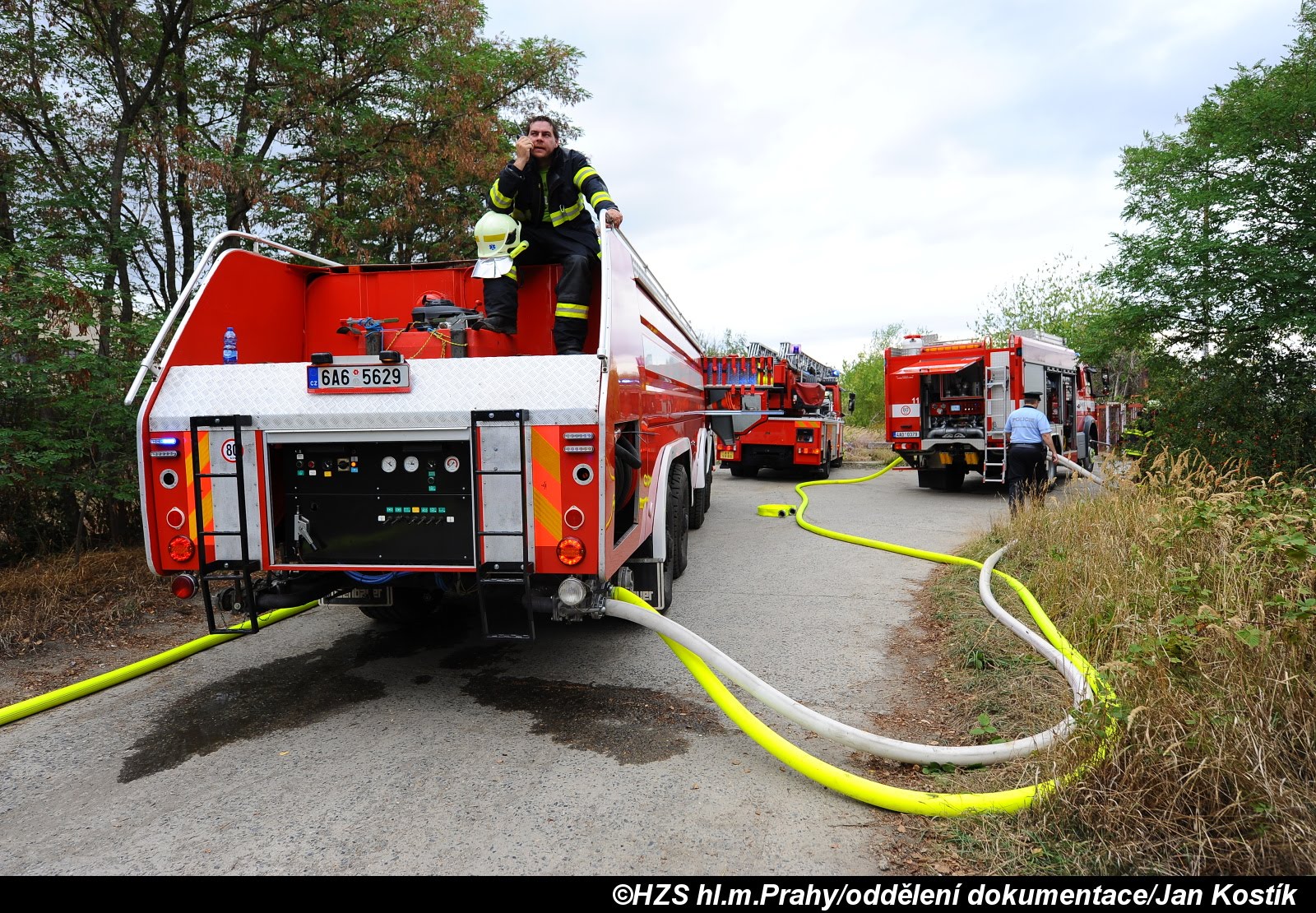 Šedesát hasičů z několika jednotek likvidovalo požár v pražských Kunraticích. VIDEO/FOTO