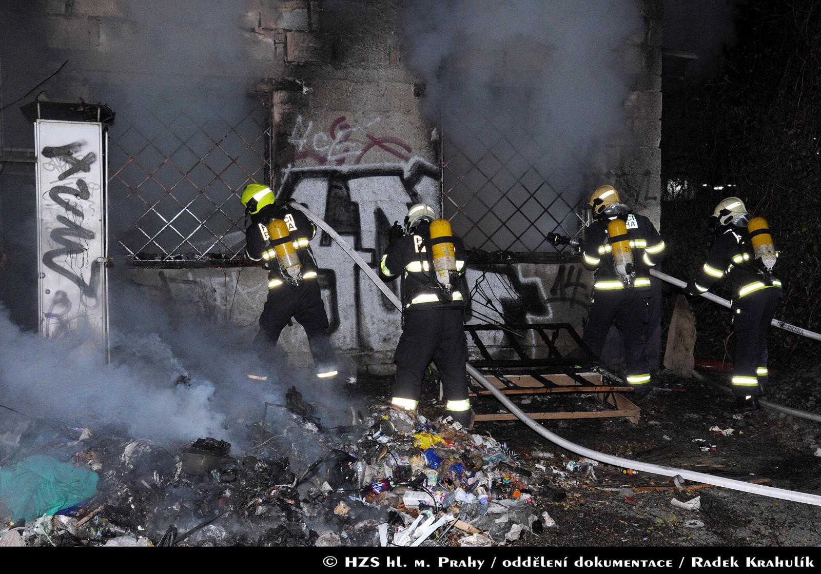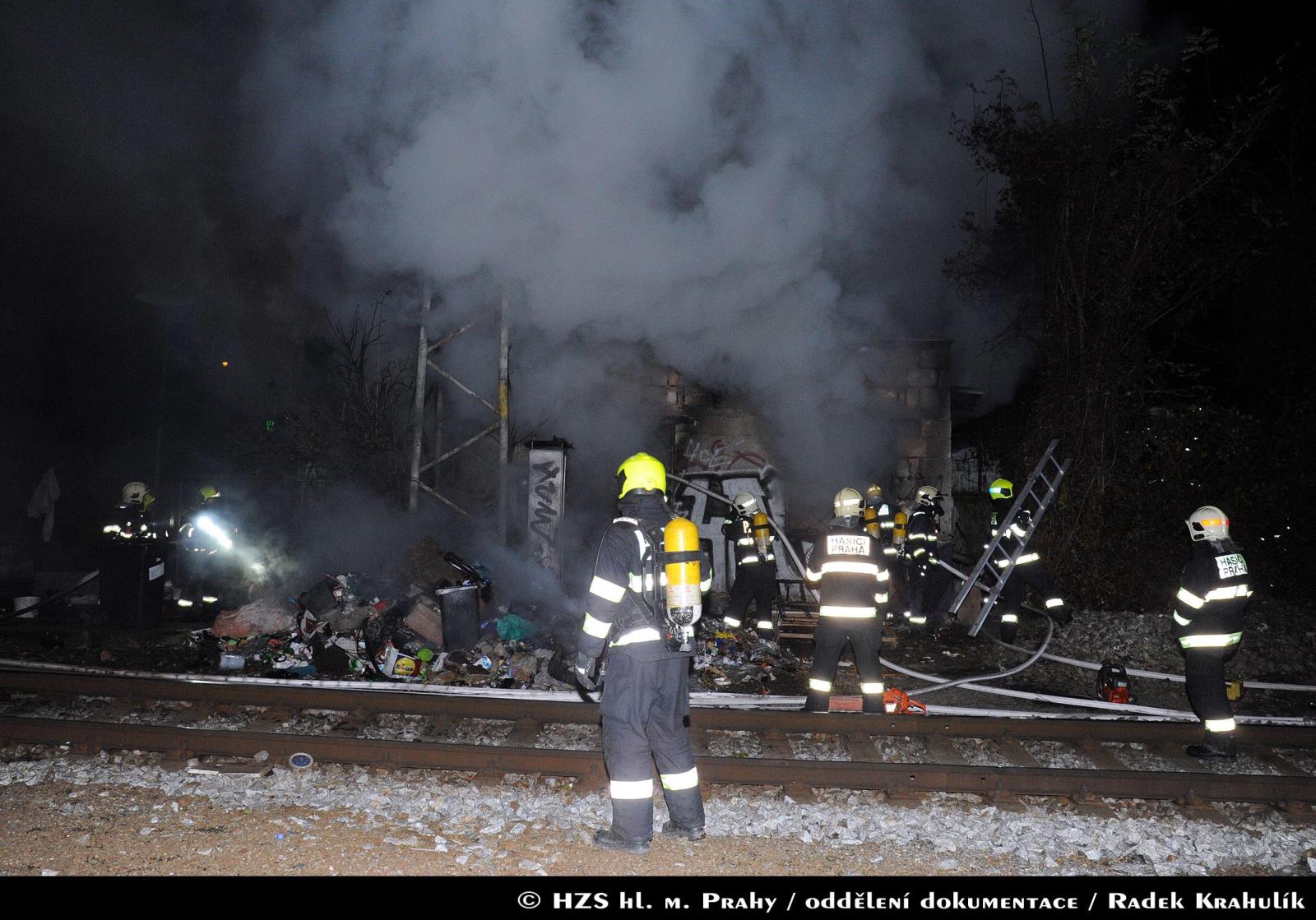 Dne 20.11.2017 od 20:46 hodin zasahovalo celkem šest jednotek pražských hasičů a jedna jednotka HZS SŽDC u požáru jednopodlažní, částečně devastované budovy u železniční tratě poblíž ulice Nad Slávií.