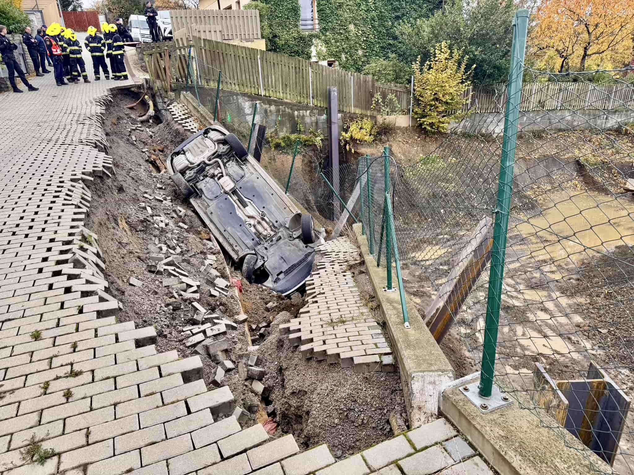 Sesuv svahu v ulici Ostřicová strhl auto do propasti