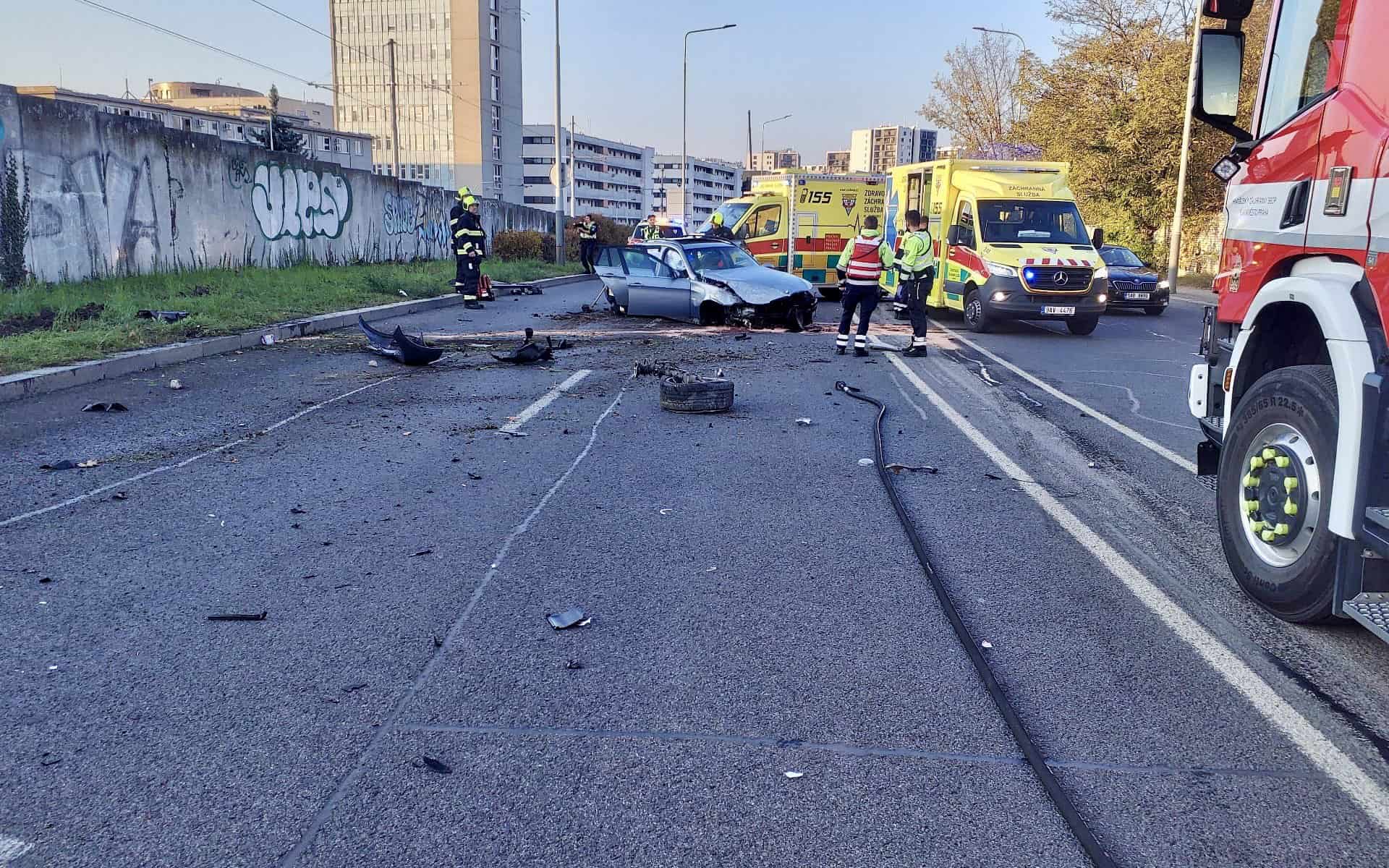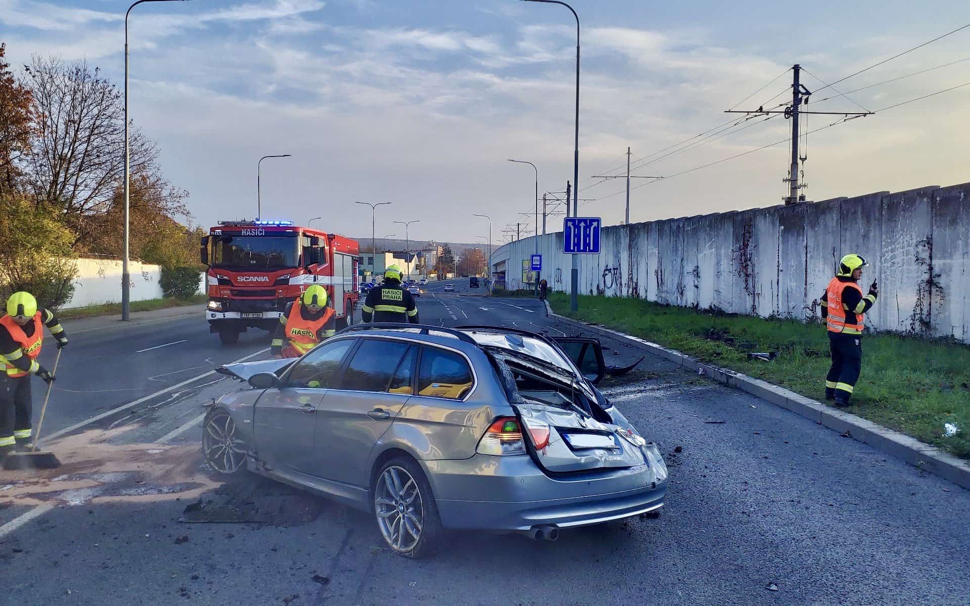 Silný náraz do zdi ochromil dopravu: Hasiči i záchranáři zasahovali u vážné nehody