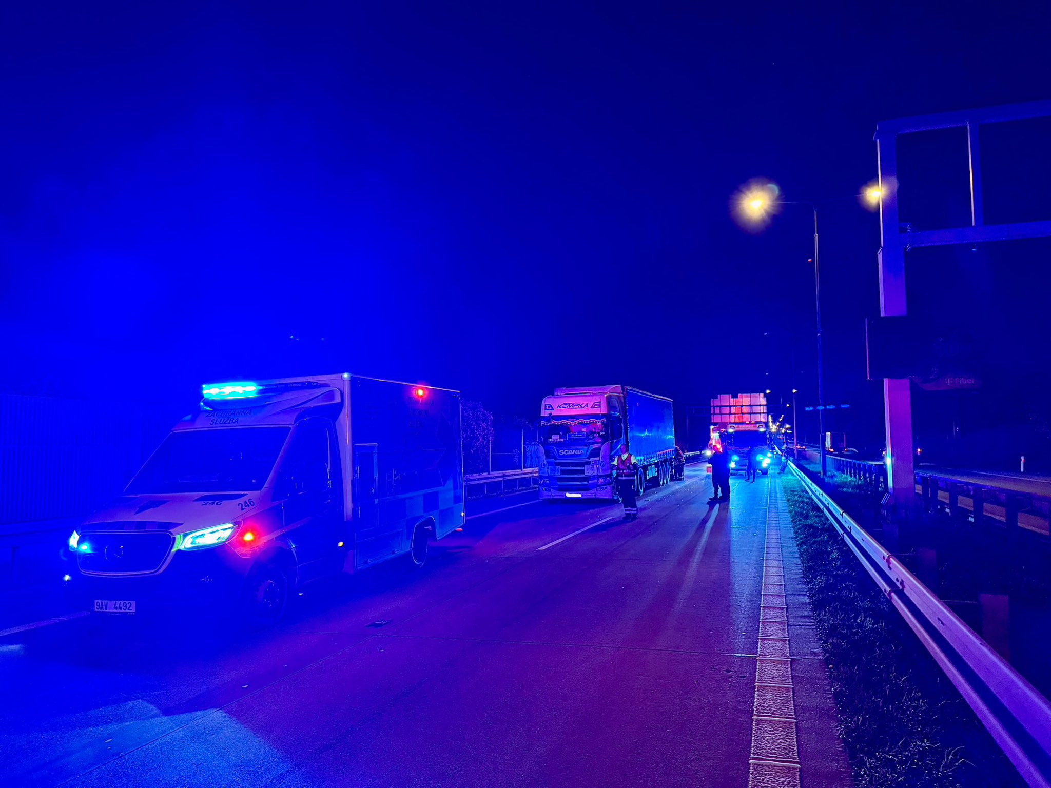 K vážné dopravní nehodě vyjeli v úterý 4. listopadu večer profesionální hasiči z pražských stanic Radotín a Smíchov. Na Pražském okruhu došlo ke střetu osobního automobilu s nákladním vozidlem. Podle zasahujících jednotek skončilo menší auto zaklíněné pod návěsem. Právě tento fakt komplikoval první minuty zásahu i následné vyprošťování.