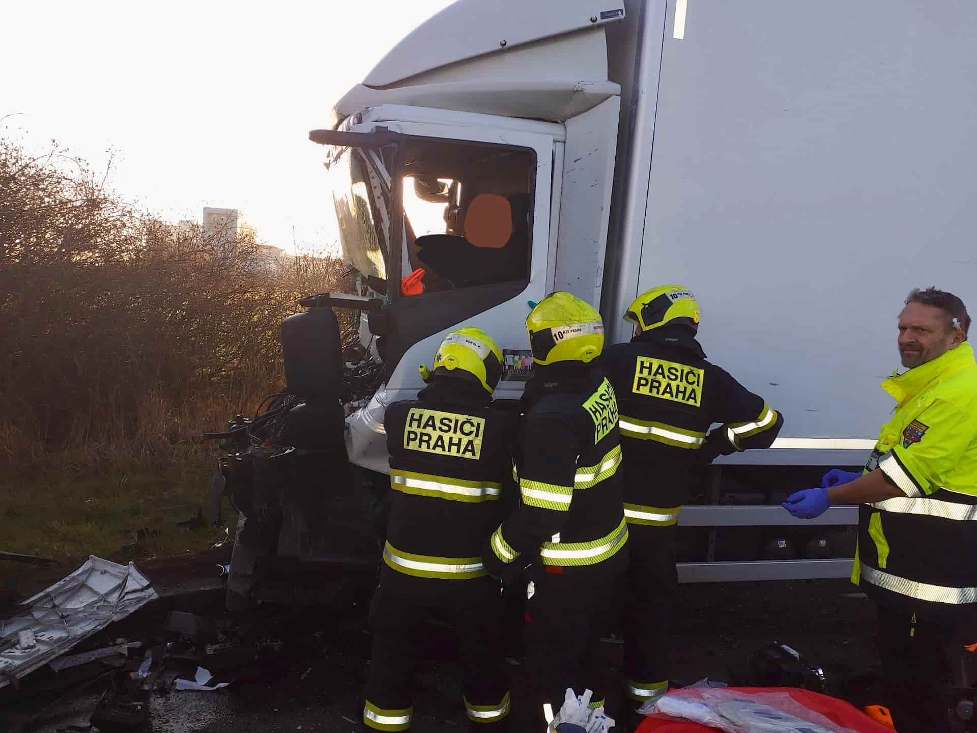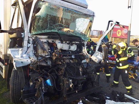 Srážka dvou nákladních vozidel zcela ochromila provoz na frekventované komunikaci a ohrozila zdraví jednoho z řidičů. Zásah složek Integrovaného záchranného systému byl nezbytný k jeho záchraně i k zajištění bezpečnosti v místě nehody.
