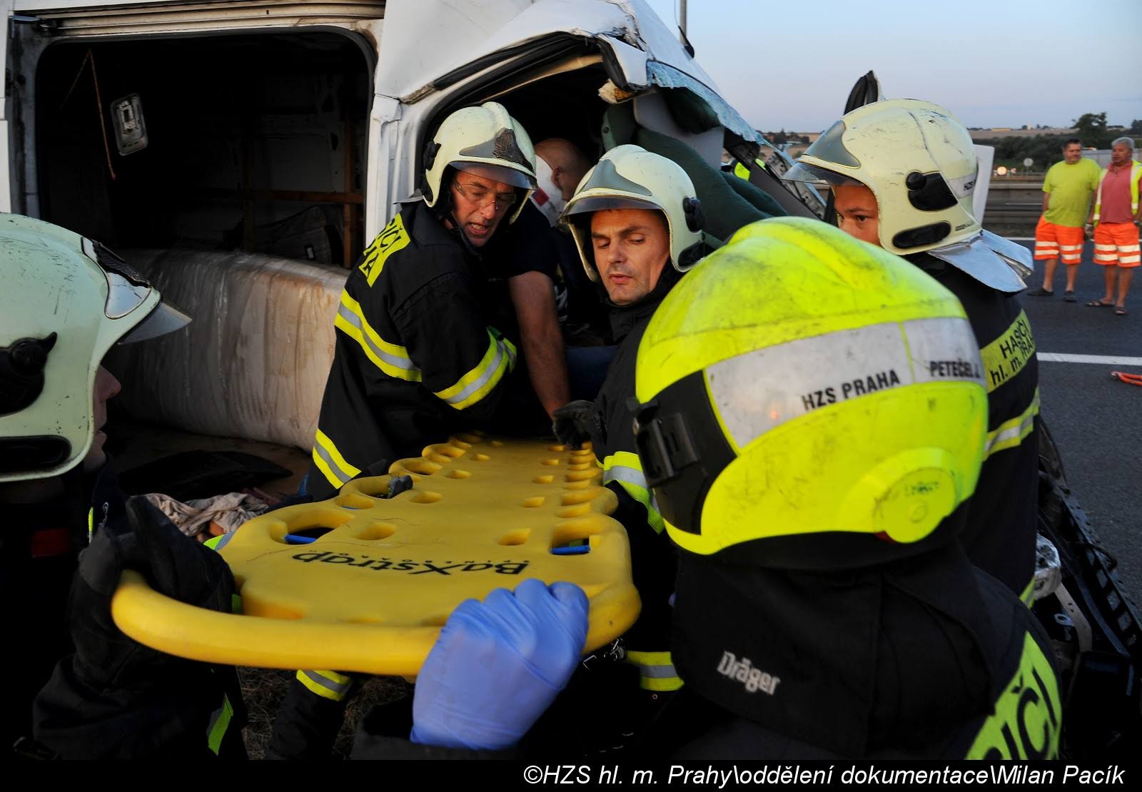 Dne 22. srpna 2018 zasahovaly dvě jednotky pražských hasičů z radotínské a smíchovské stanice u nehody kamionu a dodávky na Pražském...