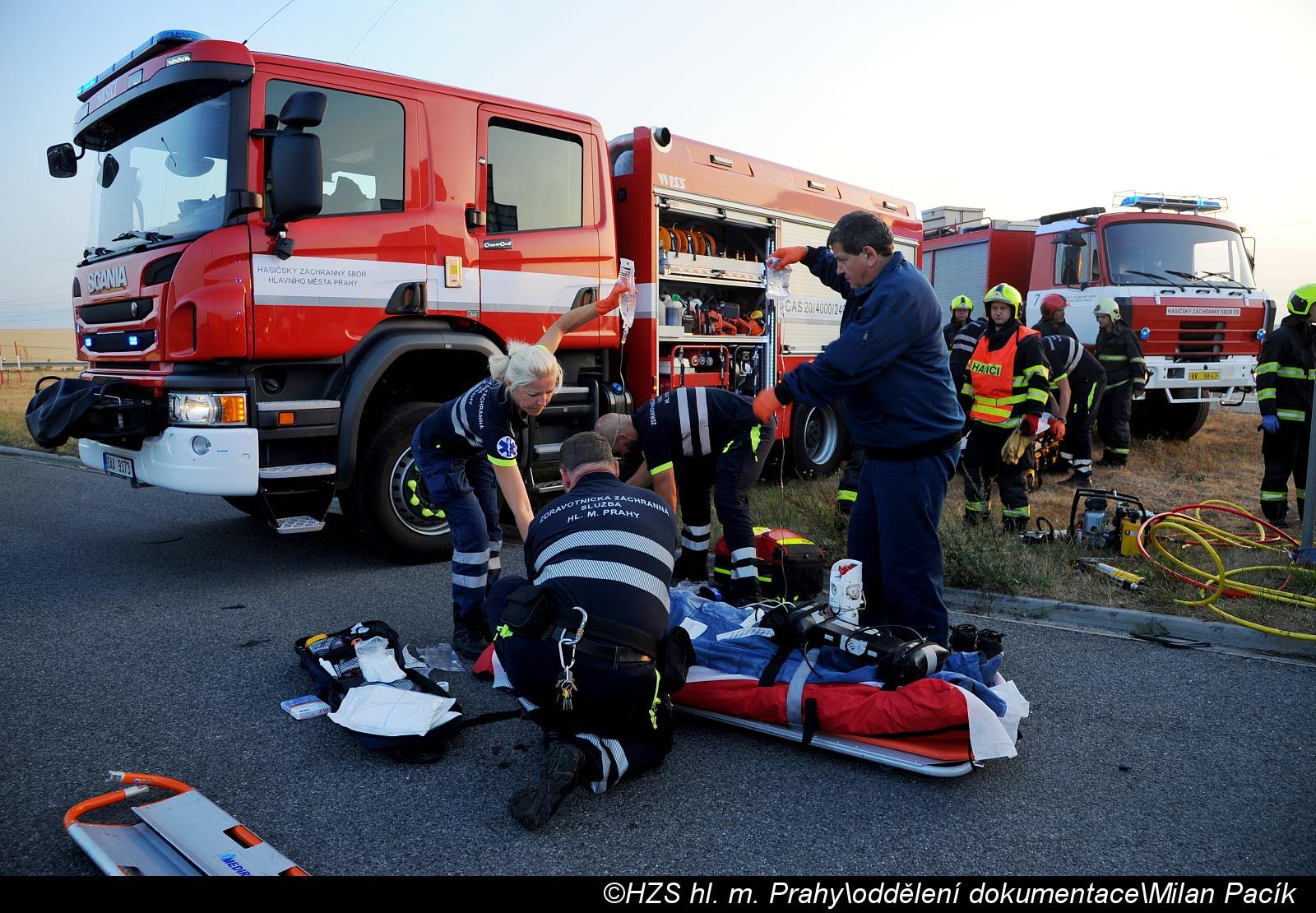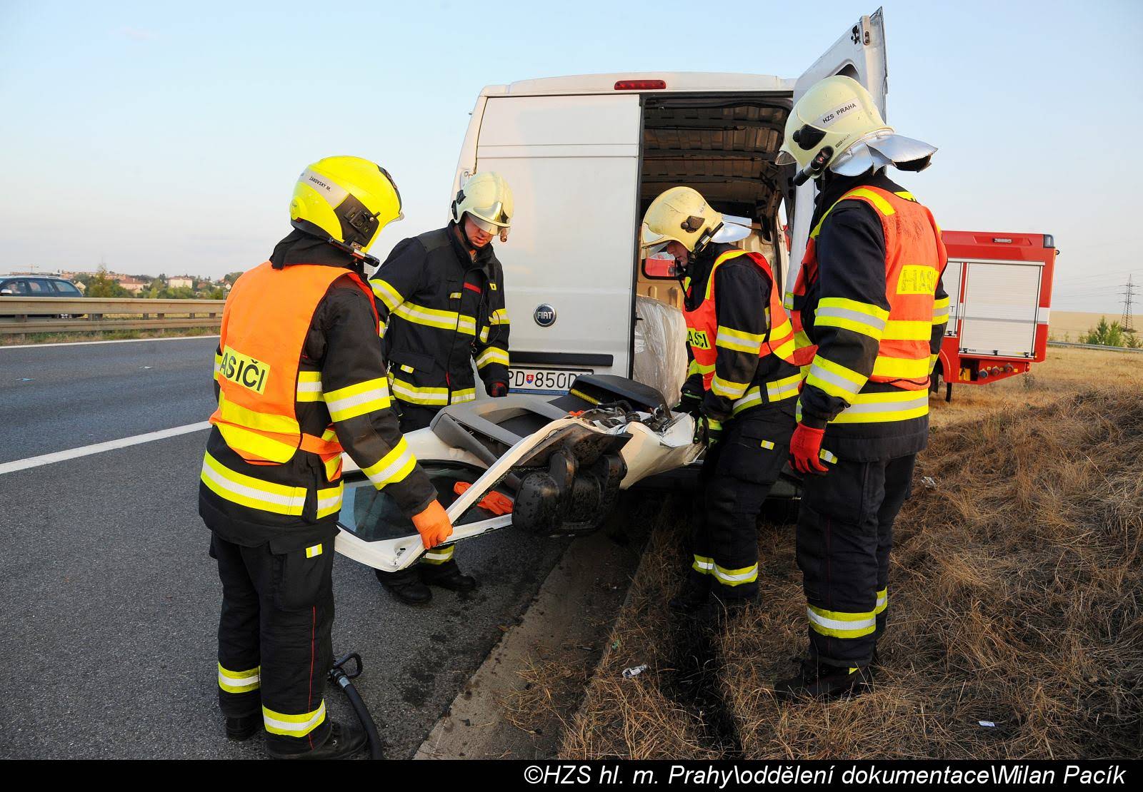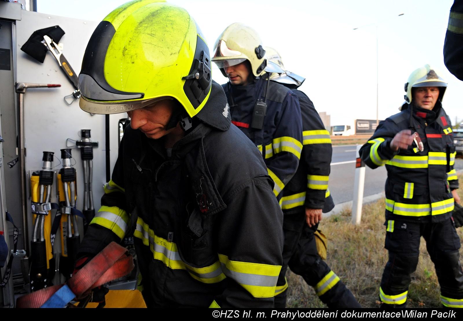 U nehody na Pražském okruhu hasiči vyprostili dvě osoby
