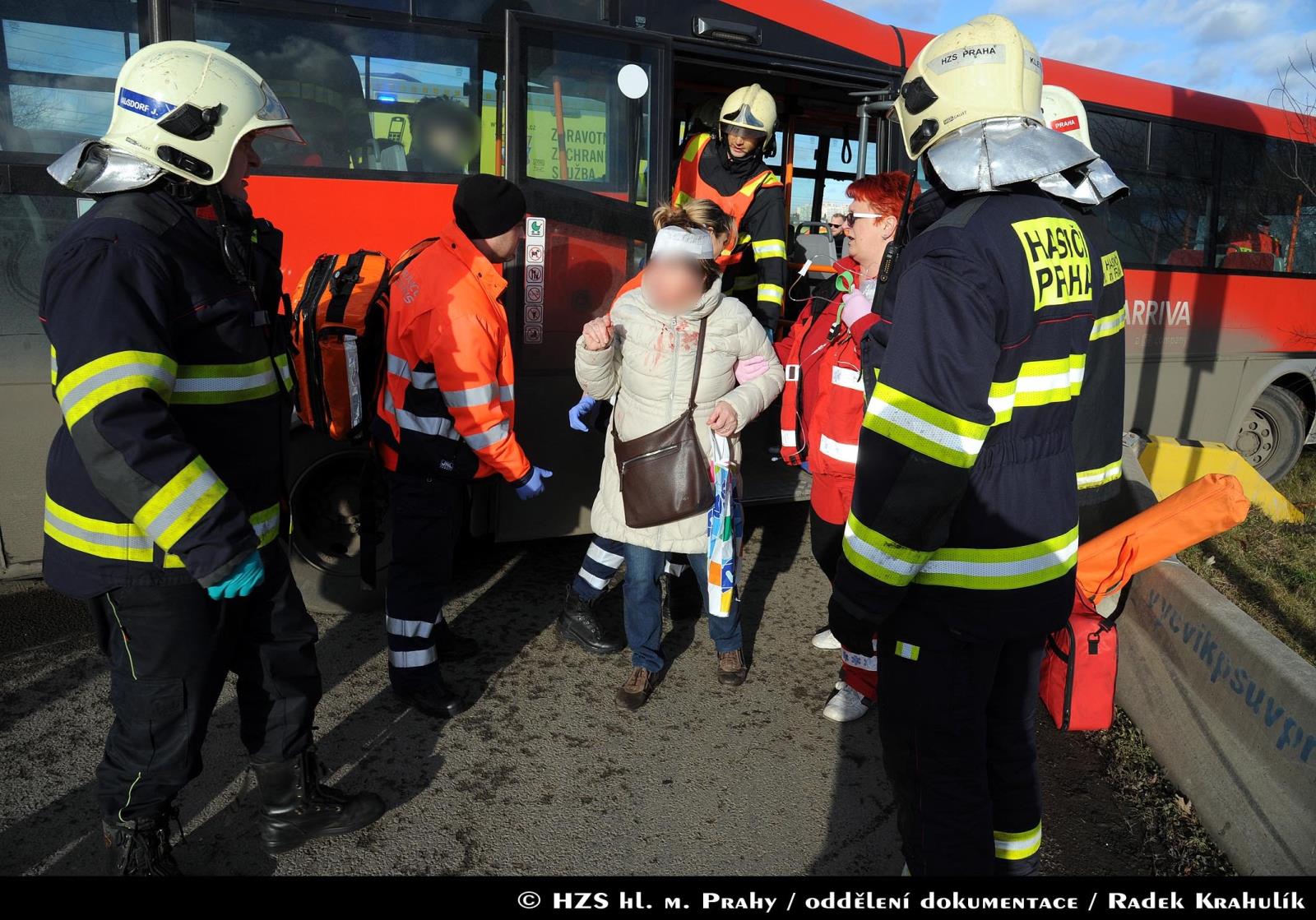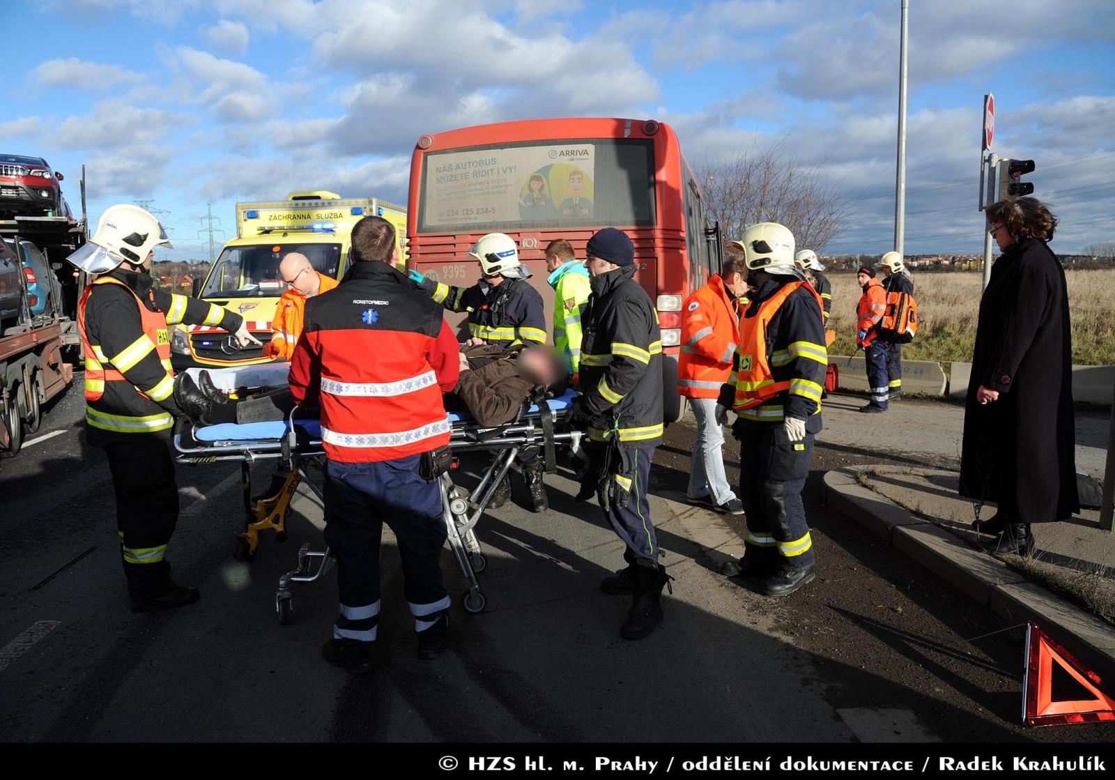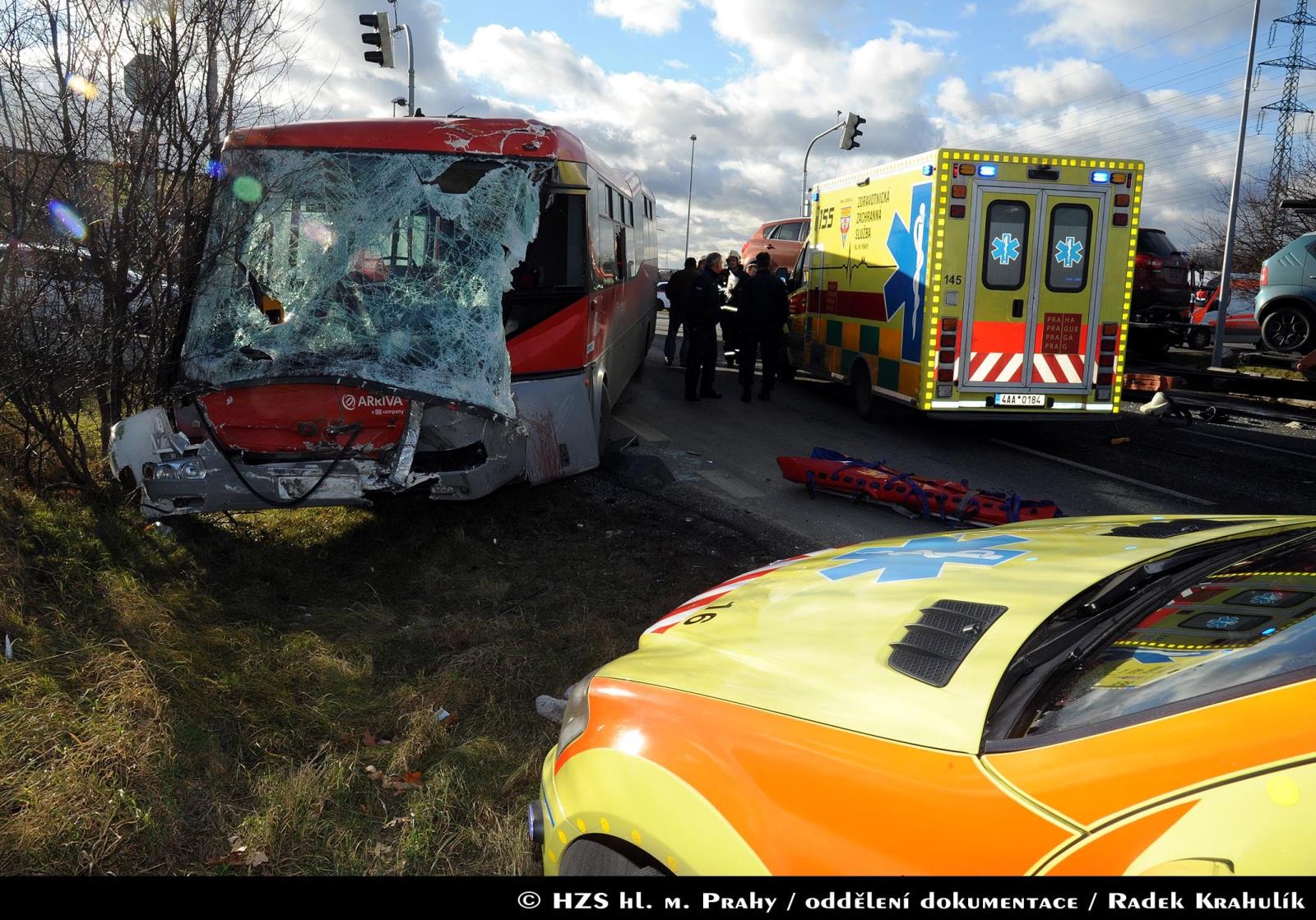 U nehody nákladního automobilu a autobusu v Praze na Kunratické spojce zasahovaly dvě jednotky hasičů
