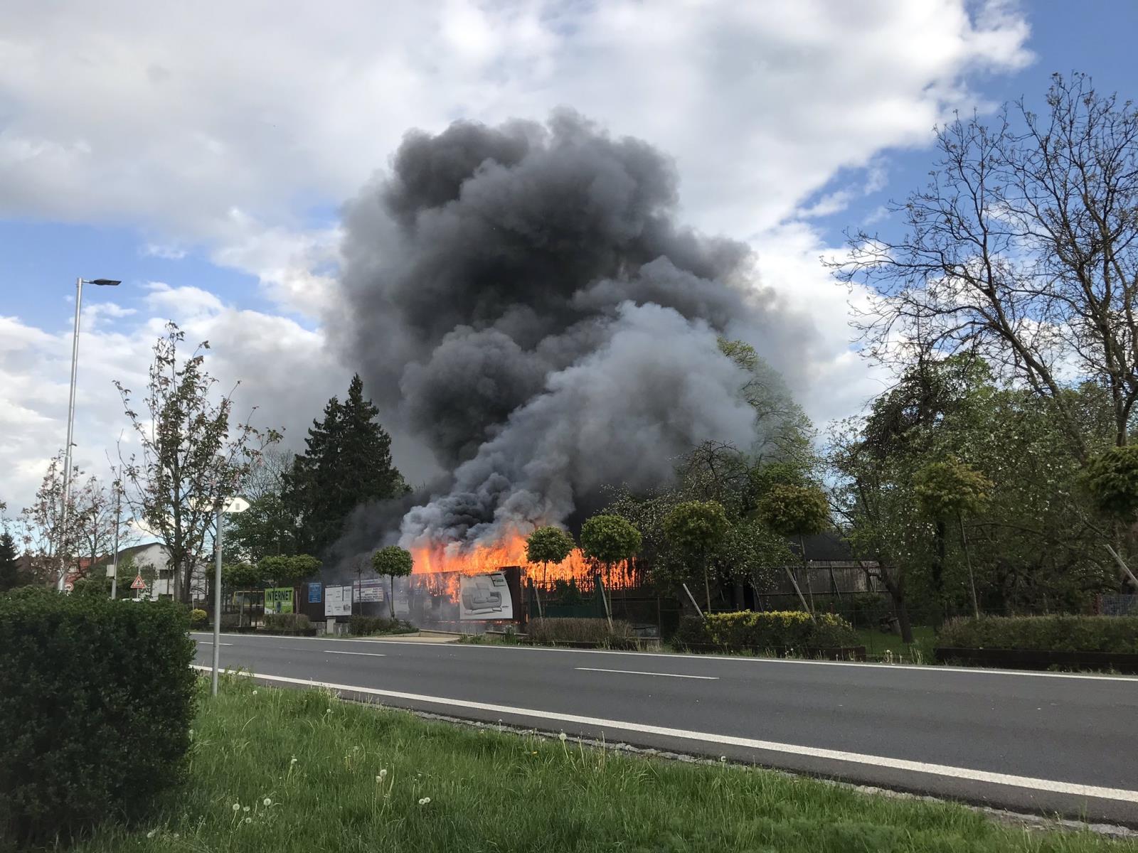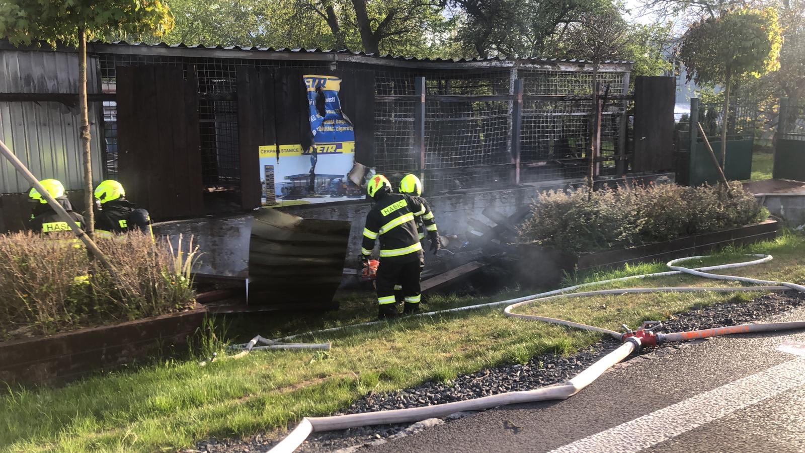 Plameny zachvátily přístavek s plechovými kójemi a uskladněným materiálem v plném rozsahu. Hasiči na lokalizaci požáru použili 5 proudů vody a zasahovali v dýchací technice.