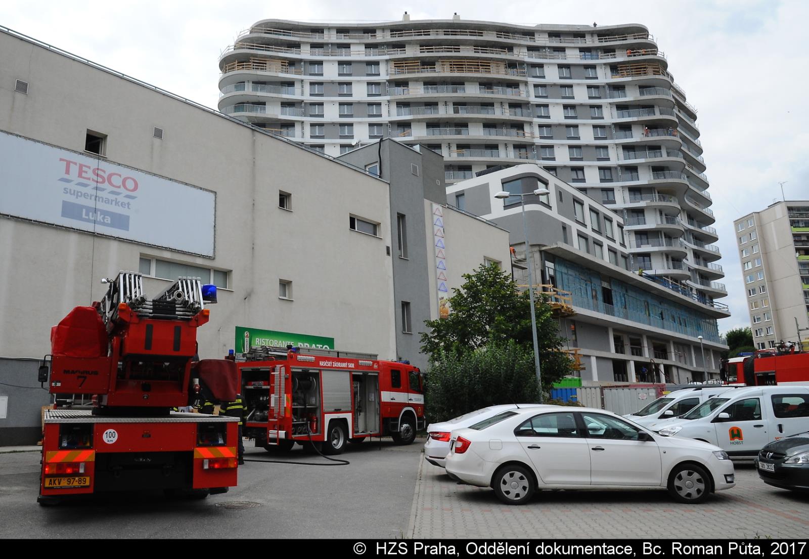V pátek 14.07.2017 za­sahovaly ve 14:34 hodin jednotky ze Smíchova a Petřin u požáru plastových trubek pod rozestavěnou nádrží rekonstruovaného OC Luka v ulici Mukařovského v P  raze 13.
